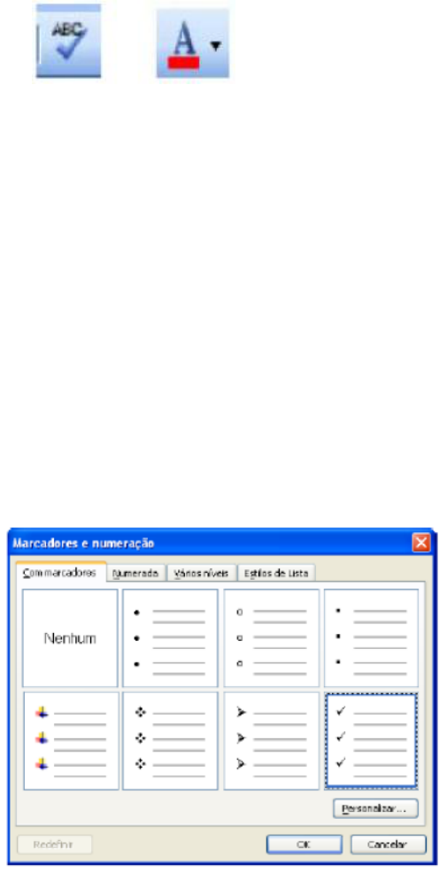 EXERCÍCIOS DE FIXAÇÃO - WORD O Microsoft Word é um (a): � Browser. Planilha. Editor de textos. Sistema operacional. Banco de dados. � Os ícones abaixo servem, no MS-Word, respectivamente, para: verificar a ortografia e gramática; alterar a cor da fonte utilizada. alterar as letras para caixa alta; realçar a cor da fonte. fazer auto-resumo do texto; sublinhar o termo selecionado. verificar a ortografia e gramática; deixar o termo grifado. verificação textual; formatar o tamanho e a cor da fonte. O chefe pediu a sua secretária para que ela alterasse o texto todo da seguinte forma: Queria um texto centralizado, em itálico, com espaçamento em 1,5 entre as linhas. Imediatamente, a secretária disse que já havia formatado. De forma ágil, ela utilizou-se de comandos de formatação de caracteres. Os comandos que realizariam tal tarefa são, respectivamente, � Ctrl+E; Ctrl+i; Ctrl+5 Ctrl+C; Ctrl+i; Ctrl+15 Ctrl+C; Ctrl+t; Ctrl+15 Ctrl+C; Ctrl+t; Ctrl+1 Ctrl+E; Ctrl+l; Ctrl+1 � Observe a figura a seguir extraída do MS-Word: Para gerar uma lista de um nível com um marcador que não aparece na figura, é necessário clicar em: � Estilos de lista Numerada Personalizar... Redefinir Vários níveis � 05) Com relação ao processador de texto WORD, selecione a alternativa correta. Dentre as várias opções oferecidas pelo Word para impressão de documentos, pode-se citar a impressão de: um documento inteiro, páginas específicas de um documento, seções específicas de um documento, apenas páginas ímpares ou pares de um documento, mais de uma cópia de um documento de uma só vez, um rascunho de um documento, um documento na ordem inversa. Antes de imprimir um documento do Word, pode-se exibir cada uma de suas páginas com a aparência que terão quando forem impressas. Para visualizar uma impressão, basta clicar no botão () na barra de ferramentas Formatação. O Word permite que sejam impressas páginas não contíguas de um determinado documento. Por exemplo, para imprimir apenas as páginas 1 e 3 de um documento, digite na opção Páginas da caixa de diálogo Imprimir os números das duas páginas desejadas entre hífen (por exemplo, 1-3). O Word permite imprimir páginas Web, isto é, documentos com a extensão "htm" ou "html". Estando com um documento Web aberto, para imprimi-lo basta clicar no botão ( ) na barra de ferramentas Padrão. E) Estando no modo Visualizar impressão, ao desejar, por exemplo, excluir uma palavra duplicada no texto do documento sendo visualizado, faz-se necessário clicar no botão Fechar para retornar ao modo de edição desse documento. � 06) Um usuário deseja digitar no MS-Word uma lista de itens, cada um deles começando por um asterisco, mas cada vez que ele pressiona a tecla Enter para passar para a linha seguinte, o asterisco se transforma em um marcador. Para resolver esse problema, o usuário deve percorrer a seguinte seqüência de comandos: Ferramentas > AutoCorreção > aba AutoTexto Formatar > Marcadores e numeração > botão Remover Formatar > Marcadores e numeração > botão Cancelar Ferramentas > Opções > AutoCorreção > AutoFormatação ao digitar Ferramentas > AutoCorreção > AutoFormatação ao digitar 07) Sobre a formatação em colunas no MS Word é correto afirmar que: o número máximo de colunas numa página é 3; todas as colunas de uma página devem ter a mesma largura; os espaços entre colunas numa página devem ser sempre os mesmos; não é possível ter um trecho de um documento em colunas e outro trecho, sem; é possível determinar que haja uma linha vertical entre as colunas. 08) Em relação ao processador de texto Word, quando se deseja apagar o conteúdo de um texto, deve-se selecionar o texto, entrar no menu editar e clicar com o mouse em: � deletar; copiar; limpar; colar; arrastar. � 09) Assinale a opção que descreve corretamente as ações das teclas F7, F12 e CTRL + F4 no Word for Windows: abrir documento, sair e aumentar fonte visualizar impressão, salvar e verificar ortografia e gramática fechar documento, abrir documento e salvar verificar ortografia e gramática, salvar como e fechar documento imprimir, salvar como e localizar 10) No Word 2003, a função do WordArt é: numerar as páginas de um trabalho. criar um diretório de nomes e endereços. criar um hiperlink. inserir um símbolo. produzir letras estilizadas. 11) O comando Ctrl+Z no Word 2003 tem, originalmente, a função de: � desfazer a última ação. refazer a última ação. criar um hífen não separável. criar um espaço não separável. diminuir o tamanho da fonte. � 12) Sobre a figura abaixo, pode-se afirmar que: � Não pode ser feita através do Microsoft Word 2003. Só pode ser feita no Microsoft Excel 2003. Pode ser feita utilizando-se um ícone específico da barra de ferramentas Desenho do Microsoft Word 2003. Somente pode ser feita através do “Paint” (ou nome equivalente) do Windows. Somente pode ser feita utilizando-se uma das “AutoFormas” da barra de ferramentas Desenho do Microsoft Word 2003. 13) Considere as assertivas abaixo sobre características do programa Microsoft Word. Através da criação de seções, podem ser definidas determinadas opções de formatação de página para uma parte de um documento. Pode-se criar uma nova seção quando se deseja alterar propriedades como numeração de linha, número de colunas, cabeçalhos e rodapés, margens, tamanho e orientação do papel. O Assistente de mala direta permite a criação de cartas-modelo para o envio de correspondência. Nesse processo, uma fonte de dados é um arquivo que contém os dados que variam em cada cópia de um documento mesclado. A partir do menu Janela | Dividir, pode-se dividir a janela ativa em painéis. Quais são corretas? � Apenas I Apenas I e II Apenas I e III Apenas II e III I, II e III � Para responder às questões de números 14 a 16, considere a imagem ao lado, que mostra um documento sendo