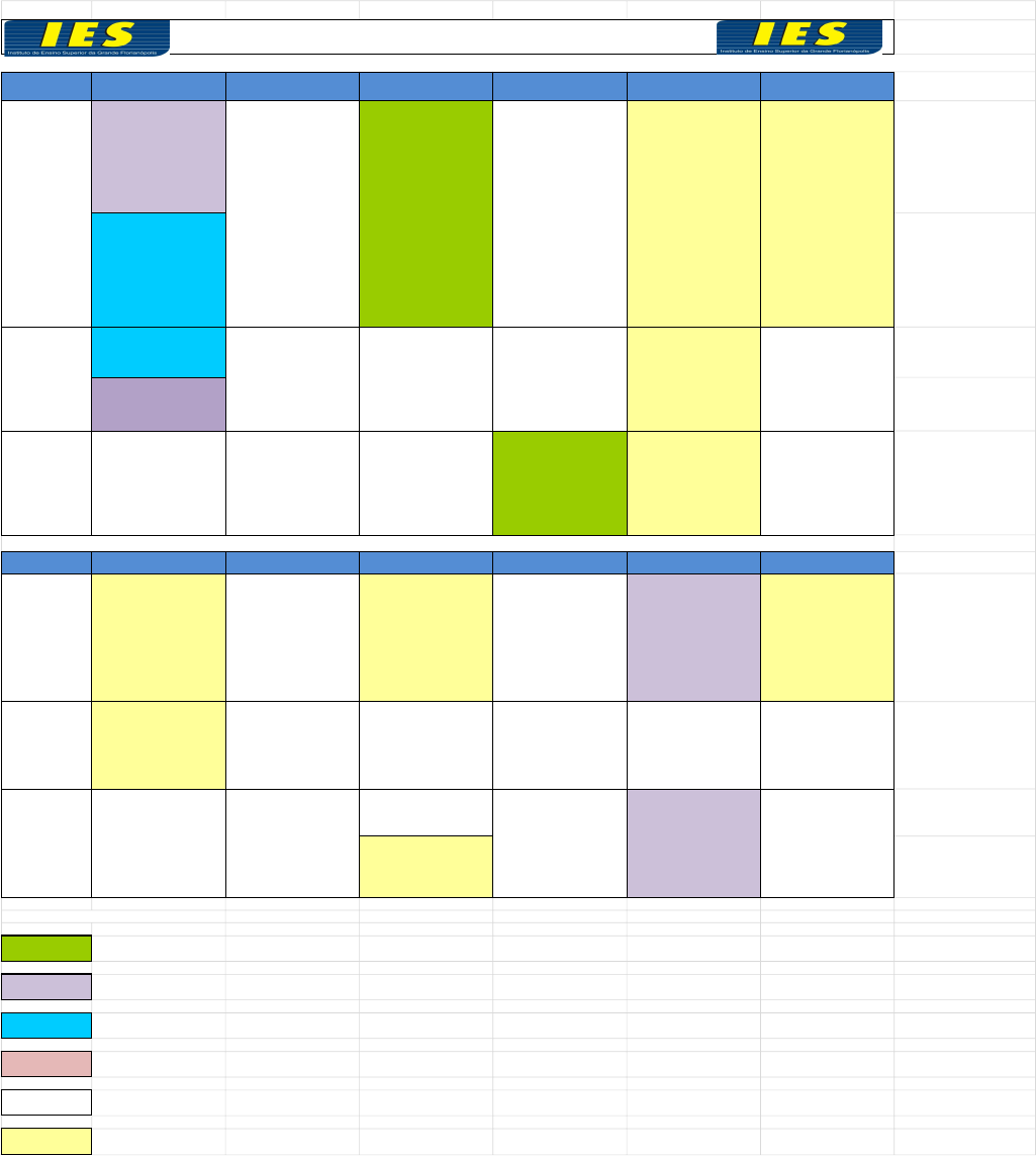 Grade de Horário Curso Nutrição IESGF - 2018/2- MATUTINO 1ªA/ 2ªA Segunda-feira Terça-feira Quarta-feira Quinta-feira Sexta-feira Sábado 8h00 - 9h15 25A7 - Nutrição e Dietética (Turma A) - (Profa.Gabriela de Andrade Silvério) NP1: 24/09 NP2: 19/11 Subs.: 26/11 Ex.: 10/12 J413 - Fisiologia (Profa. Dayanne da Silva Borges) NP1: 02/10 NP2: 13/11 Subs.: 26/11 Ex.: 11/12 25A5 - Bromatologia (Turma A) (Profa. Cassiana Mendes) 25A6 - Composição dos Alimentos - (Profa.Gabriela de Andrade Silverio) NP1: 27/09 NP2: 22/11 Subs.: 26/11 Ex.: 06/12 D253 - Comunicação e Expressão (EAD) Semi Presncial (Profa. Dayanne da Silva Borges) NP1: (online) até 31/10 NP2: 13/11 PS: 26/11 EX: 11/12 Interpretação e Produção de textos (EAD) somente 1ª fase Semi Presncial (Profa. Cassiana Mendes) NP1: (online) até 31/10 NP2: 21/11 PS: 26/11 EX: 05/12 25A4 - Anatomia (Turma B) (Profa. Dayanne da Silva Borges) NP1: 01/10 NP2: 19/11 Subs.: 26/11 Ex.: 03/12 9h15 - 10h30 25A4 - Anatomia (Turma A) (Profa. Dayanne da Silva Borges) J413 - Fisiologia (Profa. Dayanne da Silva Borges) J674 - Micro, Imuno e Parasito - (Profa. Cassiana Mendes) NP1: 26/09 NP2: 21/11 Subs.: 26/11 Ex.: 05/12 25A6 - Composição dos Alimentos (Profa.Gabriela de Andrade Silverio) 622Q - Estudos Disciplinares - (Profa. Cassiana Mendes)25A7 - Nutrição e Dietética (Turma B) - (Profa.Gabriela de Andrade Silvério) 10h50 - 12h05 J15A - Bioestatística Aplic. a Nutrição - (Prof. Moacir Pereira Junior) NP1: 01/10 NP2: 19/11 Subs.: 26/11 Ex.: 10/12 J674 - Micro, Imuno e Parasito - (Profa. Cassiana Mendes) 25A5 - Bromatologia (Turma B) - (Profa. Cassiana Mendes) NP1: 27/09 NP2: 22/11 Subs.: 26/11 Ex.: 06/12 25A3 - Atividades Práticas Supervisionadas - (Profa.Gabriela de Andrade Silverio) 3ªA/4ªA Segunda-feira Terça-feira Quarta-feira Quinta-feira Sexta-feira Sábado 8h00 - 9h15 D896 - Química - (Prof.Ana Cristina Pinheiro do Prado) NP1: (online) até 31/10 NP2: 20/11 PS: 26/11 EX: 11/12 J615 - Farmacologia - (Prof.Ana Cristina Pinheiro do Prado) NP1: 25/09 NP2: 20/11 Subs.: 26/11 Ex.: 11/12 D243 - Ciências Sociais - EAD SEMI PRESENCIAL (Profa.Thayz Chagas) NP1: (online) até 31/10 NP2: 21/11 PS: 26/11 EX: 12/12 86A7 - Higiene e Legis Alim (Turma A) - (Profa. Waleska Nishida) NP1: 27/09 NP2: 22/11 Subs.: 26/11 Ex.: 06/12 86A6 - Planej de Cardápios Ciclos de Vida (Turma A) - (Profa.Gabriela de Andrade Silverio) NP1: 28/09 NP2: 23/11 Subs.: 26/11 Ex.: 07/12 Optativas EAD SEMI PRESENCIAL (Profa.Gabriela de Andrade Silverio) NP1: (online) até 31/10 NP2: 23/11 PS: 26/11 EX: 07/12 9h15 - 10h30 623Q - Estudos Disciplinares - (Prof.Ana Cristina Pinheiro do Prado) J615 - Farmacologia -(Prof. Ana Cristina Pinheiro do Prado) J625 - Patologia dos Sistemas - (Profa. Thayz Chagas) NP1: 26/09 NP2: 21/11 Subs.: 26/11 Ex.: 12/12 86A7 - Higiene e Legis Alim (Turma B) - (Profa. Waleska Nishida) 86A6 - Planej de Cardápios Ciclos de Vida - (Profa. Gabriela de Andrade Silverio) 10h50 - 12h05 J559 - Bioquímica Metabólica (Prof.Ana Cristina Pinheiro do Prado) NP1: 24/09 NP2: 19/11 Subs.: 26/11 Ex.: 10/12 J559 - Bioquímica Metabólica (Prof.Ana Cristina Pinheiro do Prado) J625 - Patologia dos Sistemas - (Profa. Thayz Chagas) 465Z - Ética e Orientação Profissional - (Prof a.Alyne Lizane Cardoso) NP1: 27/09 NP2: 22/11 Subs.: 26/11 Ex.: 06/12 86A6 - Planej de Cardápios Ciclos de Vida (Turma B) - (Profa.Gabriela de Andrade Silverio)26A2 - Atividades Práticas Supervisionadas - (Profa. Waleska Nishida) LEGENDA: LABORATÓRIO MULTIDISCIPLINAR LABORATÓRIO DE TÉCNICA DIETÉTICA LABORATÓRIO DE ANATOMIA LABORATÓRIO DE DE ELETRO SALA DE AULA DISCIPLINAS NÃO PRESENCIAIS Grade de Horário Curso Nutrição IESGF - 2018/2 - NOTURNO 3ªP /4ªP Segunda-feira Terça-feira Quarta-feira Quinta-feira Sexta-feira Sábado 18h10 - 19h25 86A7 - Higiene e Legis Alim (Turma A) - (Profa .Waleska Nishida) 465Z - Ética e Orientação Profissional - (Profa. Alyne Lizane Cardoso) NP1: 25/09 NP2: 20/11 Subs.: 26/11 Ex.: 11/12 86A6 - Planej de Cardápios Ciclos de Vida (Turma A) - (Profa.Alyne Lizane Cardoso) NP1: 26/09 NP2: 21/11 Subs.: 26/11 Ex.: 12/12 86A7 - Higiene e Legis Alim (Turma B) - (Profa .Waleska Nishida) NP1: 27/09 NP2: 22/11 Subs.: 26/11 Ex.: 06/12 J559 - Bioquímica Metabólica(Prof. Moacir Pereira Junior) NP1: 28/09 NP2: 23/11 Subs.: 26/11 Ex.: 07/12 Optativas EAD SEMI PRESENCIAL (Profa. Alyne Lizane Cardoso) NP1: (online) até 31/10 NP2: 21/11 PS: 26/11 EX: 12/12 26A2 - Atividades Práticas Supervisionadas - (Profa .Thayz Chagas e Lilian Leite Fausto) 19h25 - 20h40 J625 - Patologia dos Sistemas - (Profa . Thayz Chagas) NP1: 24/09 NP2: 19/11 Subs.: 26/11 Ex.: 10/12 D243 - Ciências Sociais - SEMI PRESENCIAL (Profa. Alyne Lizane Cardoso) NP1: (online) até 31/10 NP2: 20/11 PS: 26/11 EX: 11/12 86A6 - Planej de Cardápios Ciclos de Vida - (Profa.Alyne Lizane Cardoso) J615 - Farmacologia - (Profa. Cassiana Mendes) NP1: 27/09 NP2: 22/11 Subs.: 26/11 Ex.: 06/12 J559 - Bioquímica Metabólica (Prof. Moacir Pereira Junior) 21h00 - 22h15 J625 - Patologia dos Sistemas - (Profa . Thayz Chagas) D896 - Química - SEMI PRESENCIAL SOMENTE 3º FASE (Profa. Alyne Lizane Cardoso) NP1: (online) até 31/10 NP2: 21/11 PS: 26/11 EX: 12/12 86A6 - Planej de Cardápios Ciclos de Vida (Turma B) - (Profa.Alyne Lizane Cardoso) J615 - Farmacologia - (Profa. Cassiana Mendes) 623Q - Estudos Disciplinares - (Profa.Cassiana Mendes) 5ªP/ 6ªP Segunda-feira Terça-feira Quarta-feira Quinta-feira Sexta-feira Sábado 18h10 - 19h25 26A9 - Fisiopatologia da Nutrição - (Profa .Thayz Chagas) NP1: 01/10 NP2: 19//11 Subs.: 26/11 Ex.: 10/12 836V - Atividades Práticas Supervisionadas - ( Profa.Alyne Liziane Cardoso) 97A5 - Nutrição Interdiscipl - (ProfaJanaína Dal Moro) NP1: 26/09 NP2: 14//11 Subs.: 26/11 Ex.: 12/12 27A7 - Nutr e Biodisponib de Nutrientes - (Profa .Thayz Chagas) NP1: 27/09 NP2: 22//11 Subs.: 26/11 Ex.: 06/12 D105 - Métodos de Pesquisa - SEMI PRESENCIAL (Profa .Waleska Nishi