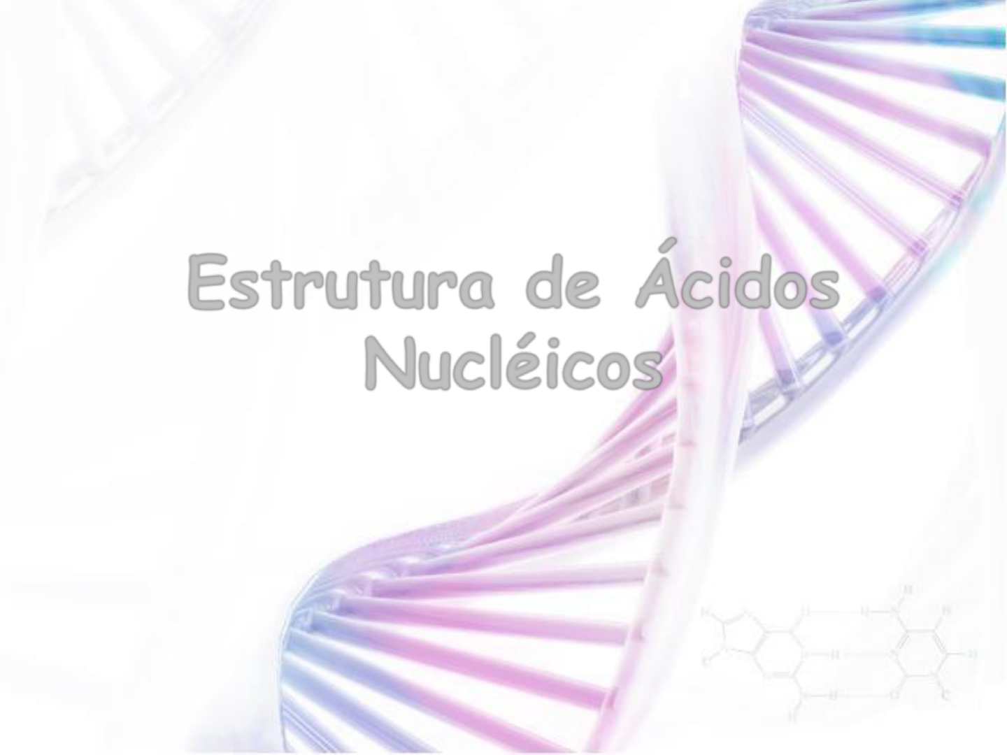 Profa MSc.Marcelly Valle Palladino Estrutura de Ácidos Nucléicos Informação Genética Passada de geração para geração Cromossomos DNA Ácidos Nucléicos • DNA e RNA são as principais moléculas informativas da célula. • São compostos de subunidades, denominadas NUCLEOTÍDEOS. • Cada nucleotídeo compreende 3 módulos: P P Açúcar P Base Nitrogenada Nucleotídeos h tt p :/ /w w w .u fp e l. e d u .b r Adenina Guanina Timina (DNA) Citosina Uracila (RNA) h tt p :/ /w w w .u fp e l. e d u .b r B)Pentose Ribose (RNA) Desoxirribose (DNA) OBS: o carbono das pentoses têm numeração seguida de ' para diferenciar dos carbonos das bases nitrogenadas. h tt p :/ /w w w .u fp e l. e d u .b r Ligação entre as moléculas A) Ligação entre a base nitrogenada e a pentose 1 2 3 4 5 6 1` 2`3` 4` 5` Ligação N-Glicosídica 8 9 1` 2`3` 4` 5` 1 2 3 4 5 6 7 8 9 Ligação N-Glicosídica 1` 2`3` 4` 5` 1 2 3 4 5 6 7 h tt p :/ /w w w . ln c c .b r Covalente Nucleosídeo NUCLEOSÍDEO h tt p :/ /w w w .u fp e l. e d u .b r Ligação N-Glicosídica B) Ligação entre o grupo fosfato e a pentose Ligação é feita através de uma ligação fosfoéster com a hidroxila ligada ao carbono-5 da pentose 1 2 3 4 5 67 8 9 1` 2`3` 4` 5` Ligação N-Glicosidica Ligação Fosfoéster h tt p :/ /w w w . ln c c .b r NUCLEOTÍDEO nucleosídeo NUCLEOTÍDEO h tt p :/ /w w w .u fp e l. e d u .b rLigação N-Glicosídica Ligação Fosfoéster Nomenclatura É feita pelo nucleosídeo formado BASE NUCLEOSÍDEO NUCLEOTÍDEO ÁCIDO NUCLEICO Adenina Adenosina ou Desoxiadenosina Adenilato RNA DNA Guanina Guanosina ou Desoxiguanosia Guanilato RNA DNA Citosina Citidina ou Desoxicitidina Citidilato RNA DNA Timina Timidina ou Desoxitimidina Timidilato DNA Uracila Uridina Uridilato RNA Ligação fosfodiéster: a hidroxila do carbono-3 da pentose do primeiro nucleotídeo se liga ao grupo fosfato ligado a hidroxila do carbono-5 da pentose do segundo nucleotídeo Extremidade 5’ Extremidade 3’ Ligação fosfodiéster Ligação entre os nucleotídeos . h tt p :/ /2 0 0 .1 5 6 .7 0 .1 2 /s m e/ cu rs o s/ E B I/ E B 1 5 /p d fs /m o d 1 _ au la 3 .p d f Formação da ligação fosfodiéster . h tt p :/ /2 0 0 .1 5 6 .7 0 .1 2 /s m e/ cu rs o s/ E B I/ E B 1 5 /p d fs /m o d 1 _ au la 3 .p d f Ligação Fosfodiéster Como ocorre a polimerização dos nucleotídeos? • Os nucleotídeos ligam-se, através de ligações fosfodiéster. • A ligação é formada entre o grupo 3` hidroxil de um nucleotídeo e o grupo 5` fosfato de outro. • A cadeia polinucleotídica formada possui orientação, ou seja, uma extremidade terminada em um grupo 5` fosfato (a extremidade 5`) e a outra, em um grupo 3` hidroxil (a extremidade 3`) Ligação Fosfodiéster h tt p :/ /w w w .u fp e l. e d u .b r Direção da cadeia nucleotídica . h tt p :/ /2 0 0 .1 5 6 .7 0 .1 2 /s m e/ cu rs o s/ E B I/ E B 1 5 /p d fs /m o d 1 _ au la 3 .p d f Estrutura da Cadeia P ri n c íp io s d e B io q u ím ic a , 2 0 0 6 Mãe obrigado pelas minhas mitocôndrias! Porque se dependesse do meu pai... ?! DNA mitocondrial Duplo filamento circular 1 a 2% do total de DNA da célula DNA de cloroplasto Pequena molécula de DNA circular Contém a informação para algumas proteínas da fotossíntese Ácidos Nucléicos O que diferencia os ácidos nucléicos? 1 - Estrutura química do açúcar; 2 - O tipo de base nitrogenada; 3 - O tipo de fita; 4- Função desempenhada. RNA DNA 1 – Estrutura química do açúcar P P Açúcar P Base NitrogenadaPP PP Açúcar PP Base Nitrogenada Base Nitrogenada 1 – Estrutura química do açúcar DNA RNA Nucleosídeos de adenina Ácidos Nucléicos O que diferencia os ácidos nucléicos? 1 - Estrutura química do açúcar; 2 - O tipo de base nitrogenada; 3 - O tipo de fita; 4- Função desempenhada. 2 - O tipo de base nitrogenada DNA RNA Ácidos Nucléicos O que diferencia os ácidos nucléicos? 1 - Estrutura química do açúcar; 2 - O tipo de base nitrogenada; 3 - O tipo de fita; 4- Função desempenhada. 3 - O tipo de fita Ácidos Nucléicos O que diferencia os ácidos nucléicos? 1 - Estrutura química do açúcar; 2 - O tipo de base nitrogenada; 3 - O tipo de fita; 4- Função desempenhada. 4 – Função desempenhada • DNA – Código genético que contêm as informações para sintetizar proteínas • RNA – Carrega o código genético do DNA para o ribossomo e auxilia a síntese de proteínas Fluxo da Biologia Molecular Principais diferenças entre DNA e RNA em eucariotos h tt p :/ /w w w .u fp e l. e d u .b r DNA RNA AÇÚCAR BASE NITROGENADA (PIRIMÍDICA) FITA FUNÇÃO Código Genética Auxílio na síntese protéica Fluxo Central de Biologia Molecular filmes\dogma central.MOV DNA DNA: Definição • O ácido nucléico que carrega a informação genética da célula; • É constituído por duas cadeias de nucleotídeos em forma de dupla-helice; • As cadeias são unidas for pontes de hidrogênio que se formam entre as base complementares Adenina-Timina ou Citosina- Guanina; • É capaz de se auto-duplicar e originar moléculas de RNA; • A seqüência dos nucleotídeos determina as características herdáveis individuais. 3’ 5’3’ 5’ Dupla fita de DNA - DIRECIONAL: 5` para 3`; - são ANTIPARALELAS : se uma fita está no sentido 5`3`a outra estará no sentido 3`5`; - são COMPLEMENTARES: A une a T e C une-se a G, por pontes de hidrogênio.; Cadeia polinucleotídica O pareamento das bases é específico A = T G = C Dupla fita de DNA Modelo da estrutura do DNA - proposto por Watson e Crick: • Dupla-hélice: Cada molécula de DNA é formada por duas cadeias que se enrolam em torno de um eixo comum. • As cadeias são pareadas de modo antiparalelo. DNA Temperatura de desnaturação e conteúdo G- C DNA de células procarióticas DNA de células eucarióticas Tamanho do DNA Com todo esse tamanho, como o DNA cabe na célula? Enovelamento do DNA Histonas são pequenas proteínas constituídas por uma grande proporção
