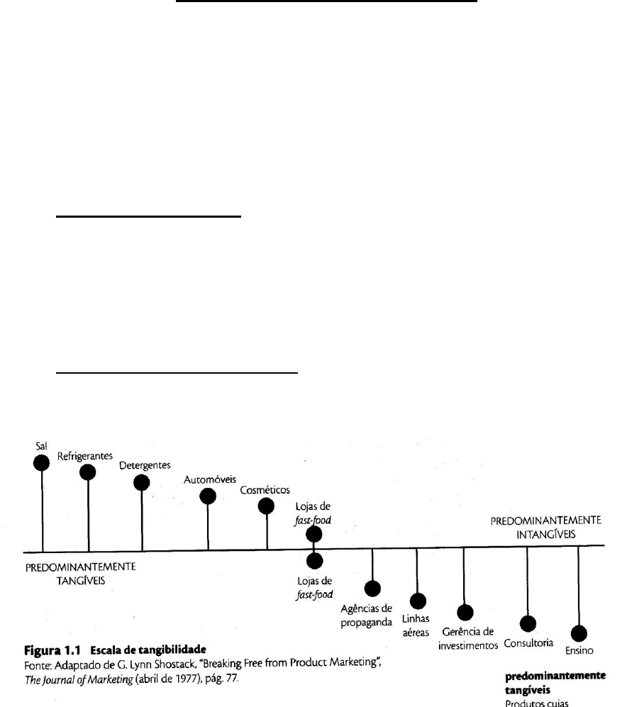 Visão Geral do Marketing de Serviços Prof. Sidney Lino 1 • 1. INTRODUÇÃO A SERVIÇOS “O valor econômico como o grão de café, evolui de commodities para bens, daí para serviços e então para experiências.” Joseph B. Pine II e James H. Gilmore The Experience Economy Imperativo de serviço - Reflete a visão de que os aspectos intangíveis dos produtos estão se tornando as características fundamentais que os diferenciam no mercado. 1.1 O QUE É UM SERVIÇO 1.1.1 Bens - Objetos, dispositivos ou coisas. 1.1.2 Serviços - Ações, esforços ou desempenhos. 1.1.3 Produto - Um bem e/ou um serviço. 1.2 ESCALA DE TANGIBILIDADE Escala de tangibilidade - Escala que mostra uma série de produtos ao longo de uma linha contínua, com base em sua tangibilidade. 1.2.1 Predominantemente tangíveis - Produtos cujas propriedades físicas podem ser sentidas, degustadas e parecem preceder a decisão de compra do cliente. 1.2.2 Predominantemente intangíveis - Produtos que não têm propriedades físicas que os clientes possam sentir antes da decisão de compra. 1.2.3 Miopia de marketing - Prática de definir de modo muito limitado os negócios de alguém. Visão Geral do Marketing de Serviços Prof. Sidney Lino 2 1.3 MODELO MOLECULAR Modelo molecular - Um modelo conceitual do relacionamento entre componentes tangíveis e intangíveis das operações de uma empresa. 1.4 EXPERIÊNCIA DE SERVIÇO Conceito de benefício - A interiorização dos benefícios de um produto na mente do cliente. 1.5 FORMANDO A EXPERIÊNCIA DE SERVIÇO: O MODELO SERVUCTION Modelo Servuction - Um modelo usado para ilustrar os fatores que influenciam a experiência de serviço, incluindo os que são visíveis para o cliente e os que não são. 1.5.1 Ambiente inanimado - Todas as características não-viventes presentes durante o encontro de serviço. Visão Geral do Marketing de Serviços Prof. Sidney Lino 3 1.5.2 Pessoal de contato/provedores de serviços 1.5.2.1. Pessoal de contato de serviços - Funcionários que interagem com o cliente por breve período de tempo. 1.5.2.2. Provedores de serviço - Principais provedores de um serviço central, com garçons ou garçonetes, dentistas, médicos ou professores de faculdade. “O pessoal de contato é extremamente importante nas interações de serviço, mesmo se interage com o cliente apenas por pouco tempo. 1.5.3 Outros clientes 1.5.3.1. Cliente A - O recebedor do pacote de benefícios criado por meio da experiência de serviço. 1.5.3.2. Cliente B - Outros clientes que são parte da experiência do cliente A. 1.5.4 Organização e sistemas invisíveis – A parte de uma empresa que reflete as regras, regulamentos e processos nos quais a organização é baseada. 1.6 POR QUE ESTUDAR SERVIÇOS? 1.6.1 Empregos no setor de serviços 1.6.2 Impacto econômico Visão Geral do Marketing de Serviços Prof. Sidney Lino 4 1.6.3 Impacto da desregulamentação 1.6.4 Revolução dos serviços: mudança de perspectiva 1.6.4.1. Modelo de gerenciamento industrial - Abordagem de organização empresa que focaliza receita e custos de operação e ignora o papel que o pessoal representa na geração de satisfação do cliente e lucros sustentáveis Visão Geral do Marketing de Serviços Prof. Sidney Lino 5 1.6.4.2. Modelo de gerenciamento orientado para o mercado - Novo modelo organizacional que focaliza os componentes da empresa facilitadores de seu sistema de prestação de serviços. 1.6.4.2.1. Triângulo de serviços - Estrutura que suporta o modelo de gerenciamento orientado para o mercado, representando os relacionamentos entre os sistemas, a estratégia de serviço e as pessoas, com o cliente no centro do triângulo, interagindo com cada grupo. 1.6.4.2.2. Incidentes críticos (“momentos da verdade”) - Interação entre cliente e provedor de serviços freqüentemente, é a chave das avaliações da satisfação do cliente. 1.7 COMPARAÇÃO DAS DUAS ABORDAGENS Visão Geral do Marketing de Serviços Prof. Sidney Lino 6 Introdução a Serviços – Questões para Discussão 1. Por que é difícil fazer distinção entre diversos bens e serviços? 2. Defina os seguintes termos: bens, serviços, produtos. 3. Discuta a relevância da escala de tangibilidade para a miopia de marketing. 4. Desenvolva um modelo molecular para a sua Faculdade de Administração de Empresas. 5. Discuta as conseqüências do modelo de gerenciamento industrial. 6. Quais são os benefícios resultantes do pessoal mais bem pago e melhor treinado? 7. Discuta a relevância do triângulo de serviços para o modelo de gerenciamento orientado para o mercado. 8. O que significa a citação de abertura do capítulo: “O valor econômico, como o grão de café, evolui de commodities para bens, daí para serviços e então para experiências”. Visão Geral do Marketing de Serviços Prof. Sidney Lino 7 2. DIFERENÇAS FUNDAMENTAIS ENTRE BENS E SERVIÇOS “É errado concluir que serviços são iguais a bens, “exceto” pela intangibilidade. Segundo essa lógica, maçãs são iguais a laranjas, exceto por sua ‘maçãnidade’ G. Lynn Shostack 2.1 INTANGIBILIDADE: MÃE DE TODAS AS DIFERENÇAS Uma característica peculiar dos serviços que os torna incapazes de serem tocados ou sentidos da mesma maneira que os bens físicos. 2.1.1 Problemas de marketing causados pela intangibilidade 2.1.1.1. Impossibilidade de ser armazenado 2.1.1.2. Falta de proteção por meio de patentes 2.1.1.3. Dificuldade para mostrar ou comunicar serviços 2.1.1.4. Dificuldade para determinar preços de serviços 2.1.2 Possíveis soluções para problemas de intangibilidade 2.1.2.1. Uso de indícios tangíveis / evidência física - Características físicas que envolvem um serviço. Ajudam os clientes a avaliar o serviço. Exemplos: a qualidade da mobília, a aparência do pessoal ou a qualidade do papel usado para produzir os folhetos da empresa. 2.1.2.2.Uso de fontes pessoais de informações 2.1.2.2.1. Fontes impessoais - Fontes como a pr