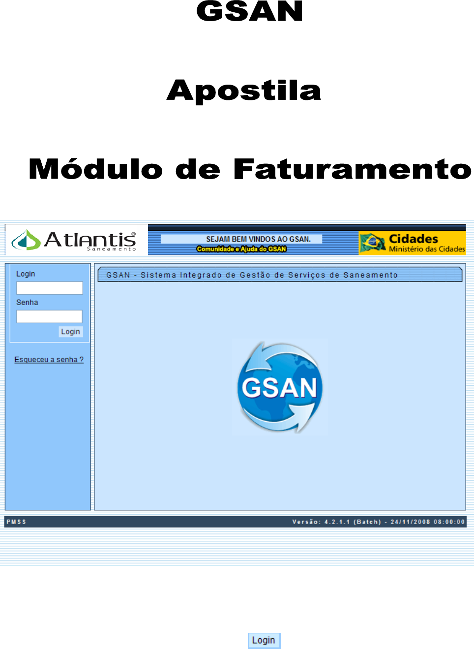 Login: Informar a matrícula do usuário. Senha: Informar a senha do usuário. Após inserir estas informações clique no botão . 2 Sumário Inserir Tipo de Situação de Faturamento ................................................................................. 5 Manter Tipo de Situação de Faturamento ................................................................................ 7 Atualizar Tipo de Situação de Faturamento............................................................................. 9 Manter Tipo de Situação de Faturamento ..................................................................................... 9 Inserir Faturamento Contábil Parâmetros ................................................................................... 11 Manter Faturamento Contábil Parâmetros .................................................................................. 14 Atualizar Faturamento Contábil Parâmetro .......................................................................... 14 Manter Faturamento Contábil Parâmetro ............................................................................... 16 Manter Fatura de Cliente Responsável ....................................................................................... 17 Utilize este botão para efetuar a filtragem. Registrar Arquivo Retorno Faturamento .......... 17 Registrar Arquivo Retorno Faturamento ...................................................................................... 18 Atualizar Conta PreFaturada ......................................................................................................... 19 DEBITO A COBRAR ...................................................................................................................... 20 Inserir Débito a Cobrar ............................................................................................................... 20 Cancelar Débito a Cobrar ........................................................................................................ 24 Inserir Guia de Pagamento ............................................................................................................ 27 Cancelar Guia de Pagamento .................................................................................................... 30 Inserir Tipo de Crédito ................................................................................................................. 32 Manter Tipo de Crédito ................................................................................................................... 34 Manter Tarifa de Consumo ............................................................................................................ 35 Inserir Consumo Tarifa SubCategoria ..................................................................................... 36 Manter Tarifa de Consumo por SubCategoria ............................................................................ 37 Associar Tarifa de Consumo a Imóveis ....................................................................................... 40 Inserir Crédito a Realizar ............................................................................................................... 43 Cancelar Crédito a Realizar........................................................................................................... 45 Inserir Mensagem da Conta ....................................................................................................... 47 Manter Mensagem Conta............................................................................................................... 49 Inserir Conta ..................................................................................................................................... 51 Manter Conta .................................................................................................................................. 54 Desfazer Cancelamento ou Retificação ...................................................................................... 60 Simular Cálculo da Conta .............................................................................................................. 62 Simular Cálculo da Conta .............................................................................................................. 62 Informar Vencimento Alternativo .............................................................................................. 64 Manter Contas de um Conjunto de Imóveis........................................................................... 67 Manter Contas de um Conjunto de Imóveis........................................................................... 68 Inserir Tipo de Débito................................................................................................................... 69 Manter Tipo de Débito .................................................................................................................... 71 Manter Tipo de Dados .................................................................................................................... 72 Atualizar Tipo de Dados ............................................................................................................. 75 Inserir Qualidade de Água ............................................................................................................. 76 Filtrar Qualidade da Água .............................................................................................................. 80 Manter Cronograma de Faturamento........................................................................................... 81 Filtrar Exceções de Leituras e Consumos .................................................................................. 83 Analisar Exceções de Leituras e Consumos ......................................................................... 87 Alterar Dados do Faturamento ..........