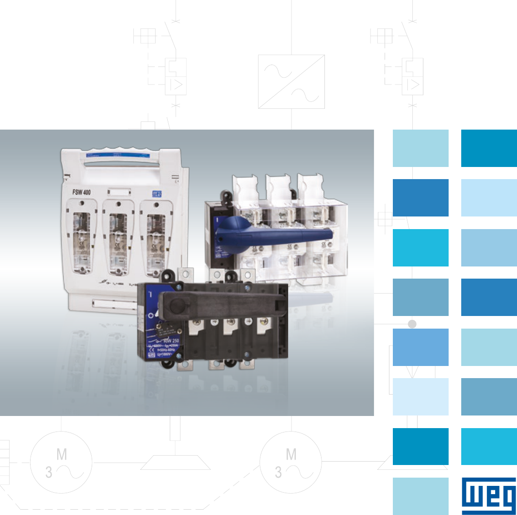 Automação Saca Fusível FSW Rotativa Porta Fusível RFW Rotativa RIW Motores | Automação | Energia | Transmissão & Distribuição | Tintas www.weg.net Chaves Seccionadoras2 Chaves Seccionadoras sob Carga FSW Características g Tampa transparente que permite a visualização dos contatos g Possibilidade de verificação do estado dos fusíveis através de orifícios na tampa g Câmara de extinção de arco g Contato auxiliar instalado na chave g Troca rápida dos fusíveis g Segurança na operação g Fácil instalação As seccionadoras da linha FSW foram desenvolvidas para operação sob carga, seguindo as normas internacionais de desempenho de produto IEC 60947-3 e IEC 60947-1. Disponíveis nas correntes de 100 A, 160 A, 250 A, 400 A e 630 A, as seccionadoras da linha FSW são aplicadas juntamente com fusíveis do tipo NH nos tamanhos 000, 00, 1, 2 e 3, instalados nas próprias seccionadoras. As seccionadoras da linha FSW são equipadas com câmara de extinção de arco garantindo maior proteção na operação e atendendo assim as normas de segurança. Pequenos orifícios na tampa das seccionadoras permitem a verificação da tensão e do estado dos fusíveis sem a necessidade de interromper o circuito. Estas seccionadoras contam ainda com cobre bornes e contato auxiliar, fornecidos como padrão para toda a linha. www.weg.net Chaves Seccionadoras 3 RIW Características g Corpo em material termoplástico autoextinguível (classe de flamabilidade V0) g Contato auxiliar instalado na chave g Completa linha de acessórios g Montagem em qualquer posição g Segurança na operação g Fácil instalação g Isolação total do contato na posição desligado As seccionadoras da linha RIW foram desenvolvidas para operação sob carga, seguindo as normas internacionais de desempenho de produto IEC 60947-3 e IEC 60947-1. Disponíveis nas correntes de 100 A, 160 A, 250 A, 400 A, 630 A e 1.250 A. Seu acionamento é rotativo, feito por meio de manopla direta frontal ou pelas manoplas externas para porta de painel. Estas últimas são fornecidas como opcionais. A manopla para porta de painel permite travamento por cadeado na posição desligado. RFW Características g Corpo em material termoplástico autoextinguível (classe de flamabilidade V0) g Isolação total do fusível com a chave na posição desligado g Contato auxiliar instalado na chave g Completa linha de acessórios g Montagem em qualquer posição g Segurança na operação g Fácil instalação As seccionadoras da linha RFW foram desenvolvidas para as mais diversas aplicações sob carga como: quadros de distribuição, e chaves-gerais em diversos equipamentos e maquinas entre outras. As chaves RFW seguem as normas internacionais de desempenho de produto IEC 60947-3 e IEC 60947-1 e incorporam bases porta-fusível tipo NH para os tamanhos: 000, 00, 1, 2 e 3. Disponíveis nas correntes de 100 A, 160 A, 250 A, 400 A, 630 A. O acionamento é rotativo, feito por meio de manopla direta frontal ou pelas manoplas externas para porta de painel. Estas últimas são fornecidas como opcionais. A manopla para porta de painel permite travamento por cadeado na posição desligado. Chaves Seccionadoras sob Carga www.weg.net Chaves Seccionadoras4 Características Gerais FSW EN 60947-3 FSW 100 FSW 160 FSW 250 FSW 400 FSW 630 Tensão nominal de operação Ue V 690 Tensão nominal de isolação Ui V 1.000 Tensão nominal de impulso suportável Uimp kV 8 8 8 12 12 Corrente térmica nominal Ith A 160 160 250 400 630 Frequência Hz 50 / 60 Corrente nominal de operação Ie AC-22B 690 V A 100 160 250 400 630 AC-23B 400 V A 100 160 250 400 630 Potência nominal dissipada por polo W 12 12 32 45 60 Corrente nominal de impulso de curto-circuito suportável In = Ith kA 100 100 100 100 100 Vida mecânica Número de ciclos 2.000 1.600 1.600 1.000 1.000 Vida elétrica (considerando categoria de utilização) AC 22 A Número de ciclos 300 200 200 200 200 Grau de proteção IP 20 Temperatura de operação °C -25 a +55 Altitude m 2.000 Seção de conexão Cabos com terminal mm2 Barra mm2 Máx. 150 Máx. 200 Máx. 525 Máx. 700 Máx. 700 Parafuso do terminal M8 x 16 M8 x 16 M10 x 25 M10 x 30 M12 x 30 Torque aperto dos terminais Nm 10 10 20 20 20 Massa kg 0,6 0,65 2 3 5 Bloco de Contato Auxiliar Norma EN 88392 FSW 100 FSW 160 FSW 250 FSW 400 FSW 630 Tensão nominal de comutação Eu AC-15 V 230 400 Tensão nominal de comutação Eu DC-13 V 220 220 Tensão nominal de isolação Ui V 250 400 Corrente nominal de comutação AC-15 A 2,5 1,0 Corrente nominal de comutação DC-13 A 0,3 0,5 Corrente nominal de operação Ie AC-15 A 6,0 16,0 Corrente nominal de operação Ie DC-13 A 6,0 6,0 Frequência de operação Hz 50/60 Vida mecânica Número de ciclos 10.000.000 5.000.000 Vida elétrica Número de ciclos 30.000 Grau de proteção do corpo IP 40 Grau de proteção dos terminais IP 00 Seção transversal dos contatos mm2 0,75 x 1,5 0,75 x 1,6 0,75 x 1,6 0,7 x 1,5 0,5 x 1,0 Temperatura ambiente ºC -25...+40 -25...+85 COM NO NC Diagrama - FSW 100, 160, 250, 400 Diagrama - FSW 630 NONO NCNC www.weg.net Chaves Seccionadoras 5 Relação das Chaves Seccionadoras WEG Referência e Código WEG FSW Referência Corrente (A) Fusível Polos Código FSW 100-3 100 NH000 3 11884107 FSW 160-3 160 NH00 11884182 FSW 250-3 250 NH1 11884179 FSW 400-3 400 NH2 11884180 FSW 630-3 630 NH3 11884181 Acessórios Acessórios para Chave Seccionadora Rotativa Porta Fusível FSW Referência Chave seccionadora Polos Código FSW TS-100 FSW 100 3 11884546 FSW TS-160 FSW 160 3 11884568 FSW TS-250 FSW 250 3 11997752 FSW TS-400 FSW 400 3 11884547 Cobre Bornes g Proteção para 3 polos g Permite instalação de até dois cobre bornes por chave seccionadora g Encaixe no corpo da chave www.weg.net Chaves Seccionadoras6 Características Gerais RFW EN 60947-3 RFW 100 RFW 160 RFW 250 RFW 400 RFW 630 Tensão nominal de operação Ue V 690 Tensão nominal de isolação Ui V 1.000 Tensão nominal de impulso suport