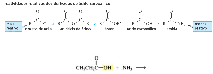 Lista de Exercícios – Ácidos Carboxílicos 1. Dê a estrutura dos seguintes ácidos carboxílicos: a) ácido 3-butenóico b) ácido 2-hidróxi-pentanóico c) ácido 2,3-dimetil-hexanóico 2. Em relação à força ácida dos ácidos carboxílicos, responda: a) Calcule o valor da constante de dissociação ácida para os ácidos A (pKa=5,2) e B (pKa=3,1) e indique qual é o mais forte? b) Por que os ácidos carboxílicos apresentam uma acidez maior do que os álcoois? c) Coloque os ácidos carboxílicos (ácido 2-clorobutanoico, ácido butanoico, ácido 3-cloro-butanoico) em crescente de acidez. 3. Coloque os ácidos carboxílicos: ácido pentanóico, ácido etanóico e ácido octanóico em ordem crescente de: a-) ponto de ebulição b-) solubilidade em água Justifique. 4. Em relação às reações de substituição nucleofílica acílica dos ácidos carboxílicos responda: a-) Qual forma do ácido carboxílico (protonada ou íon carboxilato) sofre reação de substituição nucleofílica acílica? Por quê? b-) Por que a esterificação deve ser realizada em meio ácido? c-) E em presença de excesso de álcool? 5. Mostre a reação de preparação de cada éster, usando um álcool para como material de partida. a-) Propanoato de butila b-) Pentanoato de metila 6. Um método eficiente de sintetizar derivados de ácido carboxílico é através da ativação do ácido em haleto de acila. a-) Quais são os dois reagentes que podem ser utilizados como ativadores dos ácidos carboxílicos? b-) Esquematize a síntese do cloreto de propila a partir do ácido propanóico e de um ativador. 7. A reatividade dos derivados de ácidos carboxílicos (amida, éster, anidrido e haleto de acila) seguem a seguinte ordem. Explique este comportamento. 8. Por que é muito difícil sintetizar uma amida, a partir da reação direta do ácido carboxílico com uma amina? Mostre o produto da reação abaixo em duas condições: a-) Quando a reação é realizada à temperatura ambiente b-) Quando a reação é aquecida acima de 250 oC 9. Mostre o(s) produto(s) das reações do ácido propanoico com os seguintes reagentes e ou catalisadores: a-) Catalisador P2O5 e aquecimento b-) LiAlH4 c-) Br2 e catalisador PBr3 d-) PCl3 10. Em condições específicas podem ocorrer reações de esterificação intramolecular. Mostre a estrutura do hidroxiácido responsável pela formação das seguintes lactonas: a-) b-)