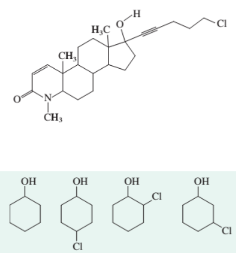 1 Lista de exercícios de Química Orgânica – Biomedicina 2016 Prof. Dr. Alexandre Keiji Tashima Departamento de Bioquímica, Escola Paulista de Medicina/UNIFESP 1. Descreva e faça um esboço do estado de hibridização e dos orbitais moleculares das seguintes moléculas: a) Clorofórmio, CHCl3 b) Eteno, CH2CH2 c) Metanol, CH3OH d) Etino CHCH 2. Desenhe todos os orbitais envolvidos em ligações nas moléculas abaixo. Desenhe todas as ligações, sigma e pi, e orbitais sobrepostos. Localize pares de elétrons livres nos orbitais apropriados: a) Etanol (CH3CH2OH) b) Acetaldeído (CH3COH) 3. Certos compostos, como o mostrado a seguir, têm forte atividade biológica contra células características de câncer de próstata. Nesta estrutura, localize um exemplo de cada um dos tipos de ligações ou átomos a seguir: (a) uma ligação covalente simples muito polarizada, (b) uma ligação covalente dupla altamente polarizada; (c) uma ligação muito pouco polarizada; (d) um átomo de carbono sp; (e) um átomo de carbono sp2; (f) um átomo de carbono sp3; (g) uma ligação entre átomos de hibridização diferentes; (h) a ligação mais longa da molécula; (i) a ligação mais curta da molécula (excetuando-se as ligações a hidrogênios). 4. Liste os seguintes álcoois por ordem crescente de acidez: 2 5. Explique a ordem de solubilidade em água dos compostos nos seguintes grupos: a) Etanol > chloroethane > ethane b) Methanol > 1-butanol > 1-pentanol 6. Organize os compostos em cada grupo em ordem decrescente de acidez. a) CH3CHClCH2OH, CH3CHBrCH2OH, BrCH2CH2CH2OH b) CH3CCl2CH2OH, CCl3CH2OH, (CH3)2CClCH2OH c) (CH3)2CHOH, (CF3)2CHOH, (CCl3)2CHOH 7. Se ocorrerem, qual será o produto(s) majoritário(s) das seguintes reações e em quantas etapas elas acontecerão? Etapas em água (se necessárias) foram omitidas. a) b) c) d) O NaBH4, CH3CH2OH O OH NaBH4, CH3CH2OH O OH LiAlH4, (CH3CH2)2O CH3 CH3 O O 1. LiAlH4, (CH3CH2)2O 2. H+, H2O