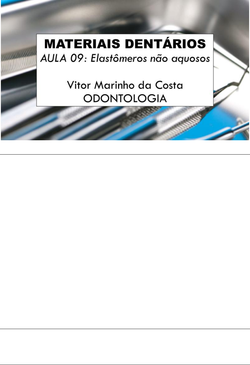Vitor Marinho da Costa 1 Vitor Marinho da Costa Terça-feira 04/09/2018 1. MATERIAIS DE MOLDAGEM: • Os materiais de moldagem precisam apresentar máxima precisão, uma vez que estamos trabalhando com odontologia restauradora. A única forma de se obter a MÁXIMA PRECISÃO é usando o sistema CAD-CAM e o FLUXO DIGITAL. 2. CARACTERITICAS DOS MATERIAIS: • De acordo com a Dental advisor, um elastômero precisa ter: • Viscosidade satisfatória. • A facilidade DE USO. • Tempo de trabalho de 4 minutos. • Possibilidade de desinfecção. • Compatibilidade com o gesso. • Vida útil adequada. • Custo-benefício. • Os elastômeros são os melhores materiais de moldagem que existe na odontologia, perdendo apenas para o scanner intraoral. Vitor Marinho da Costa 2 Vitor Marinho da Costa 3. ELASTÔMEROS – DEFINIÇÃO: • Segundo Philips, elastômeros são materiais de moldagem sintéticos formados por grandes moléculas helicoidais, unidas por ligações cruzadas, formando uma rede tridimensional (formado sólido). • Por ser um polímero, apresenta como reação de presa POLIMERIAÇÃO. 4. ELASTÔMERO – INDICAÇÕES: • Moldagem de áreas retentivas. • Moldagem unitária. • Moldagem de quadrante. • Moldagem de pacientes dentados e desdentados. • MODELO DE ESTUDO X MODELO DE TRABALHO – Materiais que não nos fornecem uma cópia o mais fiel possível da realidade, como o alginato, não deve ser usado como material de trabalho, ou seja, para um modelo definitivo. • Qualquer restauração indireta, onde eu precise de PRECISÃO, os elastômeros são indicados. 5. CLASSIFICAÇÃO QUIMICA; • Existem no mercado quatro tipos de materiais usados para moldagem em restaurações indiretas: • Polissulfetos (Mercapitanas). • Polieter. • Silicone por condensação. • Seilicone por adição. 6. POLISSULFETOS: Polímero de polissulfeto + dióxido de chumbo –> Borracha de polissulfeto + oxido de chumbo + água. • Reação de Vulcanização. • Caiu em desuso (NÃO SE USA MAIS). • Os Polissulfetos formam os primeiros elastômeros não aquosos disponíveis no mercado. Vitor Marinho da Costa 3 Vitor Marinho da Costa • Esse material tem como produto um componente com o grupo SULFETO, oque fazia com que ele tivesse um cheiro MUITO desagradável para o paciente. • O fato de ter como subproduto a água, deixa claro que esse material era passível de deformação. • Apresentação: Duas pastas, sendo uma a pasta base e a outra a pasta ativadora. 7. POLIÉTER: • Reação de presa. • Sem a formação de subprodutos (Grande estabilidade dimensional). • Tempo de trabalho: • Varia de acordo com a temperatura do ambiente. • Início da espatulação – Propriedades elásticas. • 23°C – 3,3 minutos. • 37 °C – 2,3 minutos. • A proporção entre as duas bases também influencia no tempo de trabalho. Para acelerar a reação basta colocar mais catalizador, mas para reduzir a velocidade basta colocar menos catalizador. • Tempo de presa de 7 a 8 minutos. • A polimerização continua após o tempo de presa (Isso é ruim pra gente, pois pode causar deformação). • Tem menor tempo de presa entre os elastômeros. • Apresentação: • Uma pasta base (poliéter) e uma pasta ativadora (éster sulfonado). • Indicação: • Moldagem para prótese fixa unitária. • Moldagem para próteses totais e parciais removíveis. • Moldagem para trasnferências. • Vantagens: • Estabilidade dimensional. • Recuperação elástica. • Não mancha a roupa. • Várias viscosidades. • Hidrofílico (Aceita bem o gesso, visto que esse último material possui água). • Reprodutibilidade. • Facilidade de manipulação. • Cor e odor agradável. Vitor Marinho da Costa 4 Vitor Marinho da Costa • Desvantagem: • Alto custo. • Alta rigidez. • Absorve água (alteração). • Tempo de trabalho curto (3 minutos). 8. SILICONAS: • 90% dos elastômeros comercializados para moldagem, o que pode ser justificado pelo seu BAIXO CUSTO. • Baixo custo. • Versátil. • Existem dois tipos de silicona – De condensação (siliconas com reação de presa por condensação) e de Adição (siliconas com reação de presa por adição). • Ambos os tipos de silicona tem como base o Polidimetilsiloxano. 9. SILICONA DE CONDENSAÇÃO: • É a mais usada entre os CD devido ao seu baixo custo. • A apresentação desse produto é em duas pastas, sendo uma a pasta base densa ou base ou pesada, encontradas em potes, e a pasta leve ou fluida encontrada em tubos. Existe ainda uma terceira pasta, que é a catalizadora. • A moldagem com silicona é feita em duas pastas, pois a PESADA nos dá um suporte, porém não copia os detalhes. Já a pasta leve coisa perfeitamente os detalhes. • Reação de presa: • Subproduto – álcool etílico (causa deformação). • Tempo de trabalho: • Depende da temperatura do dia. • 3 minutos. • Tempo de trabalho é o tempo que vai desde a espatulação, passando pelo tempo para se colocar na moldeira e por fim na boca do paciente. • Tempo de presa: • 11 a 12 minutos para endurecer. • Tempo que o material possui para polimerizar (endurecer). • Manipulação: • Técnica de moldagem múltipla ou simultânea. • Técnica de reembasamento. • Propriedades: • Dependência da consistência do material. • Deformação permanente mínima. • Rápida recuperação elástica. Vitor Marinho da Costa 5 Vitor Marinho da Costa • Estabilidade dimensional: • Alta contração de polimerização devido a evaporação do álcool. • Polimerização contínua (a contração é contínua, logo o vazamento deve ser de 30 minutos, visto que após 6 a 8 minutos quando retirada da boa do paciente, ela volta a forma anterior). • Energia de ruptura: • Baixa resistência ao rasgamento (rasga muito fácil). • Necessita de uma rápida remoção (precisa ser removido de uma vez só). • Vantagens: • Tempo de trabalho e polimeri