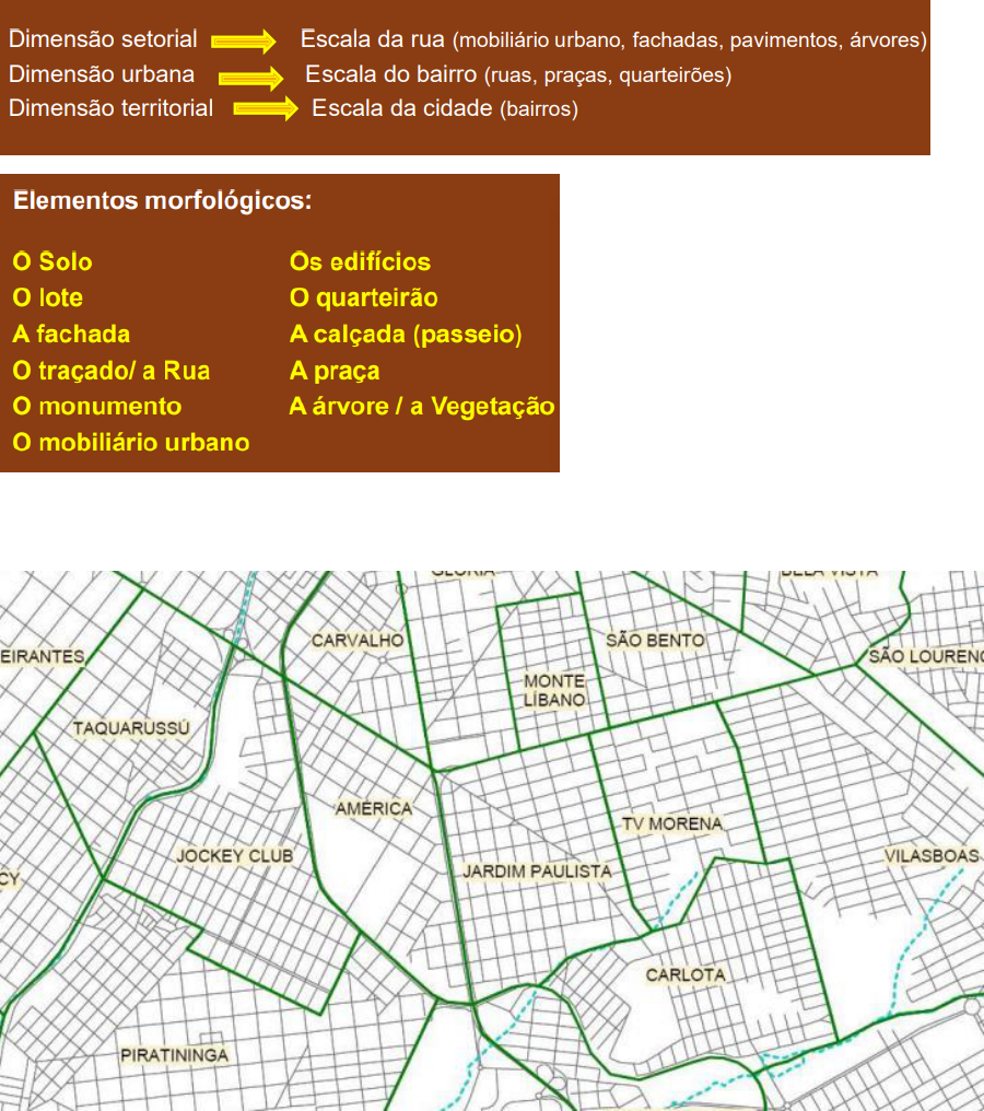 URBANISMO II MORFOLOGIA URBANA Estudo da forma urbana, nas suas partes fisicas, tanto na sua produção como na sua transformação no tempo. Um conceito relacionado à imagem, à leitura que os indivíduos fazem dos objetos arquitetônicos e urbanos (edifícios, praças, ruas, cheios e vazios). O que ela estuda ? Os aspectos exteriores do meio urbano e as suas relações recíprocas, definindo e explicando a paisagem urbana e sua estrutura. Quais são as dimensões espaciais da morfologia urbana ? A malha, trama ou traçado urbano é uma planta da cidade representada pelo seu sistema viário e os espaços delimitados pelas vias Formas da trama urbana: malha regular, irregular, anel, etrela, linear, rádio concêntrica MALHA OU TRAÇADOS URBANOS Podem ser classifcados: Os padrões de traçados viários urbanos estão classificados em: Xadrez: Descrição típica: malha regular em grelha; vias dispostas de forma paralela e ortogonal com ângulos iguais a 90°, ou próximo, marcadas pela continuidade. Quateirões quadrados, cujas quadras possuem dimensões variadas Radial: Descrição típica: malha regular; padrão de malha em teia de aranha, composta por linhas retas divergentes a partir de um centro e vias concêntricas; vias divergentes compostas de linhas retas apresentando continuidade, nem sempre partindo do centro e vias concêntricas dispostas com regularidade Quarteirões com forma trapeizoidal e triângulo com lados de dimensões bastante variáveis Cluster: Descrição típica: malha regular, padrão raiz ou árvore; a partir de uma via principal derivam vias que forma o “cluster” (grupo; aglomerado); vias em linhas retas, ou curvas, exibindo continuidade Quadras com tamanhos variados Semi-reticular: Descrição típica: malha irregular; vias constituem-se de linhas quebradas, cujos ângulos e segmentos possuem dimensãoes variadas entre segmentos; vias apresentando ontinuidade Quarteirões com forma e tamanho irregular Podemos classificar os tipos de malha ou traçado urbano de acordo com a organização das vias: Malha Linear: caracteriza-se por vias retas em sequência, podendo apresentar-se como linear aberta, linear fechada, linear semi-fechada, linear fechada com praça central e linear em alça. Os parcelamentos configurados por uma malha linear possuem uma rua central com os lotes voltados para ela. Este tipo de configuração é caracterizado pela reprodução em série na distribuição dos lotes, ou seja, há uma repetição das características formais das glebas – morfologia, dimensões e orientação. Classificação das malhas lineares: Malha Linear Aberta: possui mais de uma articulação com a malha viária do entorno, sendo bastante comum em pequenas glebas. Classificação das malhas lineares: Malha Linear Fechada: possui uma rua central sem saída (em “cul-de-sac”) e um ponto de articulação com a malha externa Malha Linear semi-fechada: pode se dizer uma junção da aberta com a fechada na qual uma das extremidades da rua é para retorno e possui uma via intermediária transversal, o que garante um maior contato com as áreas vizinhas. Malha Linear Fechada c/ Praça Central: praça central apresenta aspectos muito similares a esta última, porém, neste caso, a rua contorna uma praça central, criando um grande largo na frente dos lotes. Malha Linear em alça: configura-se de forma muito semelhante à linear com praça central, uma vez que em ambos os casos, a rua sofre uma bifurcação, mas neste caso, contorna não mais um espaço de uso público, mas sim uma quadra, um espaço privado. Malha Reticulada: formada por feixes paralelos de vias e que ocupam uma área maior caracterizada como ortogonal e irregular. Classificação URBANISMO II FAU - UNIDERP Malha Reticulada Ortogonal: As cidades com este tipo de planta apresentam um traçado geométrico muito regular, com ruas direitas e perpendiculares, formando entre elas ângulos retos (de 90 graus.) Classificação das Malhas Reticuladas: Malha Reticulada Irregular: as ruas não seguem uma disposição regular, seguindo várias direções. Malha Radial: as ruas convergem para um mesmo ponto. Segunda parte Parcelamento – qualquer divisão do solo, com ou sem abertura de vias de circulação, que resulte em novas unidades imobiliárias. Loteamento – é a subdivisão de gleba em lotes destinados à edificação, com abertura de novas vias de circulação, ou prolongamento, modificação ou ampliação das vias existentes. De acordo com a Lei complementar N0 74 , de 6 de Setembro de 2005 (LOUS): Gleba – porção de terra rústica que ainda não foi objeto de arruamento ou parcelamento. Parcelamentos: Mata do Jacinto, Conjunto Mata do Jacinto, Carandá Bosque (parte), Favela do Limão, Loteamento Municipal Ceasa, Loteamento Municipal Nazaré, Loteamento Abaeté, Loteamento Sóter. Quadra – é o lote ou conjunto de lotes delimitados por vias de circulação. Lote – é o terreno servido de infra-estrutura básica cujas dimensões atendam aos índices urbanísticos definidos por lei municipal para a zona ou corredor em que se situe. Desdobro – é um empreendimento de parcelamento de divisão de área de um lote para formação de novos lotes. Desmembramento – é um empreendimento de parcelamento de subdivisão de gleba em lotes com aproveitamento do sistema viário existente, desde que não implique em na abertura de novas vias de circulação nem no prolongamento ou ampliação das já existentes. Remembramento - reagrupamento de glebas ou lotes contíguos para a constituição de uma ou mais unidades imobiliárias. Por que estudar a MORFOLOGIA URBANA ? Organização do espaço urbano e suas relações. Para compreender a formação, a evolução e a transformação do espaço urbano e de seus elementos, e suas relações, possibilitando a identificação de formas mais apropriadas para a intervenção na cidade e o desenho de novas áreas. A solução não se destina a toda e qualquer ru