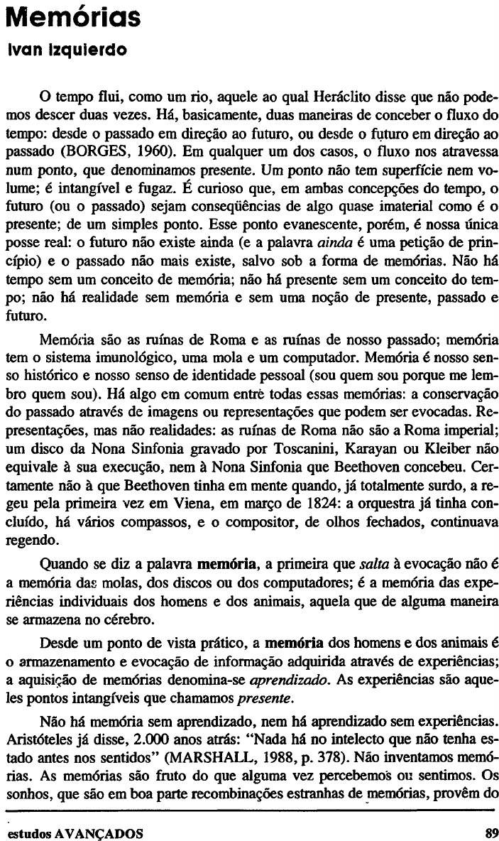 Não há memória sem aprendizado, nem há aprendizado sem experiências.