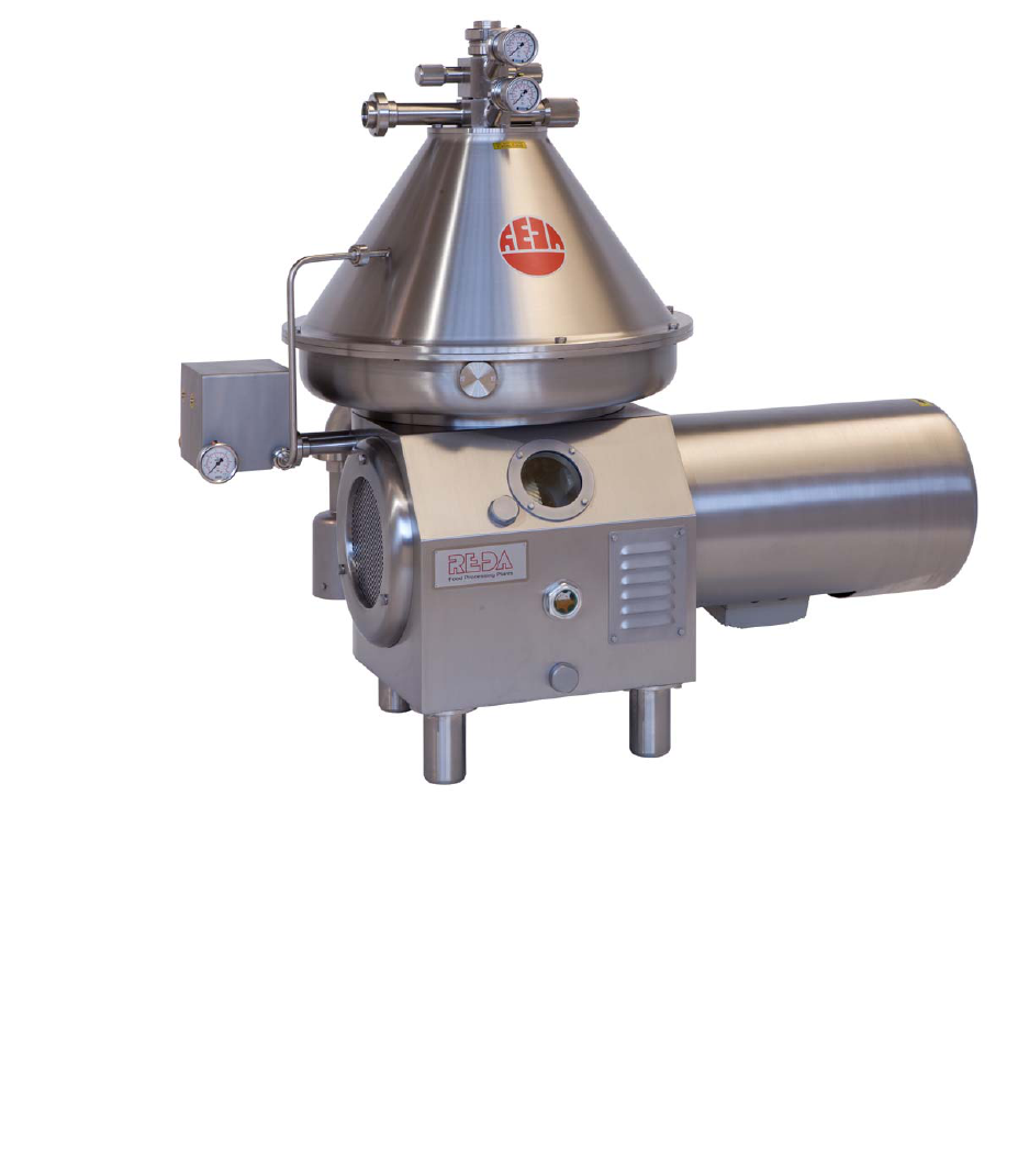 ANO / REVISÃO: 2010/0 MANUAL DE INSTRUÇÕES CENTRÍFUGA RE100TE A1 A. INFORMAÇÃO GERAL A/1. Advertências importantes para os usuários e técnicos de manutenção. Os separadores REDA são máquinas especiais giratórias com elevado número de rotações e que trabalham com a máxima segurança e duração porque são tratados segundo as normas deste manual de instruções. É aconselhável realizar controles periódicos por parte de nossos técnicos para sempre garantir as perfeitas condições de eficiência. Nunca executar qualquer intervenção nem desmontar as tampas até o tambor está completamente parado. A/2. Antes de cada colocação em funcionamento controlar que: Os anéis de fechamento do tambor estão apertados com as referências coincidentes. As coberturas e o aparelho de defluxo estão fixados. A porca do aparelho de defluxo seguramente aparafusada. O freio (quando existente) desengatado (apertar o volante até o final). O nível de óleo um pouco acima da metade do vigia de inspeção. Alimentar somente com tambor fechado segundo a explicação do cap. C (Arranque do separador) Evitar danos às partes que constituem o tambor, manuseando cuidadosamente as peças, de acordo com estas indicações: Choques e apoios nos corpos rígidos: as peças devem ser apoiadas em superfícies de madeira Usar unicamente as chaves de serviço fornecidas Usar sempre a chave prensa de diafragmas Não soldar nem aquecer as peças com chama ou outros sistemas Sempre limpar a extremidade cônica do eixo vertical e o relativo alojamento no tambor, antes de realizar a montagem, evitando o uso de lubrificantes. É aconselhável manter a justa compressão dos diafragmas acrescentando, quando sirvam, os diafragmas fornecidos. Controlar a presença de água no óleo da câmara de engrenagens, descarregando-a periodicamente pelo tampão de descarga. Evitar a lavagem da parte superior interna da base com jato de água, mas unicamente com esponja ou pano molhado. Controlar periodicamente a conexão elétrica e certificar-se que seja realizada a ligação à terra da máquina. Se aconselha utilizar água amaciada para o sistema de água de comando (p. ex. água A2 amaciada da linha do gerador de vapor): a dureza da água, de todo modo, deve ser inferior a 15 graus franceses. Uma água dura pode obstruir os furos de entrada e drenagem do sistema de comando com consequente colocação fora de serviço do separador. Decantar ou filtrar o produto a ser tratado para ter os melhores resultados do separador. Realizar as lavagens como indicado depois de cada trabalho (cap. D). No caso de parada prolongada, abrir o tambor, secá-lo e mantê-lo em local seco. Para as irregularidades de funcionamento observar o guia: “Anomalias de funcionamento” cap. G. B1 B. INSTALAÇÃO B/1. As dimensões totais da máquina são indicadas nos esquemas que seguem este capítulo. É preciso ter cuidado em respeitar as quotas mínimas de distância da parede, ou de uma máquina a outra, para permitir a desmontagem das partes mecânicas. B/2. A placa de assentamento deve ser mergulhada no piso com os apropriados tirantes de ancoragem. Preste atenção que a indicação “OIL” na placa de assentamento corresponda à parte anterior da máquina. Introduza as calotas nos cubos da placa e aperte os parafusos prisioneiros até o final. Mergulhe a placa no piso fazendo que os cubos sobressaiam do plano do piso em aproximadamente 1 cm. Coloque a placa de assentamento em nível com os 4 cubos. Com o concreto endurecido, bloqueie as porcas dos tirantes de ancoragem, e então, assegure o enchimento dos espaços externos da placa. B/3. Posicione o separador introduzindo os pés nos prisioneiros, (para facilitar a operação, quando necessário, afrouxe os parafusos dos anéis nos pés) e controle o nivelamento; na eventualidade introduza os anéis de ajuste fornecidos. Aperte completamente os parafusos de bloqueio dos pés (Fig. B/1). DE NÍVEL PÉ TIRANTE DE ANCORAGEM TAMPA DE REVESTIMENTO PORCA ANEL DE AJUSTE 10 ANEL PINO PARAFUSO DE BLOQUEIO Fig. B/1 B2 B/4. Realize a carga de lubrificante através do tampão localizado ao lado do visor das engrenagens: a quantidade a introduzir na câmara é de aproximadamente 3,8 litros. A verificação deve ser realizada através do vigia de inspeção do óleo que deve ficar cheio apenas sobre a metade. B.5. Consulte os cap. I, L e os esquemas elétricos fornecidos para as conexões elétricas. B/6. O acionamento da centrífuga é com motor elétrico trifásico que pode ser acionado diretamente do quadro de comando. O sentido correto de rotação é indicado pela seta sobre a proteção do motor: o eixo vertical deve girar no sentido horário observando-o desde cima. B/7. Para realizar descargas parciais constantes, o grupo da água de manobra deve ser alimentado com água em pressão constante de pelo menos 1,5 atm e uma vazão instantânea de pelo menos 1500 l/h. A linha entre o reservatório de armazenamento e o separador deve ser realizada com tubo de no mínimo 1/2”, introduzindo um tubo flexível na última seção. No caso de alimentação inconstante em vazão ou pressão, recomenda-se a utilização de um grupo de cuba com bóia, bomba e filtros de linha. É aconselhável posicionar a cuba próxima do separador e mais em cima do mesmo. O ajuste da pressão da água na entrada ao grupo da água de manobra é realizado pelo redutor de pressão fornecido, que deve ser calibrado a 1,8 atm. O consumo horário de água varia de acordo com o número das descargas: em média pode variar de 30 a 60 l/h. Recomenda-se a utilização de água amaciada (máx. 15 graus franceses) para evitar a formação de calcário que ao obstruir os furos de passagem da água no tambor, impede o correto funcionamento do mesmo. Parâmetros da água de comando Dureza: - Temperatura de trabalho até 55°C - Temperatura de trabalho além de 55°C <20°f <10°f Quantidade de sedimentos: máx. 10 mg/l Dimensão da