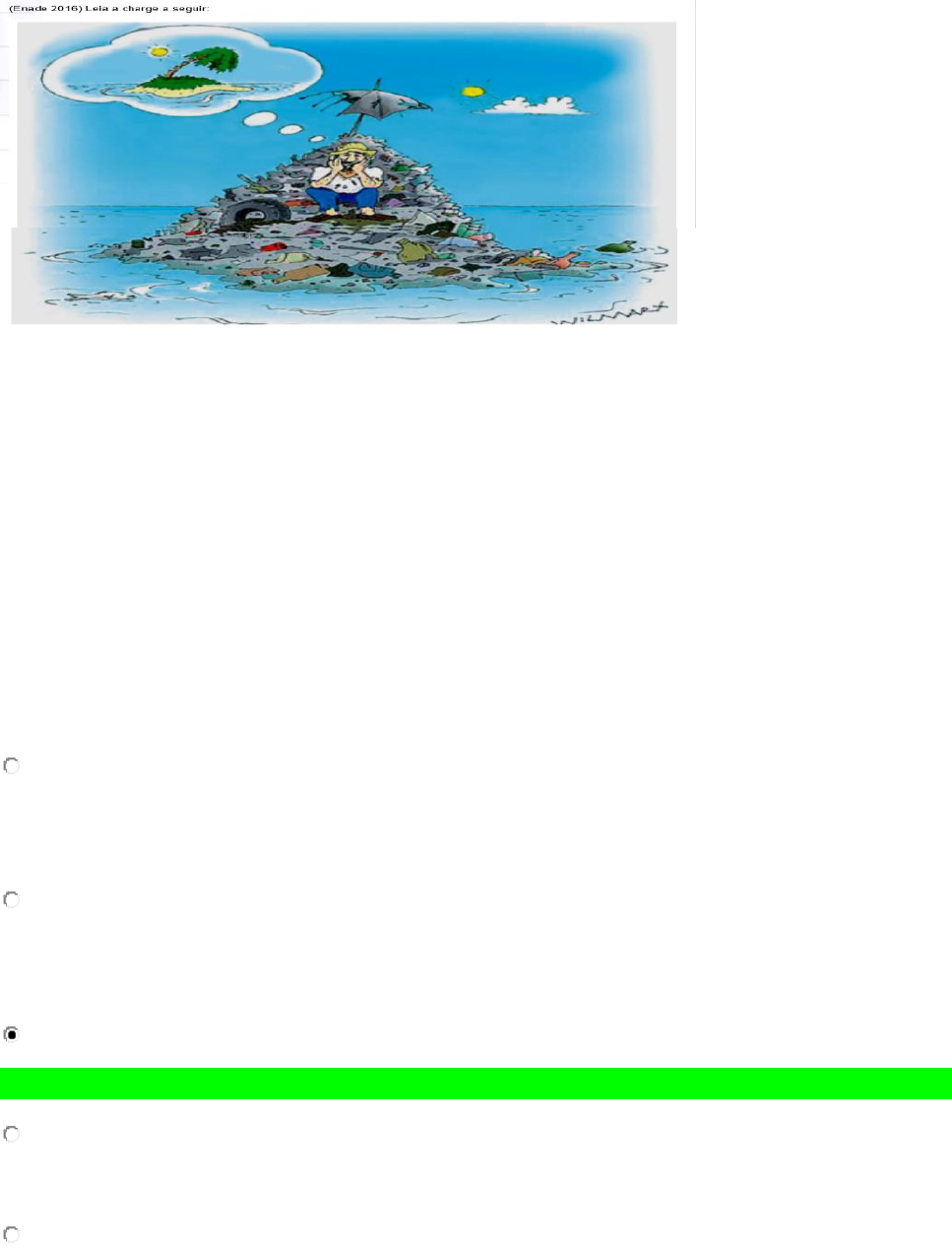 ADMINISTRAÇÃO 3º DESAFIO ENADE 2018.2 1 Disponível em: . Acesso em: 9 set. 2016. A partir das ideias sugeridas pela charge, avalie as asserções a seguir e a relação proposta entre elas. I. A adoção de posturas de consumo sustentável, com descarte correto dos resíduos gerados, favorece a preservação da diversidade biológica. PORQUE II. Refletir sobre os problemas socioambientais resulta em melhoria da qualidade de vida. A respeito dessas asserções, assinale a opção correta As asserções I e II são proposições verdadeiras, e a II é uma justificativa correta da I. As asserções I e II são proposições verdadeiras, mas a II não é uma justificativa correta da I. A asserção I é uma proposição verdadeira, e a II é uma proposição falsa. A asserção I é uma proposição falsa, e a II é uma proposição verdadeira. As asserções I e II são proposições falsas. Gabarito Menos problemas socioambientais e gerando maior qualidade de vida. 2 A articulação indígena-quilombola vem-se consolidando em Oriximiná, no Pará, desde 2012, com o objetivo de incentivar a parceria entre índios e quilombolas frente a novos desafios comuns. A aliança possibilitou, em 2015, a reaproximação entre índios da Terra Indígena Kaxuyana-Tunayana e os quilombolas da Terra Quilombola Cachoeira Porteira, cujas relações, no processo de regularização de suas terras, haviam assumido ares de conflito. Reunidos no Quilombo Abuí, escolhido como local neutro e livre de influências externas, em maio de 2015, lideranças indígenas e quilombolas de ambas as terras, com a mediação de lideranças quilombolas de outras comunidades, acordaram os limites territoriais para fins de regularização fundiária. O acordo foi oficializado junto ao Ministério Público Federal e ao Ministério Público Estadual. Disponível em: . Acesso em: 29 ago. 2016 (adaptado). A análise dessa situação evidencia a importância da autodeterminação dos povos tradicionais na definição de seus limites territoriais. intervenção prévia do Estado em situações de potencial conflito entre povos tradicionais. urgência de regularização das terras quilombolas e indígenas, priorizando-se áreas isentas de conflitos. definição, por atores externos, dos desafios comuns a serem enfrentados pelos povos tradicionais. participação do Ministério Público nas negociações de limites territoriais entre quilombolas e indígenas. Gabarito No texto é apresentado as lideranças indígenas e quilombolas debatendo como podem solucionar seus conflitos territoriais sem a participação de outras pessoas, sem o auxílio de externos. Por isso a resposta correta para a questão é a letra a= Autodeterminação dos povos tradicionais na definição de seus limites territoriais. A alternativa b é incorreta porque o texto é sobre a parceria entre indígenas e quilombolas, em nenhum momento aborda sobre o Estado. Já na terceira alternativa, o artigo diz respeito a um acordo para que indígenas e quilombolas, e não da necessidade de regularizar as terras por parte do Estado. Na alternativa D, o texto não trata de intervenção do Estado, mas do acordo entre os já mencionados. A letra e não condiz com o texto porque não existe intervenção do Ministério Público na ação. Leia mais em Brainly.com.br - https://brainly.com.br/tarefa/12703385#readmore 3 O plágio é daqueles fenômenos da vida acadêmica a respeito dos quais todo escritor conhece um caso, sobre os quais há rumores permanentes entre as comunidades de pesquisa e com os quais o jovem estudante é confrontado em seus primeiros escritos. Trata-se de uma apropriação indevida de criação literária, que viola o direito de reconhecimento do autor e a expectativa de ineditismo do leitor. Como regra, o plágio desrespeita a norma de atribuição de autoria na comunicação científica, viola essencialmente a identidade da autoria e o direito individual de ser publicamente reconhecido por uma criação. Por isso, apresenta-se como uma ofensa à honestidade intelectual e deve ser uma prática enfrentada no campo da ética. Na comunicação científica, o pastiche é a forma mais ardilosa de plágio, aquela que se autodenuncia pela tentativa de encobrimento da cópia. O copista é alguém que repete literalmente o que admira. O pasticheiro, por sua vez, é um enganador, aquele que se debruça diante de uma obra e a adultera para, perversamente, aprisioná-la em sua pretensa autoria. Como o copista, o pasticheiro não tem voz própria, mas dissimula as vozes de suas influências para fazê-las parecer suas. DINIZ, D.; MUNHOZ, A. T. M. Cópia e pastiche: plágio na comunicação científica. Argumentum, Vitória (ES), ano 3, v. 1, n.3, p.11-28, jan./jun. 2011 (adaptado). Considerando o texto apresentado, assinale a opção correta. O plágio é uma espécie de crime e, portanto, deve ser enfrentado judicialmente pela comunidade acadêmica. A expectativa de que todo escritor acadêmico reconheça a anterioridade criativa de suas fontes é rompida na prática do plágio. A transcrição de textos acadêmicos, caso não seja autorizada pelo autor, evidencia desonestidade intelectual. Pesquisadores e escritores acadêmicos devem ser capazes de construir, sozinhos, sua voz autoral, a fim de evitar a imitação e a repetição que caracterizam o plágio. O pastiche se caracteriza por modificações vocabulares em textos acadêmicos, desde que preservadas suas ideias originais, bem como sua autoria. Gabarito A expectativa de que todo escritor acadêmico reconheça a anterioridade criativa de suas fontes é rompida na prática do plágio. 4 Inserir-se na sociedade da informação não significa apenas ter acesso às Tecnologias de Informação e Comunicação (TIC), mas, principalmente, saber utilizar essas tecnologias para a busca e a seleção de informações que permitam a cada pessoa resolver problemas do cotidiano, compreender o mundo e atuar na transform