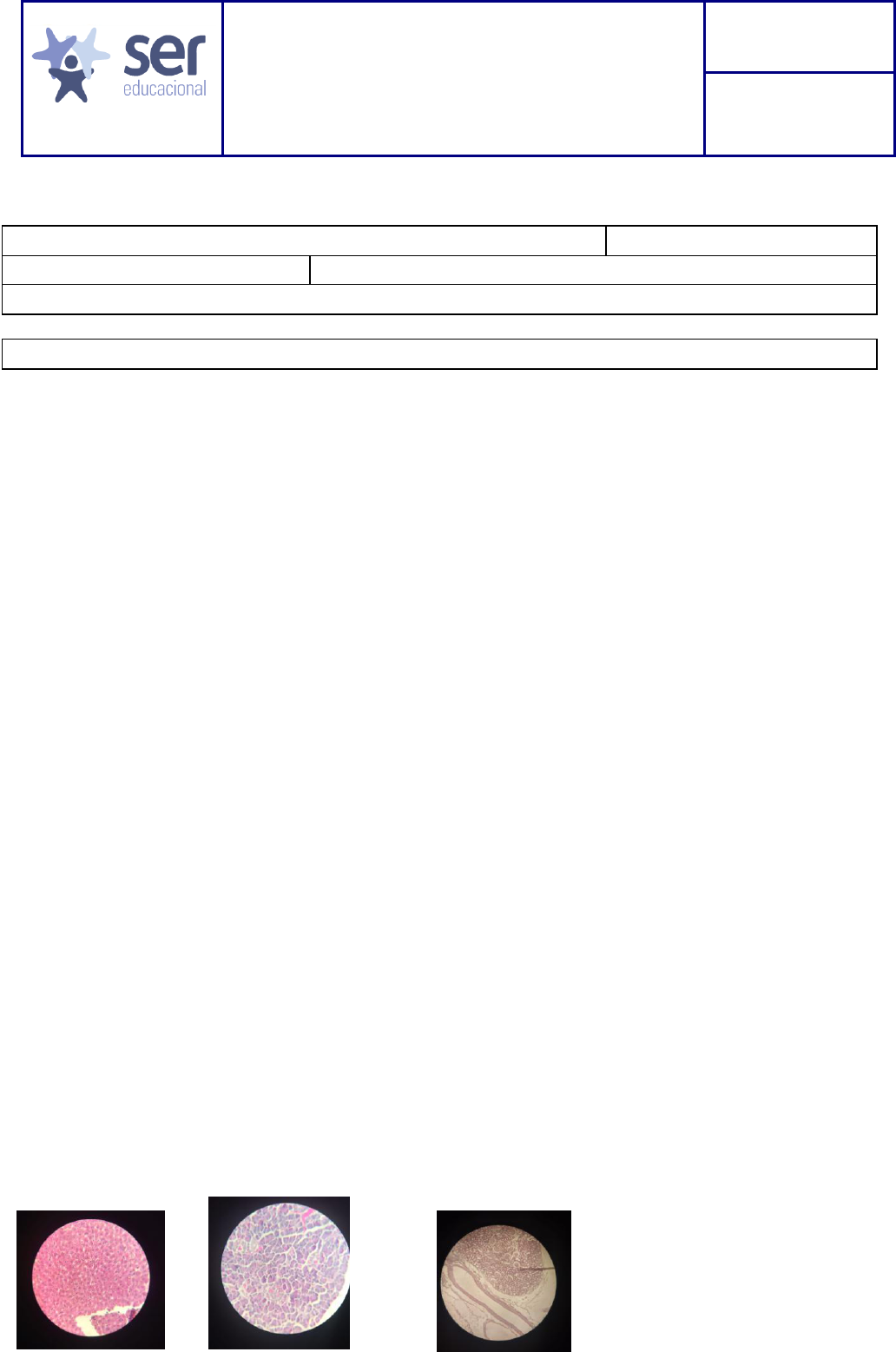 ��RELATÓRIO DE AULAS PRÁTICAS - EaD� AULA ____ ����DATA: ______/______/______��VERSÃO:01 RELATÓRIO DE AULAS PRÁTICAS: CITOLOGIA E EMBRIOLOGIA – aula 2 DADOS DO(A) ALUNO(A): NOME: ANA CAROLINA DA SILVA RIBEIRO MATRÍCULA: CURSO: NUTRIÇÃO POLO: OLINDA PROFESSOR(A) ORIENTADOR(A): ANTONIO SERGIO ALVES DE ALMEIDA JUNIOR TEMA DE AULA: BIOENERGÉTICA E METABOLISMO RELATÓRIO: 1. Resumo sobre o tema abordado em aula. Nesta aula foi abordado, o funcionamento metabólico das células como também a bioenergética, que é o estudo dos processos de transformação de energia. O alimento que comemos é transformado em glicose, proteínas(aminoácidos), carboidratos, lipídios etc, em combustível para nosso corpo, é através do consumo desses nutrientes que obtemos energia. Tudo isso é necessário para que possamos funcionar bem diariamente. Para que esses nutrientes nos sirvam, tem que ser quebrados em moléculas menores, essa quebra libera energia contidas em suas ligações químicas, podendo ser uma quebra parcial ou total. Dessas moléculas a glicose é a mais utilizada pelos seres vivos, sua produção pode ser através da fotossíntese e da quimiossíntese. A quebra da glicose é feita pela respiração celular(quebra completa) ou pela fermentação( quebra incompleta). Já o metabolismo celular, é o conjunto de reações químicas e de transformações de energia. Ele é dividido em dois: anabolismo - síntese, união e o catabolismo que são as reações de quebra. Na pratica a glicose quando é produzida está em estado anabólico, e quando ela quebra está em estado catabólico. Falou-se também do ATP, sigla para a Tri-Fosfato Adenosina, molécula utilizada para o gerenciamento de troca de energia, evitando perdas desnecessárias. O ATP é como um entregador que pega a energia produzida nas mitocôndrias e a leva para onde é requisitada (em outras partes da célula). 2. Explicar a função das mitocôndrias nos processos oxi-redutores celulares. As mitocôndrias produzem energia, através da respiração celular. Acontecem “n” reações químicas durante o processo de respiração celular, que são dinamizadas por enzimas do ciclo de Krebs (encontradas no centro do fluido mitocondrial). A nova molécula de ATP, que surgiu da quebra da glicose( alimento preferido da mitocôndria) é utilizado como transporte de energia para locais mais necessitados. O espermatozoide, por exemplo, tem uma grande quantidade de mitocôndrias (que produzem o trifosfato de adenosina, o ATP),envolto em seu colo, também chamado de peça intermediária. 3. Caracterizar as imagens formadas ao microscópio óptico das diferentes preparações histológicas. 3 Fígado Pâncreas Rim TEMA DE AULA: ESPECIALIZAÇÕES DE SUPERFÍCIE LIVRE RELATÓRIO: 1. Resumo sobre o tema abordado em aula. Nesta aula foram abordados as especializações da membrana plasmática, Estereocilios e Cílios. Os Estereocilios partem da membrana plasmática (filetes) encontram-se nos epitélios que revestem Epidídimo, são longos, imóveis e numerosos, tem função de nutrir os espermatozoides, através dos vasos sanguíneos para assim maturá-los. Já os cílios são encontrados na traqueia, eles são móveis e curtos, também numerosos, com função de empurrar o muco para fora. Além deles, foi falado sobre Microvilosidades e os Flagelos, este também responsável pela motilidade celular, semelhantes aos Cílios na função, mas são um pouco mais longos, e escassos. 2. Identificar as especializações de superfície da membrana plasmática. As Microvilosidades são as dobras na membrana plasmática na superfície das células, elas aumentam a absorção de nutrientes e a superfície de contato. São mais bem observadas em células epiteliais do rim e do intestino delgado. Estereocilios, Cílios e Flagelos já mencionados ao longo do resumo da aula, cada qual com sua forma distinta. Estereocilos é mais longo que os Cílios, numeroso e imóvel encontrados no Epidídimo. Cilios menores, numerosos e moveis fazem parte das células da Traqueia, e, os Flagelos tamanhos longos, em numero bem menor que os dois primeiros, encontrado no espermatozoide. 3. Compreender as modificações que sofre a membrana plasmática e a função dessas especializações na fisiologia tecidual. Contudo, cada modificação tem sua importância, pois elas promovem adequação das células em cada fisiologia tecidual. As Microvilosidades, por exemplo, são encontradas nas células do tecido do intestino e dos rins, elas tem como função de absorção, servem para aumentar a superfície de contato da membrana plasmática, esses especializações são modificações na membrana plasmática com o meio externo. Outros exemplos são os Cílios e os Flagelos, primeiro é curto e numeroso como já citado no resumo da aula enquanto o outro é longo e em numero de um, dois, três, eles são poucos. Os Cílios são encontrados em células das vias respiratórias, com seu batimento ciliar, funcionam para expulsar as impurezas. Já os Flagelos tem função de transporte celular, é encontrado em protozoários, o Flagelo máster é o espermatozoide. Existem ainda os Desmossomos e os Estereocilios, o primeiro tem função de adesão, unindo uma célula à outra e o segundo é mais longo que os Cílios, tem principal função de absorver e secretar, também pode ter a função sensorial quando juntos aos cílios sensoriais no ouvido interno. �� INCLUDEPICTURE "blob:https://web.whatsapp.com/8a96091b-0e29-43d3-b8cc-2b2fea8083df" \* MERGEFORMATINET Traquéia, Epidídimo Duodeno Rim TEMA DE AULA: OOGÊNESE RELATÓRIO: 1. Resumo sobre o tema abordado em aula. Aqui foi falado como acontece esse processo de formação do ovulo final. Inicialmente a mulher nasce com uma ovogônia , célula primaria que entra em meiose I e II no inicio da menarca, liberando o primeiro ovulo. É formado então um ovócito final mais corpúsculos polares(assistência pro