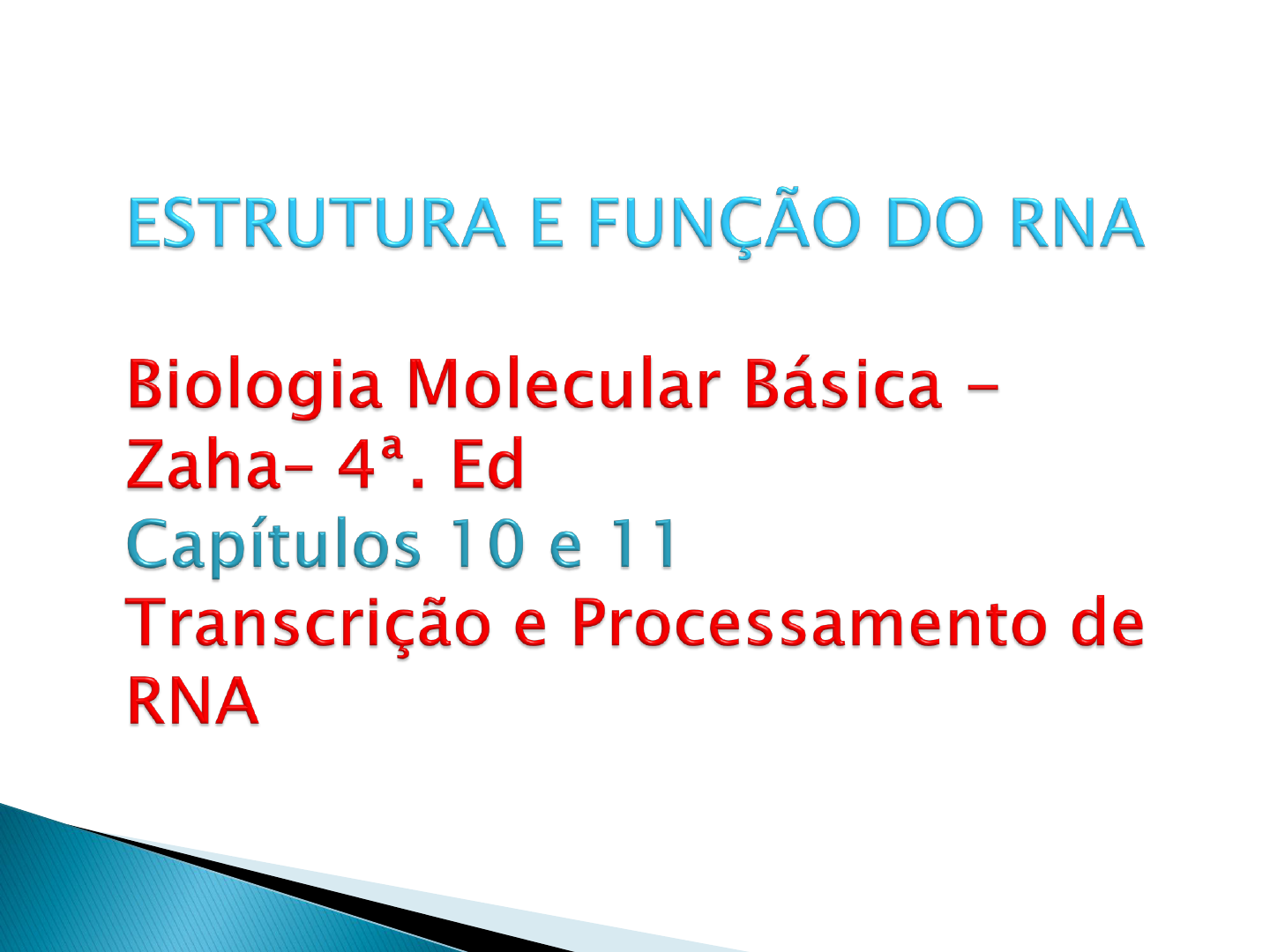 * * * Fluxo da informação * Tipos de RNAs produzidos pelas células * 31 21 * 33 50 * tRNA Braço aceptor Alça TψC Alça do aticódon Alça D Alça variável * * Eucariotos: Três RNA polimerases Procariotos: Uma única RNA polimerase * Canal de saída do RNA * * Fita codificadora X Fita molde * Estrutura dos genes de procariotos * RNA Polimerase de Procariotos Complexo de múltiplas subunidades (α2ββ’ σ) Subunidade ou fator sigma (σ) Liga-se fortemente ao promotor Abre a dupla hélice independentemente de hidrólise do ATP Reconhece um sinal de terminação * Promotores de procariotos Fita codificadora * Transcrição de RNA em procariotos * TTGACA TATAAT AGGAGGT ATG TGA CODONS ATGCCGCA TGCGGCA TTTTTT Promotor Regiões -35 e -10 Shine-Dalgarno Janela aberta de leitura Região de terminação da transcrição Código de iniciação da tradução Código de terminação da tradução Início da transcrição +1 Estrutura dos genes de procariotos 5’ UTR 3’ UTR * Shine-Dagarno 5’ UTR 3’ UTR * Fita molde Fita codificadora RNA Polimerase: Sinais de iniciação e terminação * RNA polimerase de procariotos * Iniciação: Fatores gerais de transcrição Ativadores Mediadores Promotores Acetilases de histonas Complexo remodelador de cromatina Etapas da transcrição de RNA em eucariotos Extensão: Fatores de extensão Topoisomerases Processamento: Capeamento da extremidade 5’ Splicing Poliadenilação da extremidade 3’ * Promotores de eucariotos Inr= seqüência iniciadora Região onde ocorre a atividade de helicase Y= C/T N= A/C/G/T * Complexo Basal de Transcrição: Fatores gerais de transcrição + RNA Polimerase II * TATA-BOX – TBP – TFIIB * Iniciação da transcrição * * Associação da maquinaria de processamento com a RNA pol II: o papel do domínio C-terminal (CTD) da RNA pol II Y-S-P-T-S-P-S (26 repetições em levedura, 52 em mamíferos) Extensão da transcrição e processamento * Estrutura dos genes de eucariotos Inserir imagens * * Estrutura geral de um mRNA de eucarioto * Clivagem e poliadenilação de mRNA * Adição do CAP * Adição da cauda poliA * Sequências consenso envolvidas no cis-splicing * Etapas do cis-splicing 1- clivagem da ext. 5´do íntron e formação do ponto de ramificação (laço) 2- clivagem da ext 3’ do íntron e ligação dos éxons * Spliceossomo (Complexo de proteínas e RNA que realiza o splicing) snRNAs envovidos no cis-splicing * Splicing alternativo * Transporte de mRNAs para o citosol http://www.youtube.com/watch?v=J3HVVi2k2No&feature=player_embedded#! * As setas na figura da direita indicam o sentido da dobradura das alças do tRNA para formar a estrutura secundária. Nome das alças: 1- Braço aceptor – recebe o aminoácido na extremidade 3` 2-Alça D – (base modificada Dihidrouridina) 3- Alça do anticodon (possui o anticondon) 4- Alça TψC também chamado braço T (Possuiu base modificada uma pseudouridina ) Possui anisna uma quinta alça variável * miRNAs são reguladores pós-transcricionais que se ligam a sequências complementares de RNA mensageiro alvo (mRNAs), geralmente resultando em repressão traducional ou degradação e silenciamento de genes alvo. O genoma humano pode codificar mais de 1000 miRNAs, que podem atingir cerca de 60% dos genes de mamíferos e são abundantes em muitos tipos de células humanas. Existem vários tipos dependendo o tamanho e mecanismo de ação. Ex. siRNA, mi RNA e piRNA. Piwi-interacting RNA (piRNA) é a classe dentre os small RNA, de maior tamanho e é expresso em células animais. Os piRNA formam complexos de RNA-proteinas interagindo com as chamadas proteínas Piwi. Estes complexos piRNA estão envolvidos no silenciamento transcricional de genes de transposons e retrotransposons além de alguns outros elementos genéticos de células germinativas, em especial daquelas envolvidas na espermatogênese. A maior parte das sequências já identificadas de piRNAs são antisenses de transposons. Os piRNAs diferem dos miRNA quanto ao tamanho (têm 26–31 nt no lugar de 21–24 nt), não têm sequências conservadas e são mais complexos. Não está claro como os piRNAs são gerados, mas aparentemente a origem difere dos miRNAs e siRNA. Os rasiRNAS parecem ser subespécies dos piRNAs. Os piRNAs formam clusteres no genoma podendo variar de 10 a milhares de cópias em regiões que variam de 1 a 100 kb. Os clusteres são conservados nas espécies e podem estar ou não em regiões próximas a regiões codificadoras, mas as sequências não são conservadas. Em mamíferos os piRNAs são encontrados nos testículos, mas em invertebrados podem ser observados tanto em células germinativas femininas quanto masculinas. Podem ser observados tanto no núcleo quanto no citoplasma. * Cerca de 17 bases da dupla hélice de DNA é desnaturada e desenrolada no sítio ativo da RNA polimerase de cada vez, sendo que 12 pares DNA-RNA são formados na região. Ao contrário da DNA polimerase a RNA polimerase não requer um iniciador, mas usualmente inicia a fita com um GTP ou ATP. * Subunidade sigma- reconhece a região promotora (tem sigmas diferentes para conjuntos diferentes de genes, que reconhecem promotores relativamente diferentes) Ex. Sigma 70 – reconhece promotores de genes constitutivos Sigma 32 –reconhece promotores de genes heat-shock Cerne α2ββ’ – contém o sítio catalítico β’ – liga ao DNA molde e β - liga os ribonucleotídeos trifosfatos e forma as ligações fosfodiester. α2 – tem papel estrutural. * Promotor de procariotos está presente no DNA e não no RNA Região -10 = Pribnow box Região -35 Elemento UP As sequencias dadas acima referm-se a fita codificadora, mas a subunidade β’ se liga na fita molde. * * Sinais de iniciação e terminação de Transcrição no DNA de E. coli (A) A RNA polymerase se liga a uma região promotora no DNA que apresenta as sequências mostradas (regiões -10 e -35). Uma vez que a polimerase está ligada, a transcrição se 