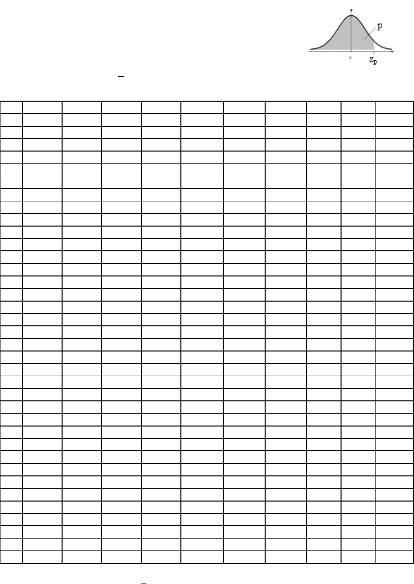 Tabela I: Distribuição Normal Padrão Acumulada Fornece Φ(z) = P(-∞ < Z < z), para todo z, de 0,01 em 0,01, desde z = 0,00 até z = 3,59 A distribuição de Z é Normal(0;1) z 0,00 0,01 0,02 0,03 0,04 0,05 0,06 0,07 0,08 0,09 0,0 0,5000 0,5040 0,5080 0,5120 0,5160 0,5199 0,5239 0,5279 0,5319 0,5359 0,1 0,5398 0,5438 0,5478 0,5517 0,5557 0,5596 0,5636 0,5675 0,5714 0,5753 0,2 0,5793 0,5832 0,5871 0,5910 0,5948 0,5987 0,6026 0,6064 0,6103 0,6141 0,3 0,6179 0,6217 0,6255 0,6293 0,6331 0,6368 0,6406 0,6443 0,6480 0,6517 0,4 0,6554 0,6591 0,6628 0,6664 0,6700 0,6736 0,6772 0,6808 0,6844 0,6879 0,5 0,6915 0,6950 0,6985 0,7019 0,7054 0,7088 0,7123 0,7157 0,7190 0,7224 0,6 0,7257 0,7291 0,7324 0,7357 0,7389 0,7422 0,7454 0,7486 0,7517 0,7549 0,7 0,7580 0,7611 0,7642 0,7673 0,7704 0,7734 0,7764 0,7794 0,7823 0,7852 0,8 0,7881 0,7910 0,7939 0,7967 0,7995 0,8023 0,8051 0,8078 0,8106 0,8133 0,9 0,8159 0,8186 0,8212 0,8238 0,8264 0,8289 0,8315 0,8340 0,8365 0,8389 1,0 0,8413 0,8438 0,8461 0,8485 0,8508 0,8531 0,8554 0,8577 0,8599 0,8621 1,1 0,8643 0,8665 0,8686 0,8708 0,8729 0,8749 0,8770 0,8790 0,8810 0,8830 1,2 0,8849 0,8869 0,8888 0,8907 0,8925 0,8944 0,8962 0,8980 0,8997 0,9015 1,3 0,9032 0,9049 0,9066 0,9082 0,9099 0,9115 0,9131 0,9147 0,9162 0,9177 1,4 0,9192 0,9207 0,9222 0,9236 0,9251 0,9265 0,9279 0,9292 0,9306 0,9319 1,5 0,9332 0,9345 0,9357 0,9370 0,9382 0,9394 0,9406 0,9418 0,9429 0,9441 1,6 0,9452 0,9463 0,9474 0,9484 0,9495 0,9505 0,9515 0,9525 0,9535 0,9545 1,7 0,9554 0,9564 0,9573 0,9582 0,9591 0,9599 0,9608 0,9616 0,9625 0,9633 1,8 0,9641 0,9649 0,9656 0,9664 0,9671 0,9678 0,9686 0,9693 0,9699 0,9706 1,9 0,9713 0,9719 0,9726 0,9732 0,9738 0,9744 0,9750 0,9756 0,9761 0,9767 2,0 0,9772 0,9778 0,9783 0,9788 0,9793 0,9798 0,9803 0,9808 0,9812 0,9817 2,1 0,9821 0,9826 0,9830 0,9834 0,9838 0,9842 0,9846 0,9850 0,9854 0,9857 2,2 0,9861 0,9864 0,9868 0,9871 0,9875 0,9878 0,9881 0,9884 0,9887 0,9890 2,3 0,9893 0,9896 0,9898 0,9901 0,9904 0,9906 0,9909 0,9911 0,9913 0,9916 2,4 0,9918 0,9920 0,9922 0,9925 0,9927 0,9929 0,9931 0,9932 0,9934 0,9936 2,5 0,9938 0,9940 0,9941 0,9943 0,9945 0,9946 0,9948 0,9949 0,9951 0,9952 2,6 0,9953 0,9955 0,9956 0,9957 0,9959 0,9960 0,9961 0,9962 0,9963 0,9964 2,7 0,9965 0,9966 0,9967 0,9968 0,9969 0,9970 0,9971 0,9972 0,9973 0,9974 2,8 0,9974 0,9975 0,9976 0,9977 0,9977 0,9978 0,9979 0,9979 0,9980 0,9981 2,9 0,9981 0,9982 0,9982 0,9983 0,9984 0,9984 0,9985 0,9985 0,9986 0,9986 3,0 0,9987 0,9987 0,9987 0,9988 0,9988 0,9989 0,9989 0,9989 0,9990 0,9990 3,1 0,9990 0,9991 0,9991 0,9991 0,9992 0,9992 0,9992 0,9992 0,9993 0,9993 3,2 0,9993 0,9993 0,9994 0,9994 0,9994 0,9994 0,9994 0,9995 0,9995 0,9995 3,3 0,9995 0,9995 0,9995 0,9996 0,9996 0,9996 0,9996 0,9996 0,9996 0,9997 3,4 0,9997 0,9997 0,9997 0,9997 0,9997 0,9997 0,9997 0,9997 0,9997 0,9998 3,5 0,9998 0,9998 0,9998 0,9998 0,9998 0,9998 0,9998 0,9998 0,9998 0,9998 Obs.: Se z < 0, então Φ(z) = P(−∞ < Z < z) = 1 − Φ(−z). Tabela II: Distribuição t de Student Fornece o quantil tp em função do no de g.l. ν (linha) e de p = P(T≤tp) (coluna) T tem distribuição t de Student com ν g.l. ν \ p 0,6 0,7 0,8 0,9 0,95 0,975 0,98 0,99 0,995 1 0,325 0,727 1,376 3,078 6,314 12,706 15,895 31,821 63,657 2 0,289 0,617 1,061 1,886 2,920 4,303 4,849 6,965 9,925 3 0,277 0,584 0,978 1,638 2,353 3,182 3,482 4,541 5,841 4 0,271 0,569 0,941 1,533 2,132 2,776 2,999 3,747 4,604 5 0,267 0,559 0,920 1,476 2,015 2,571 2,757 3,365 4,032 6 0,265 0,553 0,906 1,440 1,943 2,447 2,612 3,143 3,707 7 0,263 0,549 0,896 1,415 1,895 2,365 2,517 2,998 3,499 8 0,262 0,546 0,889 1,397 1,860 2,306 2,449 2,896 3,355 9 0,261 0,543 0,883 1,383 1,833 2,262 2,398 2,821 3,250 10 0,260 0,542 0,879 1,372 1,812 2,228 2,359 2,764 3,169 11 0,260 0,540 0,876 1,363 1,796 2,201 2,328 2,718 3,106 12 0,259 0,539 0,873 1,356 1,782 2,179 2,303 2,681 3,055 13 0,259 0,538 0,870 1,350 1,771 2,160 2,282 2,650 3,012 14 0,258 0,537 0,868 1,345 1,761 2,145 2,264 2,624 2,977 15 0,258 0,536 0,866 1,341 1,753 2,131 2,249 2,602 2,947 16 0,258 0,535 0,865 1,337 1,746 2,120 2,235 2,583 2,921 17 0,257 0,534 0,863 1,333 1,740 2,110 2,224 2,567 2,898 18 0,257 0,534 0,862 1,330 1,734 2,101 2,214 2,552 2,878 19 0,257 0,533 0,861 1,328 1,729 2,093 2,205 2,539 2,861 20 0,257 0,533 0,860 1,325 1,725 2,086 2,197 2,528 2,845 21 0,257 0,532 0,859 1,323 1,721 2,080 2,189 2,518 2,831 22 0,256 0,532 0,858 1,321 1,717 2,074 2,183 2,508 2,819 23 0,256 0,532 0,858 1,319 1,714 2,069 2,177 2,500 2,807 24 0,256 0,531 0,857 1,318 1,711 2,064 2,172 2,492 2,797 25 0,256 0,531 0,856 1,316 1,708 2,060 2,167 2,485 2,787 26 0,256 0,531 0,856 1,315 1,706 2,056 2,162 2,479 2,779 27 0,256 0,531 0,855 1,314 1,703 2,052 2,158 2,473 2,771 28 0,256 0,530 0,855 1,313 1,701 2,048 2,154 2,467 2,763 29 0,256 0,530 0,854 1,311 1,699 2,045 2,150 2,462 2,756 30 0,256 0,530 0,854 1,310 1,697 2,042 2,147 2,457 2,750 40 0,255 0,529 0,851 1,303 1,684 2,021 2,123 2,423 2,704 60 0,254 0,527 0,848 1,296 1,671 2,000 2,099 2,390 2,660 120 0,254 0,526 0,845 1,289 1,658 1,980 2,076 2,358 2,617 ∞ 0,253 0,524 0,842 1,282 1,645 1,960 2,054 2,326 2,576 Obs.: Para um certo ν fixado, se p < 0,50, tp = − t1-p. Fo rn ec e os q ua nt is F 0, 95 (e m c im a) e F 0, 99 (e m b ai xo ) e m fu nç ão d o no d e g. l. nu m er ad or ν 1 (c ol un a) e d o no d e g. l. de no m in ad or ν 2 (l in ha ) F te m d is tri bu iç ão F c om ν 1 g .l. n o nu m er ad or e ν 2 g .l. n o de no m in ad or P( F < F 0, 95 ) = 0 ,9 5 e P ( F < F 0, 99 ) = 0 ,9 9 ν 2 \ ν 1 1 2 3 4 5 6 7 8 9 10 20 40 60 12 0 ∞ 1 16 1, 45 19 9, 50 21 5, 71 22 4, 58 23 0, 16 23 3, 99 23 6, 77 23 8, 88 24 0, 54 24 1, 88 24 8, 01 25 1, 14 25 2, 20 25 3, 25 25 4, 31 40 52 ,1 8 49 99 ,5 0 54 03 ,3 5 56 24 ,5 8 57 63 ,6 5 58 58 ,9 9 59 28 ,3 6 59 81 ,0 7 60 22 ,4 7 60 55 ,8 5 62 08 ,7 3 62 86 ,7 8 63 13 ,0 3 63 39 ,3 9 63 65 ,7 6 2 18 ,5 1 19 ,0 0 19 ,1 6 19 ,2 5 19 ,3 0 19 ,3 3 19 ,3 5 19 ,3 7 19 ,3 8 19 ,4 0 19 ,4 5 19 ,4 7 19 ,4 8 19 ,4 9 19 ,5 0 98 ,5 0 99