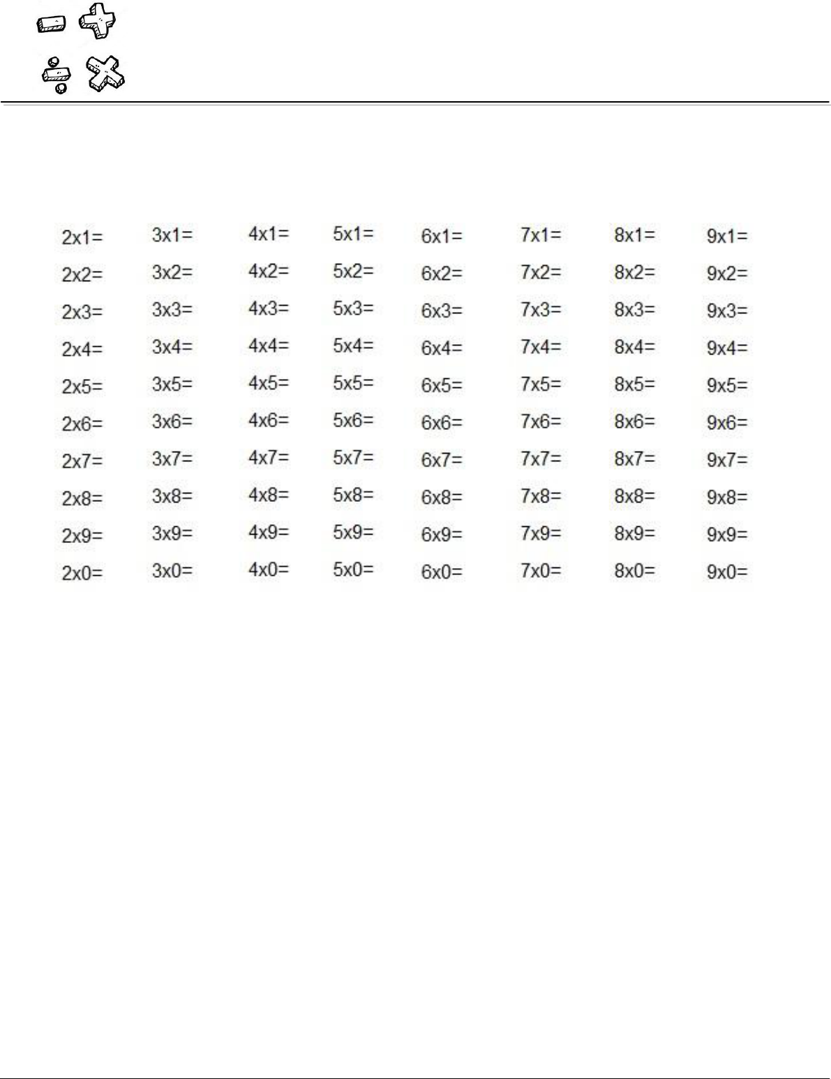 AULA 1 – MATEMÁTICA EXERCICIOS DE MULTIPLICAÇÃO Complete a tabuada: AULA PARTICULAR FÍSICA & MATEMÁTICA Profº Gutenberg Fernandes 21 987847553 (whatsapp) Efetue as operações: 5x5 = 5 x 15 = 5 x 115 = 5 x 25 = 5 X 125 = 5 x 55 = 5 x 75 = 5 x 375 = 5 x 1257 = 6 x 5 = 6 x 15 = 6 x 115 = 6 x 25 = 6 x 125 = 6 x 55 = 6 x 75 = 6 x 375 = 6 x 1257 = 7 x 5 = 7 x 15 = 7 x 115 = 7 x 25 = 7 x 125 = 7 x 55 = Calcule as multiplicações: 7 x 75 = 7 x 375 = 7 x 1257 = 8 x 5 = 8 x 15 = 8 x 115 = 8 x 25 = 8 x 125 = 8 x 55 = 8 x 75 = 8 x 375 = 8 x 1257 = 9 x 5 = 9 x 15 = 9 x 115 = 9 x 25 = 9 x 125 = 9 x 55 = 9 x 75 = 9 x 375 = 9 x 1257 = 9 x 999 = 9 x 123 = Efetue as multiplicações: 153 x 7 = 1007 x 9 = 509 x 62 = 758 x 46 = 445 x 93 = 289 x 140 = 1782 x 240 = 2008 x 405 = 2453 x 1002 = 28 x 0 = 49 x 10 = 274 x 10 = 158 x 100 = 164 x 1000 = 89 x 10000 = Considere: 1 mês = 30 dias e 1 ano = 365 dias, uma semana = 7 dias, determine: quantos dias há em 15 semanas completas: Quantos dias há em 72 meses completos: Quantos dias há em 8 anos completos: Para uma demonstração de ginástica, um professor de Educação Física prepara 64 grupos de alunos. Cada grupo é formado por 25 alunos. Quantos alunos devem participar dessa demonstração? ) Com 12 prestações mensais iguais de 325 reais posso comprar uma moto. Quanto vou pagar por essa moto? Qual é o número natural que você vai obter quando multiplicar 736 por 208? Para cobrir o piso de um barracão foram colocadas 352 placas de 35 metros quadrados cada uma. Quantos metros quadrados tem o piso desse barracão? Um carro bem regulado percorre 12 quilômetros com um litro de gasolina. Se numa viagem foram consumidos 46 litro, qual a distância em quilômetros que o carro percorreu? Em um teatro há 18 fileiras de poltronas. Em cada fileira foram colocadas 26 poltronas. Quantas poltronas há nesse teatro? Em uma multiplicação, os fatores são 134 e 296. Qual o produto? Numa mercearia há 7 caixas de bombons e cada caixa contém 3 dúzias de bombons. Quantos bombons há na mercearia? Uma pessoa deu R$ 4.700,00 de entrada na compra de um objeto e pagou mais 6 prestações de R$ 2.300,00. Quanto custou o objeto? Um motorista percorreu 749 km em 6 dias. Nos cinco primeiros dias andou 132 km por dia. Quanto percorreu no 6º dia? EXERCICIOS DE DIVISÃO Calcule as divisões: 20:5= 16:8= 12:1= 48:8= 37:37= 56:14= Observe a igualdade 56:7=8 e responda: Qual é o nome da operação? Como se chama o número 56? Como se chama o número 7? Como se chama o número 8? Calcule as divisões: 92:4= 891:9= 4416:6= 2397:17= 1584:99= 1442:14= 21000:15= 7650:102= 11376:237 Responda Qual é a metade de 784? Qual é a terça parte de 144? Qual é a quinta parte de 1800? Qual é a décima parte de 3500? Em um teatro há 126 poltronas distribuídas igualmente em 9 fileiras. Quantas poltronas foram colocadas em cada fileira? Quantos garrafões de 5L são necessários para engarrafar 315L de vinho? Uma pessoa ganha R$ 23 por hora de trabalho. Quanto tempo deverá trabalhar para receber R$ 391? Uma torneira despeja 75L de água por hora. Quanto tempo levará para encher uma caixa de 3150L? Numa pista de atletismo uma volta tem 400 metros. Numa corrida de 10.000 metros, quantas voltas o atleta tem de dar nessa pista? Um livro tem 216 páginas. Quero terminar a leitura desse livro em 18 dias, lendo o mesmo número de páginas todos os dias. Quantas páginas preciso ler por dia? Quantos grupos de 18 alunos podem ser formados com 666 alunos? Uma tonelada de cana de açúcar produz aproximadamente 85 litros de álcool. Quantas toneladas de cana são necessárias para produzir 6970 litros de álcool? Calcule as divisões: 184 : 2 = 2739 : 3 = 186 : 6 = 216 : 3 = 1684 : 2 = 6393 : 3 = 339 : 3 = 2055 : 5 = 18462 : 2 = 1866:6= 222 : 3 = 104: 4 = 2244 : 3= 258 : 6= 292 : 4= 4265 : 5= 434 : 7= 9860 : 5= 7992 : 6= 8274 : 6= 2686 : 5 = 8275 : 6 = 197 : 6 = 5326 : 3 = 4267 : 5 = 377 : 6 = Calcule as divisões: 1200 : 3= 700 : 7 = 1640 : 4= 24080 : 8 = 104 : 4 = 3045 : 3 = 21015 : 5 = 12066 : 6 = 3609 : 3 = 7209 : 9= 184 : 12 = 2739 : 30 = 1860 : 16 = 2160 : 15= 1188 : 22 = 6393 : 3 = 339 : 3 = 2055 : 5 = 8462 : 2 =