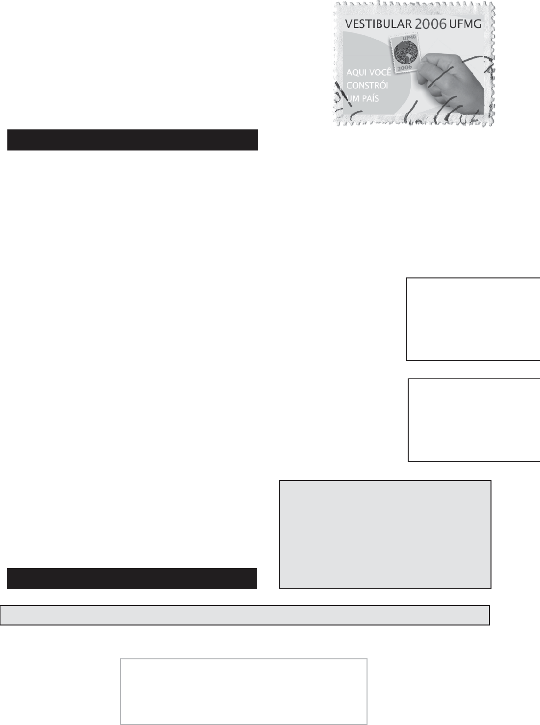 Leia atentamente as instruções que se seguem. 1 - Este caderno contém oito questões, constituídas de itens e subitens, abrangendo um total de oito páginas, numeradas de 3 a 12. Antes de começar a resolver as questões, verifique se seu caderno está completo. Caso haja algum problema, solicite a substituição deste caderno. 2 - Esta prova vale 100 pontos, assim distribuídos: !!!!! Questões 01, 02, 03 e 07: 12 pontos cada uma. !!!!! Questões 04, 05, 06 e 08: 13 pontos cada uma. 3 - NÃO escreva seu nome nem assine nas folhas desta prova. 4 - Leia cuidadosamente cada questão da prova e escreva a solução, A LÁPIS, nos espaços correspondentes. Só será corrigido o que estiver dentro desses espaços. NÃO há, porém, obrigatoriedade de preenchimento total desses espaços. 5 - NÃO serão consideradas respostas sem exposição de raciocínio. 6 - Não escreva nos espaços reservados à correção. 7 - Ao terminar a prova, entregue este caderno ao aplicador. COLE AQUI A ETIQUETA SÓ ABRA QUANDO AUTORIZADO. Im pr es sã o di gi ta l d o po le ga r d ire ito 1a v ez 2a v ez MATEMÁTICA FAÇA LETRA LEGÍVEL Duração desta prova: TRÊS HORAS. U N I V E R S I D A D E F E D E R A L D E M I N A S G E R A I S ATENÇÃO: Terminada a prova, recolha seus objetos, deixe a sala e, em seguida, o prédio. A partir do momento em que sair da sala e até a saída do prédio, continuam válidas as proibições ao uso de aparelhos eletrônicos e celulares, bem como não lhe é mais permitido o uso dos sanitários. Prova de 2a Etapa 3 PROVA DE MATEMÁTICA - 2a Etapa QUESTÃO 01 (Constituída de três itens.) Uma pesquisa foi feita com um grupo de pessoas que freqüentam, pelo menos, uma das três livrarias, A, B e C. Foram obtidos os seguintes dados: das 90 pessoas que freqüentam a Livraria A, 28 não freqüentam as demais; das 84 pessoas que freqüentam a Livraria B, 26 não freqüentam as demais; das 86 pessoas que freqüentam a Livraria C, 24 não freqüentam as demais; oito pessoas freqüentam as três livrarias. 1. DETERMINE o número de pessoas que freqüentam apenas uma das livrarias. 2. DETERMINE o número de pessoas que freqüentam, pelo menos, duas livrarias. 3. DETERMINE o número total de pessoas ouvidas nessa pesquisa. 4 PROVA DE MATEMÁTICA - 2a Etapa QUESTÃO 02 (Constituída de três itens.) Considere estas funções reais: 1. ESBOCE, neste plano cartesiano, o gráfico de cada uma dessas funções no intervalo 73 ��� x : 2. DETERMINE o conjunto � �0)(|RI �� xfx . 3. DETERMINE o conjunto � �)()(|RI xgxfx �� . y x0-2 -2 2 4 2 4 6 . 5 19 5 2 )( 1, 3 5 3 1 1, 4 3 4 5 )( ��� � � � � � �� � � xxge xsex xsex xf 5 PROVA DE MATEMÁTICA - 2a Etapa QUESTÃO 03 (Constituída de dois itens.) Uma indústria produz dois tipos de fertilizante líquido, F1 e F2 , usando apenas os produtos líquidos P e Q. O fertilizante F1 é fabricado misturando-se esses produtos na proporção de 5 litros de P para cada 3 litros de Q. Por sua vez, o fertilizante F2 resulta da mistura de 7 litros de P para cada 2 litros de Q. 1. DETERMINE a quantidade do produto Q a ser usada na fabricação de 260 litros do fertilizante F1 . Certa vez, durante a fabricação do fertilizante F2 , verificou-se que a composição da mistura era de 80% do produto P e 20% do produto Q, estando, portanto, errada. Já haviam sido fabricados 2 200 litros desse fertilizante. Para corrigir esse erro, foi acrescentada à mistura uma certa quantidade do fertilizante F1 . 2. DETERMINE a quantidade do fertilizante F1 que foi acrescentada à mistura. 6 PROVA DE MATEMÁTICA - 2a Etapa QUESTÃO 04 (Constituída de dois itens.) Neste plano cartesiano, estão representados o retângulo ABCD e as retas r e s: Sabe-se que a equação de r é y = x + 4 e a equação de s é y = 2x + 6 ; os pontos D e C pertencem, respectivamente, às retas r e s e têm ordenadas positivas; e A = (a, 0) e B = (b, 0), sendo a < b. 1. CALCULE a área do retângulo ABCD em função apenas de b. A B CD r s x y 7 PROVA DE MATEMÁTICA - 2a Etapa 2. DETERMINE o valor de b para que a área do retângulo ABCD seja máxima e CALCULE essa área. 8 PROVA DE MATEMÁTICA - 2a Etapa QUESTÃO 05 (Constituída de dois itens.) Nesta figura, os dois círculos são tangentes entre si e tangentes aos lados do retângulo ABCD: Sabe-se que o raio do círculo menor e o do círculo maior medem, respectivamente, 2 cm e 4 cm; e o lado AB do retângulo mede 9 cm . 1. CALCULE o comprimento do lado AD do retângulo. D BA C 9 PROVA DE MATEMÁTICA - 2a Etapa 2. CALCULE a área da região sombreada na figura. 10 PROVA DE MATEMÁTICA - 2a Etapa QUESTÃO 06 (Constituída de dois itens.) Considere o polinômio 122)( 24 ���� mmxxxp , sendo m um número real maior que 2 1 . 1. CALCULE as raízes de p(x) em função de m. 2. DETERMINE os valores de m para que p(x) tenha quatro raízes distintas e em progressão aritmética. 11 PROVA DE MATEMÁTICA - 2a Etapa QUESTÃO 07 (Constituída de dois itens.) Seja z = (a + i )3 um número complexo, sendo a um número real. 1. ESCREVA z na forma x + i y , sendo x e y números reais. 2. DETERMINE os valores de a para que z seja um número imaginário puro. 12 PROVA DE MATEMÁTICA - 2a Etapa QUESTÃO 08 (Constituída de dois itens.) Seja S o conjunto dos números naturais de 1 a 100. 1. DETERMINE a probabilidade de se escolherem dois números distintos de S de forma que a soma deles seja um número par. 2. DETERMINE a probabilidade de se escolherem dois números distintos de S de forma que a soma deles seja divisível por 3. Questões desta prova podem ser reproduzidas para uso pedagógico, sem fins lucrativos, desde que seja mencionada a fonte: Vestibular 2006 UFMG. Reproduções de outra natureza devem ser autorizadas pela COPEVE/UFMG.