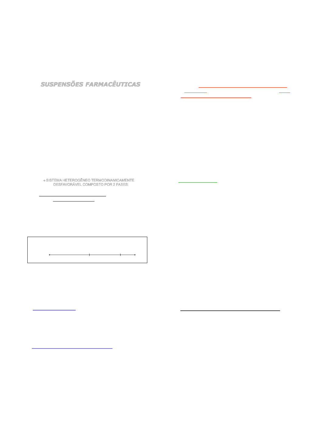 04/09/2016 1 SUSPENSÕES FARMACÊUTICAS “SÃO SISTEMAS HETEROGÊNEOS CONSTITUÍDOS DE UMA FASE CONTÍNUA( DISPERSANTE) OU EXTERNA LÍQUIDA OU SEMI-SÓLIDA E DE UMA FASE INTERNA OU DISPERSA CONSTITUÍDA POR PARTÍCULAS SÓLIDAS INSOLÚVEIS” SUSPENSÕES FARMACÊUTICAS SISTEMA HETEROGÊNEO TERMODINAMICAMENTE DESFAVORÁVEL COMPOSTO POR 2 FASES: o Fase externa (ou contínua ou dispersante): líquida ou semi-sólida o Fase interna (ou dispersa): partículas insolúveis USOS: oral (hidróxido de alumínio, p. ex.) tópico (acetato de cortisona, p. ex.) parenteral (penicilina G + procaína, p. ex.) Tamanho de partículas: COLÓIDES SUSPENSÃO AUTO-SUSPENSÕES VERDADEIRA ARENOSO (-) (+) 0,1m 200 1 – VANTAGENS • Mascarar o sabor • Administração de fármacos insolúveis • Administração de fármacos de sabor desagradável • Absorção mais rápida que comprimidos e cápsulas • Prolongar a ação de suspensões de uso parenteral • Efeito reservatório EX. INSULINA E PENICILINAS... • Melhorar a estabilidade 2 – FINALIDADES •Uso oral •Uso tópico •Parenterais 3 – ASPECTOS FÍSICO-QUÍMICOS “A SUSPENSÃO IDEAL DEVE SE MANTER HOMOGÊNEA POR NO MÍNIMO, O TEMPO NECESSÁRIO PARA REMOVER E ADMINISTRAR A DOSE” 3.1 – CARACTERÍSTICAS FUNDAMENTAIS Sedimentação lenta e fácil redispersão Tamanho de partículas uniforme e manter constante - Aspecto homogêneo após redispersão - Não apresentar crescimento de cristais Escoamento com rapidez e uniformidade do recipiente - Boa fluidez 04/09/2016 2 Fatores que interferem na vel. de sedimentação 1.Tamanho de partículas 2.Densidades das diferentes fases 3.Viscosidade da fase dispersante FLUTUAÇÃO E SEDIMENTAÇÃO DAS PARTÍCULAS + ∞ - ∞ 0 0 TEMPO ∞ FLUTUAÇÃO SEDIMENTAÇÃO • PROPRIEDADES FÍSICAS DE UMA SUSPENSÃO BEM FORMULADA: 1) Permanecer homogênea por um período de tempo suficiente entre a ressuspensão (agitação) e a dosagem. 2) O sedimento produzido durante o período de repouso (estocagem) deve ser facilmente ressuspendido com agitação moderada. 3) Viscosidade moderada (permita medir a dose sem dificuldades). 4) As partículas suspensas seriam pequenas e uniformes a fim de propiciar um produto elegante de textura suave. • Física das Dispersões repouso Agitação Moderada Física das Dispersões • Solubilidade na camada de difusão A- Na+ Na+ Na+ Na+ Na+ A- A- A- Difusão Do fármaco ----- ------ ------ ------- Fluído GI pH 1-3 Precipitado fino do fármaco Barreira gastrintestinal Cs pH 04/09/2016 3 • Tensão Superficial (hidrofobia) – Agente Molhante: Tensoativo EHL entre 7 e 9 ( concentração 0,1%) Suspensões Farmacêuticas: CARACTERÍSTICAS DAS PARTÍCULAS 13-15 7 - 9 15-18 6-16 3-7 2-3 18 15 12 9 6 3 2 • FLOCULAÇÃO OU DEFLOCULAÇÃO A magnitude do sistema floculado ou defloculado depende das forças eletrostáticas de repulsão ou de atração entre as partículas dispersas. FLOCULAÇÃO: POTENCIAL ZETA TAMANHO DAS PARTÍCULAS FORMATO DAS PARTÍCULAS CONCENTRAÇÃO Agentes floculantes: Eletrólitos: sais sódicos de acetato, fosfato, e citrato. Tensoativos: catiônicos e aniônicos Polímeros: celuloses, alginatos, gomas, carbômeros FLOCULAÇÃO OU DEFLOCULAÇÃO Suspensões Farmacêuticas: Aplicações • Problemas Farmacotécnicos x Biodisponibilidade – PARTÍCULA DO FÁRMACO 1) Velocidade de sedimentação • Dificuldade para a dosagem – Concentração de fármaco administrado V = r 2 (d1 – d2) g 9 η Tamanho da Partícula (r2) •Partículas grandes: •Partículas pequenas •Variação no tamanho (granulometria) tempo de sedimentação VISCOSIDADE Agentes suspensores (viscosidade) Viscosidade Estabilidade - Gomas naturais: arábica, adraganta, caraia. - Derivados da celulose: CMC, MC,EC. -Líquidos viscosos: xaropes, glicerina, sorbitol, polietilenoglicóis etc. - Argilas: 1. Bentonita: silicato de Al hidratado coloidal. 2. Atapulgita: silicato de Al em Mg hidratado. 3. Hectorita: silicato de Mg (puro). - Outros polímeros: Carbopol 934: polímero aniônico carboxivinílico de alto peso molecular. pva, pvp... AGENTES SUSPENSORES: (1) para veículos aquosos (2) para veículos oleosos GOMA ARÁBICA: LANOLINAS - 5 a 10% - 5 a 6% - caráter ácido (pH 2,6 em H2O) - viscosidade pouco variável CERAS - 1% ALGINATOS: - 1 a 5% POLIETILENO, ÓLEO DE RÍCINO, - caráter aniônico MONOESTEARATO DE ALUMÍNIO.. - ácido (pH próximo a 5,0) - utilizados na forma de seus sais sódicos SILICATOS DE ALUMÍNIO: - 0,5 a 2% - substâncias alcalinas que tendem a gelificar CELULOSE MICROCRISTALINA, POVIDONA.. 04/09/2016 4 4 – Composição de suspensões 4.1 – Fase interna Sólidos insolúveis finamente dispersos 4.2 – Agentes suspensores •Agentes espessantes ou de viscosidade •Agentes molhantes •Agentes floculantes AGENTE SUSPENSOR CONCENTRAÇÃO USUAL pH APLICÁVEL Alginato de sódio 1,0-5,0 % 4,0-10 Bentonita 0,5-5,0% 3-10 (7,0) Carbopol 0,5-1,0% 5,0-11 Celulose microcristalina(CMC) 0,5-2,0% 3,5-11 CMC-Na 0,5-2,0% 2,0-10 Dióxido de silício coloidal (aerosil) 2,0-10% Até 10,7 Goma adraganta 0,5-2,0% 1,9-8,5 Goma Xantana 0,3 -2,0% 3-12 Goma arábica (acácia) 5,0-10,0% ------- Hidroxietilceloluse (Natrosol) 0,1-2,0% 2,0-12 Hidroxipropilmetilcelulose(HPMC) 0,3-2,0% 3,0-11 Metilcelulose 0,5-5,0 3,0-11 Silicato de Alumínio e Magnésio (veegun) 0,5-2,5 3,5-11 Povidona Até 5,0% ------- Pectina 1,0-3,0% 2,0-9,0 4.2.1 – AGENTES DE VISCOSIDADE 4.2.2 – Agentes molhantes Tensoativos e colóides hidrófilos 4.2.3 – Agentes floculantes Laurilsulfato de sódio (0,5-1,0%) Polissorbato 80 (tween 80) (0,1-3,0%) Monoleato de sorbitano (span 80) (0,1-3,0%) Polietilenoglicol 400 (até 10%) Colóides hidrófilos Argilas (bentonita) Cloreto de sódio (até 1%) Fosfato dicálcico de potássio 4.3 – Veículos Glicerina (2-20%) Polietilenoglicol (2-30%) Propilenoglicol (10-25%) Sorbitol 70% (5-100%) Xarope de cacau (50-100%), xarope simples (50- 100%) Suspendoral (20-100%) Xaropes 