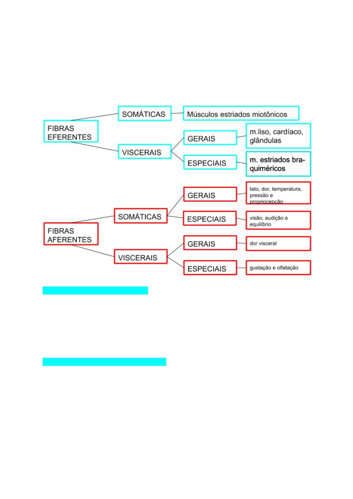 NÚCLEOS DOS NERVOS CRANIANOS > Estudar os nervos cranianos agrupando-os de acordo com os componentes funcionais de suas fibras. > Os núcleos dos nervos cranianos se dispõe no tronco encefálico em colunas longitudinais que correspondem a estes componentes funcionais. > 7 componentes e 6 colunas (fibras aferentes viscerais gerais e especiais vão para uma mesma coluna). COLUNA EFERENTES SOMÁTICA ● Todos os núcleos desta coluna dispõe-se de cada lado próximo ao plano mediano. ● 1 núcleo para cada nervo craniano > 4 nervos cranianos. ● Núcleo do oculomotor - situado mesencéfalo. ● Núcleo do troclear - situado no mesencéfalo (colículo inferior). ● Núcleo do abducente - situado na ponte. ● Núcleo do hipoglosso - situado no bulbo. COLUNA EFERENTE VISCERAL GERAL ● Nos núcleos desta coluna estão os neurônios pré-ganglionares do parassimpático. ● As fibras que saem desses núcleos são as fibras pré-ganglionares. ● 5 núcleos. ● Núcleo de Edinger-Westphal - pertence ao complexo do oculomotor, situado no mesencéfalo a nível do colículo superior. Origina fibras pré-ganglionares para o m. ciliar, e fibras pós-ganglionares para o esfíncter da pupila. ● Núcleo lacrimal - situado na ponte, origina fibras pré-ganglionares que saem pelo VII, fibras pós-ganglionares para a glândula lacrimal. ● Núcleo salivatório superior - situado na parte caudal da ponte, origina fibras pré-ganglionares que saem pelo nervo facial, fibras pós-ganglionares que inervam as glândulas submandibulares e sublingual. ● Núcleo salivatório inferior - situado na parte mais cranial do bulbo, fibras pré-ganglionares que saem pelo nervo glossofaríngeo e chegam ao gânglio óptico, fibras pós-ganglionares que chegam a parótida. ● Núcleo dorsal do vago - situado no bulbo no assoalho do Iv ventrículo, fibras pré-ganglionares que saem pelo vago e terminam fazendo sinapse em um grande número de pequenos gânglios nas paredes das vísceras torácicas e abdominais. NÚCLEO NERVO GÂNGLIO ESTRUTURAS Edinger-Westphal III Ciliar M. ciliar e esfíncter da pupila Lacrimal VII Pterigopalatino Glândula lacrimal Salivatório Superior VII Submandibular Glândulas sublingual e submandibular Salivatório Inferior IX Ótico Glândula parótida Dorsal do vago X Vários Vísceras torácicas e abdominais COLUNA EFERENTE VISCERAL ESPECIAL ● Dá origem a fibras que inervam os músculos de origem branquiomérica. ● Localizam-se profundamente no interior do tronco encefálico. ● 3 núcleos. ● Núcleo motor do trigêmeo - situa-se na ponte, dá origem às fibras que saem pela raiz motoras do trigêmeo, terminam inervando os m. derivados do primeiro arco branquial. ● Núcleos do facial - situa-se na ponte, origina fibras que pelo nervo facial vão à musculatura mímica e ao ventre posterior do m. digástrico, todos os m. derivados do segundo arco branquial. ● Núcleo ambíguo - situado no bulbo, dá origem às fibras que inervam os m. da faringe e laringe, saindo pelos nervos glossofaríngeo, vago e raiz craniana do acessório. COLUNA AFERENTE SOMÁTICA GERAL ● Os núcleos desta coluna recebem fibras que trazem grande parte da sensibilidade da cabeça. ● Coluna do trigêmeo - principal nervo que nela termina. ● Contínua, se estende ao longo de todo o tronco encefálico, continuando caudalmente sem interrupção com a substância gelatinosa da medula. ● Núcleo do trato mesencefálico do trigêmeo - estende-se ao longo de todo o mesencéfalo a parte mais cranial da ponte, recebe impulsos proprioceptivos dos m. da mastigação e dos m. extrínsecos do bulbo ocular. ● Núcleo sensitivo principal - localiza-se na ponte, contínuo caudalmente com o núcleo do trato-espinhal. ● Núcleo do trato-espinhal do trigêmeo - estende-se desde a ponte até a parte alta da medula. COLUNA AFERENTE SOMÁTICA ESPECIAL ● Nesta coluna estão localizados os dois núcleos cocleares (ventral e dorsal) e os quatro núcleos vestibulares. ● Audição e equilíbrio. COLUNA AFERENTE VISCERAL ● Formada por um único núcleo, o núcleo do trato solitário, situado no bulbo. ● Chegam fibras que trazem a sensibilidade visceral e especial (gustação), que entram pelos nervos facial, glossofaríngeo e vago. COMPONENTE FUNCIONAL FACIAL GLOSSOFARÍNGE O VAGO AFERENTE VISCERAL ESPECIAL Gustação dos ⅔ anteriores da língua. Gustação do ⅓ posterior da língua. Gustação na epiglote. AFERENTE VISCERAL GERAL Parte posterior da fossa nasal e superior do palato mole. ⅓ posterior da língua, faringe, úvula, tonsilas, tuba auditiva, seio e corpo carotídeo. Parte da laringe, faringe, traquéia, esôfago e vísceras torácicas e abdominais. CONEXÕES SEGMENTARES FIBRAS ASCENDENTES - colunas aferentes ● Lemnisco trigeminal: liga os núcleos sensitivos do trigêmeo ao tálamo. ● Lemnisco lateral: conduzem impulsos auditivos dos núcleos cocleares ao colículo inferior, de onde vão para o tálamo. ● Fibras vestíbulos-talâmicas: ligam os núcleos vestibulares ao tálamo. ● Fibras solitário-talâmicas: ligam o núcleo solitário ao tálamo. FIBRAS DESCENDENTES - colunas eferente ● Trato corticonuclear: colunas eferente somática e visceral especial (fibras homolaterais). ● Hipotálamo: coluna eferente visceral geral. CONEXÕES REFLEXAS > Existem muitas conexões entre os neurônios dos núcleos sensitivos dos Nc e os neurônios motores (e pré-ganglionares) dos núcleos das colunas eferente. > Essas conexões são muito importantes para um grande número de arcos reflexos que se fazem ao nível do tronco encefálico. > As fibras para estas conexões podem passar através da formação reticular ou do fascículo longitudinal medial. REFLEXO MANDIBULAR OU MENTUAL - Estiramento da musculatura mastigatória. - Aferência e eferência pelo nervo vago. REFLEXO CORNEANO OU CORNEOPALPEBRAL - Fechamento dos dois olhos por contração bilateral da parte palpebral do m.orbicular do olho. 