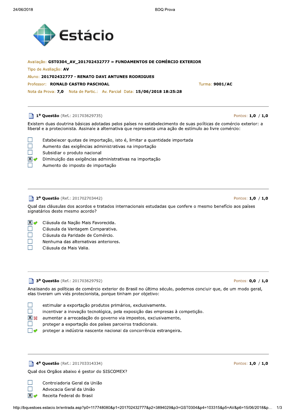 Comércio Exterior EAD Estácio - PROVA FUNDAMENTOS DE COMERCIO EXTERIOR 2020