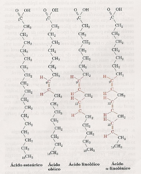 1 INTRODUÇÃO Os lipídios (do grego: lipos, gordura) são substâncias de origem biológica, solúveis em solventes orgânicos (éter, clorofórmio, benzeno) e insolúveis ou pouco solúveis em água. As principais classes de lipídios biológicos são: ácidos graxos, triacilgliceróis, glicerofosfolipídios, esfingolipídios e esteróides [VOET, 2006]. Principais classes de lipídios biológicos - Ácidos graxos: são ácidos carboxílicos com grupos laterais de hidrocarbonetos de cadeia longa (com cadeias carbônicas variando entre 4 e 36 carbonos). Eles normalmente ocorrem na forma esterificada, como os principais componentes de triacilgliceróis, glicerofosfolipídios, esfingolipídios e colesterol. Nas plantas e nos animais superiores, os ácidos graxos mais comuns são os com 16 e 18 carbonos (C16 e C18): ácidos palmítico, oléico, linoléico e esteárico (Figura 1). Ácidos graxos com menos de 14 ou mais de 20 carbonos são raros. A maioria dos ácidos graxos possui um número par de carbonos, pois em geral são sintetizados pela concatenação de unidades C2. FIGURA 1: Fórmulas estruturais de alguns ácidos graxos [VOET, 2006]. Os ácidos graxos podem ainda ser divididos em dois grupos: saturados e insaturados (Figura 2). Os ácidos graxos saturados são aqueles que possuem somente ligações simples (C–C) entre seus átomos de carbono da cadeia de hidrocarbonetos. Sua conformação geralmente é reta, o que permite seu empilhamento de forma eficiente. Já os ácidos graxos insaturados possuem uma ou mais duplas ligações (C=C) ao longo da cadeia carbônica. A ligação dupla ocorre de forma alternada entre os átomos de carbono, e ela pode ter duas configurações: cis (se a molécula adquirir forma linear) e trans (se a molécula tiver uma inclinação na cadeia). Os ácidos graxos insaturados ocorrem na natureza na configuração cis, entretanto, através de processos artificiais de hidrogenação (quando são solidificados na presença de H2) eles são transformados para a configuração trans [VOET, 2006]. FIGURA 2: Ácido graxo saturado (esquerda) e insaturado (direita) [Aula 06]. - Triacilgliceróis: também conhecidos como triglicerídios ou gorduras neutras, constituem basicamente as gorduras e os óleos encontrados nas plantas e animais. Eles são substâncias apolares e insolúveis em água, compostos por triésteres de ácidos graxos e glicerol (Figura 3). Os triacilgliceróis são substâncias de reserva de energia para os animais, sendo sintetizados e armazenados nos adipócitos (células gordurosas do tecido adiposo), que permite com que humanos sobrevivam a jejum de 2 a 3 meses e proporciona isolamento térmico [VOET, 2006]. FIGURA 3: Molécula de triacilglicerol [VOET, 2006]. As gorduras e os óleos são misturas complexas de triacilgliceróis, cuja composição em ácidos graxos depende do organismo que os produz. As gorduras são ricas em ácidos graxos saturados, logo apresentam uma maior facilidade de empacotamento devido a conformação das suas moléculas, o que explica a sua solidez em temperatura ambiente, enquanto os óleos são mais ricos em ácidos graxos insaturados, o que dificulta a interação intermolecular, sendo portanto líquidos a temperatura ambiente. - Glicerofosfolipídios e Esfingolipídios: são importantes componentes lipídicos das membranas biológicas. Os glicerofosfolipídios (ou fosfoglicerídios) são constituídos de sn-glicerol-3-fosfato esterificado a ácidos graxos nos posições C1 e C2 e a um grupo X no seu grupo fosforil, conforme a Figura 4. Os esfingolipídios são formados por uma molécula de um aminoálcool de cadeia longa, a esfingosina, que é ligado aos ácidos graxos através de uma ligação amida, conforme a Figura 5. [VOET, 2006]. FIGURA 4: Molécula de glicerofosfolipídio [VOET, 2006]. FIGURA 5: Uma molécula de ceramida, derivada do ácido graxo N-acil da esfingosina [VOET, 2006]. - Esteróides: os esteróides são derivados do ciclopentanoperidrofenantreno. O colesterol é o esteróide mais abundante nos animais, e é um componente fundamental das membranas plasmáticas animais (Figura 6). Ele é o precursor metabólico dos hormônios esteroidais, que regulam uma grande variedade de funções fisiológicas, entre elas o desenvolvimento sexual e o metabolismo de carboidratos [VOET, 2006]. FIGURA 6. Colesterol (a) Fórmula estrutural. (b) Modelo de volume atômico [VOET, 2006]. Agregados Lipídicos Lipídios anfipáticos (como os ácidos graxos), ao serem misturados com a água, podem formar três tipos de agregados: micela, bicamada ou lipossomo. Lipídios com uma única cadeia carbônica, como sabões e detergentes, devido à forma cônica e afilada de suas moléculas, constituem, preferencialmente, micelas. Nesta estrutura esférica, as cadeias de hidrocarbonetos organizam-se no interior, isolando-se da água, e os grupos polares posicionam-se na superfície externa, interagindo com o solvente (Figura 7a) A formação de micelas é favorecida quando a área transversal dos grupos carregados for maior que a(s) cadeia(s) acila lateral(is), como ocorre nos ácidos graxos livres, nos lisofosfolipídios (fosfolipídios sem um ácido graxo) e nos detergentes como o dodecil sulfato de sódio. Ela é uma etapa importante na digestão dos lipídios da dieta. A maioria dos fosfolipídios e glicolipídios associam-se em uma camada dupla de moléculas, chamada bicamada lipídica. Esta estrutura permite uma agregação mais estável das moléculas desses lipídios, que tem forma cilíndrica devido à presença de duas cadeias apolares. As moléculas de lipídios alinham-se lado a lado, compondo duas monocamadas; as cadeias carbônicas das monocamadas agrupam-se frente a frente, de modo a criar um domínio hidrofóbico no meio da bicamada; os grupos hidrofílicos dispõem-se na superfície das duas faces da bicamada, interagindo com a água (Figura 7b). Bicamadas lipídicas tendem a se converter em estruturas fec