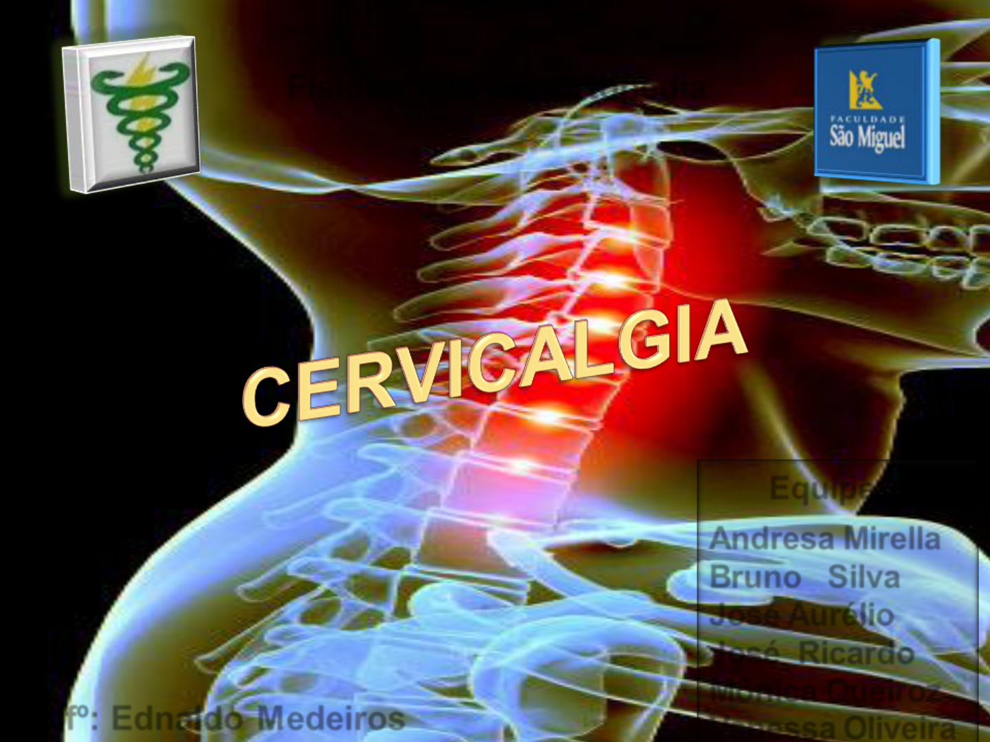 * * * * A cervicalgia costuma ser insidiosa, sem causa aparente. Mas raramente se inicia de maneira súbita, em geral está relacionada: movimentos bruscos do pescoço; longa permanência em posição forçada; esforço ou trauma; Hérnia discal; alterações da ATM (articulação têmporo-mandibular). O pescoço controla os movimentos da cabeça em relação ao resto do corpo. Podendo ter profundas conseqüências. Fonte: http://www.femeninas.com * * A coluna cervical é o segmento mais móvel de toda a coluna vertebral. É subdividida em partes: Superior: Atlas (C1) Axis (C2), Essas diferenças geram desalinhamentos articulares e sobrecargas musculares, provocando alteração da biomecânica. Inferior: Possui larga amplitude de movimento. Começa em C3 E termina em C7 Fonte: http://www.posturaesaude.fst.br * * Anualmente, a cervicalgia afeta entre 30 a 50% da população. 15% da população geral sofreram cervicalgia crônica (>3 meses) em algum momento de suas vidas. Anualmente, entre 11 e 14% da população economicamente ativa experimentarão limitação devida a cervicalgia. A maior prevalência ocorre em doentes de meia idade, As mulheres são mais afetadas que os homens. Fonte: http://www.lookfordiagnosis.com * * Se desenvolvem de forma gradual ou tem aparecimento pós-traumático: Apresentam-se da seguinte forma: Postura de defesa e rigidez do movimento do pescoço, com dor na musculatura dos ombros podendo irradiar-se para as extremidades dos membros superiores, alterando os reflexos do punho, cotovelo com perda progressiva da função, causando fibromialgia, dor miofacial e a lesão do chicote; Fonte: http://bemstar-luizmartins.blogspot.com * * Cansaço, espasmos musculares e/ou tração das raízes nervosas com adormecimento, dificuldades na escrita, fala e na marcha, acompanhados de sudorese noturna alterações da sensibilidade geral e na força muscular, febre e perda de peso; Em pós-traumático se associada com uma variedade mais ampla de sintomas como as temporomandibulares, distúrbios visuais, auditivos, do sono, cognição e emoção. Em comorbidades como ansiedades, depressão e lumbago pode está indicando condições mais preocupantes. Fonte: http://clinicaodontomania.blogspot.com * * Não existem critérios de diagnóstico objetivos para a maioria das condições de dor cervical. Sendo baseado nos sintomas. Exames como raio-x, tomografia e ressonância magnética ajudam a determinar o tamanho da lesão e em que região exata. Deve-se observar: Quando e onde, ocorre o início de dor; Intensidade e a qualidade da dor; Limitação do movimento; As articulações associadas; A amplitude de movimento. Exame Físico: Compreende a inspeção, a palpação, a mobilização ativa e passiva e manobras especiais. * * Testes Clínicos Especiais Teste de Compressão foraminal (Spurling); Teste de Distração (tração-separação); Teste de Abdução de ombro; Teste de insuficiência da artéria vertebral. Teste de Depressão do ombro; Fonte: http://www.fm.usp.br * * Na grande maioria dos casos é clínico. Sendo utilizado medicamentos: analgésicos, antiinflamatórios não hormonais, antiinflamatórios hormonais (corticoesteróides), anti-depressivos tricíclicos ( amitriptilina e nortriptilina). O colar cervical tem indicações específicas, pois reduz o espasmo do músculo eretor. Deve ser utilizado por períodos curtos de 2 a 3 horas, por 2 semanas no máximo. Fonte: http://www.cirurgicazonasul.com.br * * Na fisioterapia são utilizadas modalidades como o ultra-som, bolsas de calor e frio, massagens e exercícios. Aplicar terapias com calor local, realizar trações cervicais, prescrever exercícios de alongamento e de fortalecimento da musculatura implicada. Os exercícios terapêuticos são também prescritos para fortalecer e aumentar a amplitude dos movimentos. Ao mesmo tempo, são ensinados ao paciente a correção de postura e exercícios de relaxamento. Fonte: http://fisioterapianomundo.blogspot.com/ http://fisioterapianota10.blogspot.com/2010/09/cervicalgia.html http://www.dor.org.br/profissionais/pdf/cervicalgia.pdf http://www.cerir.org.br/revistas/marco2001/cervi.htm www.herniadedisco.com.br/doencas_de_coluna/cervicalgia www.sbmfc.org/media/file/diretrizes/cervicalgia_diagnostico www.colunavertebral.net/problemasc.html www.clinicagoldeberg.com.br/doenças_coluna.asp www.ebab.com.br/content/ABAAABndDAK/cervicalgia_tratamento * * OBRIGADA! Esta é outra opção para um slide de Visão Geral usando transições. * * * * Esta é outra opção para um slide de Visão Geral usando transições. * * * * * Este modelo pode ser usado como arquivo de partida para apresentar materiais de treinamento em um cenário em grupo. Seções Clique com o botão direito em um slide para adicionar seções. Seções podem ajudar a organizar slides ou a facilitar a colaboração entre vários autores. Anotações Use a seção Anotações para anotações da apresentação ou para fornecer detalhes adicionais ao público. Exiba essas anotações no Modo de Exibição de Apresentação durante a sua apresentação. Considere o tamanho da fonte (importante para acessibilidade, visibilidade, gravação em vídeo e produção online) Cores coordenadas Preste atenção especial aos gráficos, tabelas e caixas de texto. Leve em consideração que os participantes irão imprimir em preto-e-branco ou escala de cinza. Execute uma impressão de teste para ter certeza de que as suas cores irão funcionar quando forem impressas em preto-e-branco puros e escala de cinza. Elementos gráficos, tabelas e gráficos Mantenha a simplicidade: se possível, use estilos e cores consistentes e não confusos. Rotule todos os gráficos e tabelas. * Microsoft Excelência em Engenharia Confidencial da Microsoft * A sua apresentação é a mais clara e direta possível? Considere mover o conteúdo extra para o apêndice. Use slides de apêndice para armazenar conteúdo ao qual você queira fazer referência dur