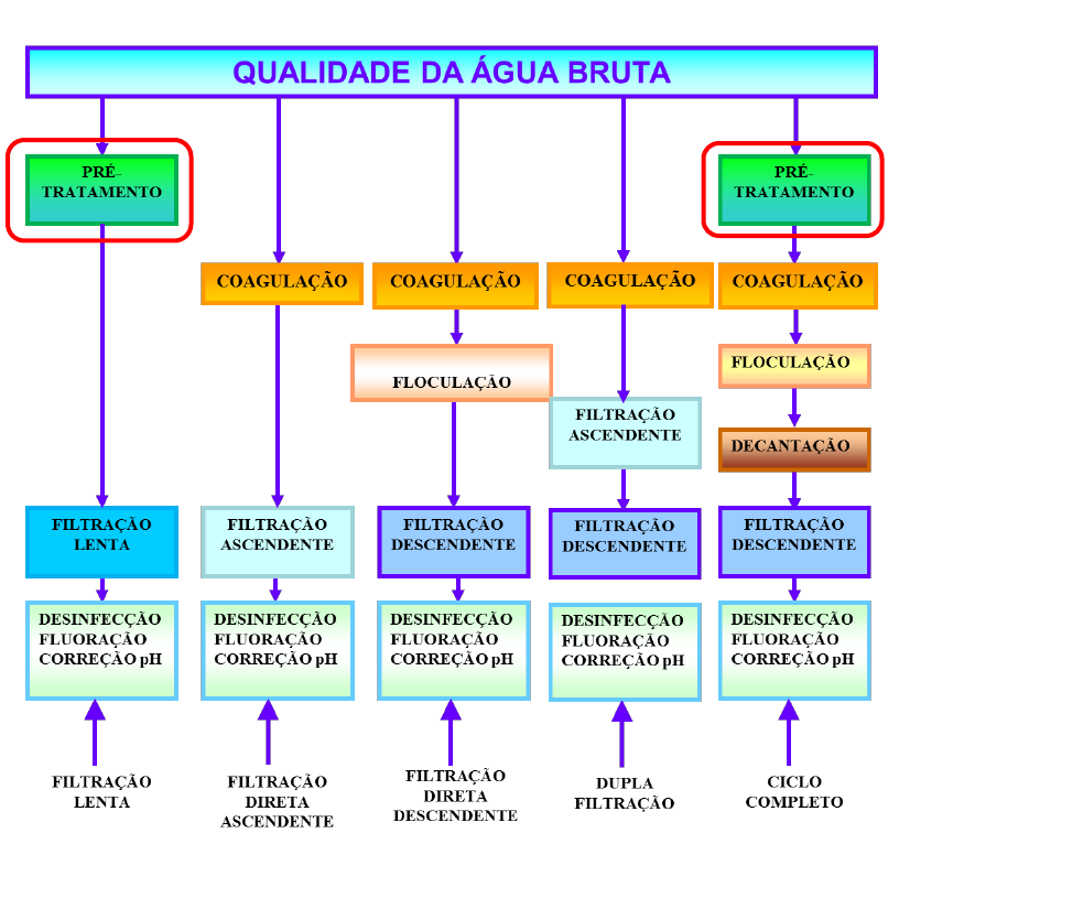 UNIVERSIDADE FEDERAL DE ALAGOAS CENTRO DE TECNOLOGIA DISCIPLINA: TRATAMENTO DE ÁGUAS DE ABASTECIMENTO ENGENHARIA AMBIENTAL E SANITÁRIA - EAMB 045 ENGENHARIA QUÍMICA - EQUI 120 ENGENHARIA CIVIL - ECIV 123 PROFESSORA: IVETE VASCONCELOS LOPES FERREIRA AULA 3 - PRÉ-TRATAMENTO PRÉ-TRATAMENTO 1. DECANTAÇÃO 2. PRÉ-FILTRAÇÃO 3. GRADEAMENTO 4. AERAÇÃO 1. PRÉ-TRATAMENTO COM DECANTAÇÃO: • Utilizado em mananciais cujas nascentes são próximos a montanhas (países andinos) épocas chuvosas picos de SS e turbidez inviabiliza o funcionamento da ETA. • Possibilita a sedimentação de partículas de tamanho da ordem de 1 mm • A água captada é conduzida a um lago com TDH > 2 meses. • Dependendo do TDH remoção considerável de bactérias, protozoários, e outros organismos. • Tem a vantagem de poder isolar a água bruta, protegendo-a contra descargas acidentais no manancial. • Entretanto, com a clarificação da água e a penetração de luz se houver nutrientes (N, P) na água, pode desencadear o processo de eutrofização. Maquete da ETA – Águas do Cávado Portugal Reservatórios de água bruta Captação 2. PRÉ-FILTRAÇÃO Pré-Filtração Dinâmica em Pedregulho • Usada para remover impurezas ou • Usada para amortecer picos de turbidez ou de Sólidos Suspensos (SS) • Substancial remoção de microrganismos coliformes totais e fecais (80 a 90%) DECANTAÇÃO Esquema de uma Unidade de Pré-filtração Dinâmica em Pedregulho Meio granular, sob o qual situa-se um sistema de drenagem, geralmente constituído por tubos perfurados. Nessa unidade, uma parcela da vazão afluente escoa superficialmente e outra infiltra, sendo coletada e encaminhada para unidades subsequentes. Previsão de uma caixa de recepção da parcela de água que escoa superficialmente, a qual deve ser recirculada. Esquemas de Diferentes Unidades de Pré-Filtração Di Bernardo et al. (1999) (Di Bernardo et al., 1999) Representação da Filtração em Múltiplas Etapas - FiME (Di Bernardo et al., 1999) 3. GRADEAMENTO Impede a entrada de suspensões grosseiras na ETA (materiais que flutuam), que causam desgastes nas bombas e outras instalações. Deve ser localizado na captação. O gradeamento é composto por grades metálicas, paralelas, de mesma espessura e igualmente espaçadas. O espaçamento entre as grades é escolhido em função do material que se deseja reter e dos equipamentos a proteger. Grades grosseiras 4 a 5 centímetros de espaçamento Grades médias 2,5 centímetros de espaçamento Grades finas de 1 a 2 centímetros Grades ultrafinas 0,3 a 1 cm Também podem ser usadas telas. Grade fixa Grade removível Grade auto-limpante Grade de Canal Basculante e Auto-Limpante - dispositivo de peneiramento auto-limpante que fica no canal e utiliza elementos de filtragem singular, projetado para remover automaticamente uma ampla gama de sólidos flotantes e suspensos de água. • as barras podem ser instaladas na vertical ou inclinadas • inclinação com a horizontal: 45 a 60º (limpeza manual) 60 a 90º, mais comum 75 a 85º (limpeza mecânica) • Velocidade de passagem nas grades: Vmáx = 1,20 m/s (vazões máximas) Vméd = 0,60 m/s (vazões médias) Vmín = 0,40 m/s 4. AERAÇÃO DEFINIÇÃO: Processo pelo qual uma fase gasosa – normalmente o ar – e a água são colocadas em contato estreito com a finalidade de transferir substâncias voláteis da água para o ar e substâncias solúveis do ar para a água, de forma a obter-se o equilíbrio satisfatório entre os teores das mesmas. OBJETIVOS: 1. Remoção de gases dissolvidos em excesso nas águas e também de substâncias voláteis, a saber: • Gás carbônico em teores elevados que torna a água agressiva; • Gás sulfídrico que provoca sabor e odor desagradáveis à água; • Substâncias aromáticas voláteis, causadoras de odor e sabor; • Excesso de cloro e metano (odor e sabor) 2. Introdução de gases na água • Oxigênio para oxidação de compostos ferrosos e manganês; • Aumento dos teores de oxigênio dissolvidos na água. APLICABILIDADE • Águas com carência (O2) ou excesso de gases (CO2, H2S – gás sulfídrico) e substâncias voláteis intercambiáveis, ferro facilmente oxidável. • Geralmente, o processo se aplica em águas que não estão em contato com o ar: • Águas subterrâneas (poços); • Águas captadas em galerias de infiltração; • Águas provenientes de partes profundas de grandes represas. FUNDAMENTAÇÃO TEÓRICA Fatores intervenientes na troca gasosa entre ar/água ou água/ar: • Material volátil • Temperatura • Pressão parcial do gás na atmosfera do aerador • Resistência específica à transferência • Turbulência • Tempo de exposição • Relação área de transferência/volume do líquido Velocidade de transferência de um gás: Co = concentração inicial do gás (t = 0) Cs = concentração de saturação Ct = concentração no tempo t KL = coeficiente de transferência A = área através da qual ocorre a transferência V = volume da água AERADOR DE CASCATA • Indicado para remoção de CO2 e substâncias voláteis • Pequenas vazões • Taxa de aplicação de 800 a 1000 m3/m2.d (cálculo sobre a área de maior projeção) • Reduções de CO2 entre 20 e 45% Determinam a concentração de saturação do gás ou o valor de equilíbrio t V A K L L eCoCsCtCsIntegrandoCtCs V A K t C . )()()( • Plataformas circulares ou retangulares • Espaçamento entre plataformas: 0,25 a 0,50 m • Altura total de queda 0,75m até 3 m Aerador de Cascata AERADOR DE TABULEIRO • Mais indicados para adição de O2 e oxidação de compostos ferrosos ou manganosos. • Três a nove tabuleiros ou bandejas distanciadas entre si de 0,30 a 0,75 m • Camada de coque (carvão) que oferece superfície de contato e concorre para acelerar as reações de oxidação. • Remoção de até 90% de CO2 • Taxa de aplicação: 540 a 1630 m3/m2.d. Aerador de Tabuleiro Aerador de Tabuleiro AE