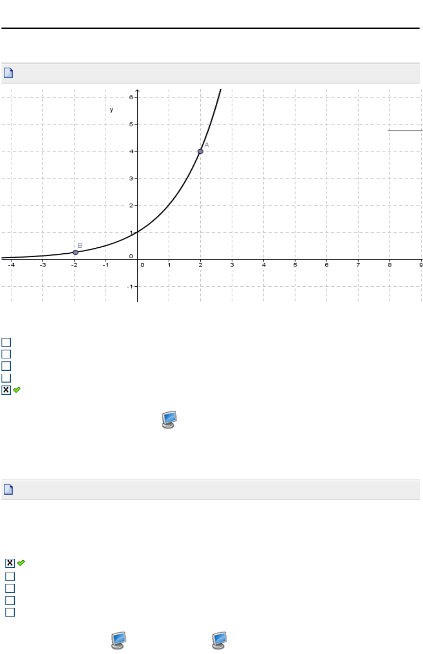 Disciplina: CEL0683 - INTRODUÇÃO AO CÁLCULO 201801065152 1a Questão Os pontos A e B pertencem a uma função: Modular. Trigonométrica. de Segundo Grau. de Primeiro Grau. Exponencial. Gabarito Coment. 2a Questão Um alimento mal conservado apresenta uma bactéria que se reproduz segundo a lei f( t ) = 100.4t, onde t é o número de horas e f( t ) é o número de bactérias. Determine o número de bactérias após 3 horas. 6400 1300. 1288. 12200. 1200. Gabarito Coment. Gabarito Coment. 3a Questão Em uma pesquisa de laboratório, verificou-se que, em certa cultura de bactérias, o seu número variava segundo a lei N(t)=500.2t, na qual t é o tempo em horas. Qual o número de bactérias após 4 h? 80.000 4000 40000 400 8000 4a Questão Num centro de pesquisa em Biologia, os cientistias estão estudando o comportamento de uma cultura de bactérias. Após algumas simulações, verificou-se que o crescimento dessa cultura obdece à relação f(t)=k.2α.t onde f(t) é o número de bactérias no tempo t (t≥0) medido em horas e k e α são constantes reais positivas. Se o número inicial de bactérias é o valor de f(0) e esse número duplica a cada 4 horas, após 12 horas, é correto afirmar que o número de bactérias será: Seis vezes o valor inicial Oito vezes o valor inicial Três vezes o valor inicial Quatro vezes o valor inicial Dez vezes o valor inicial Explicação: A quantidade de bitcoins dobrou a cada 4 horas 5a Questão Em uma pesquisa de laboratório, verificou-se que, em certa cultura de bactérias, o seu número variava segundo a lei N(t)=300.3t, na qual t é o tempo em horas. Qual o número de bactérias após 4 h? 32400 2700 27.000 27500 24300 Gabarito Coment. 6a Questão Por meio de uma pesquisa de laboratório, verificou-se que, em certa cultura de bactérias, o seu número variava segundo a lei B(t)=100.2t, na qual t é o tempo em horas. Qual o número de bactérias após 5 hora? 10.000 32.000 320.000 3.200 1.000 Gabarito Coment. 7a Questão O gráfico abaixo é um gráfico do tipo f(x)= ax sobre essa função é correto afirmar: a =1 a>0 a =0 0<a<="" td=""></a Impossível informar 8a Questão Verificou-se que, por meio de uma pesquisa de laboratório, em certa cultura de bactérias, o seu número variava segundo a lei B(t)=200.2t, na qual t é o tempo em horas. Qual o número de bactérias após 3 horas? 12.000 1.200 16.000 160.000 1.600