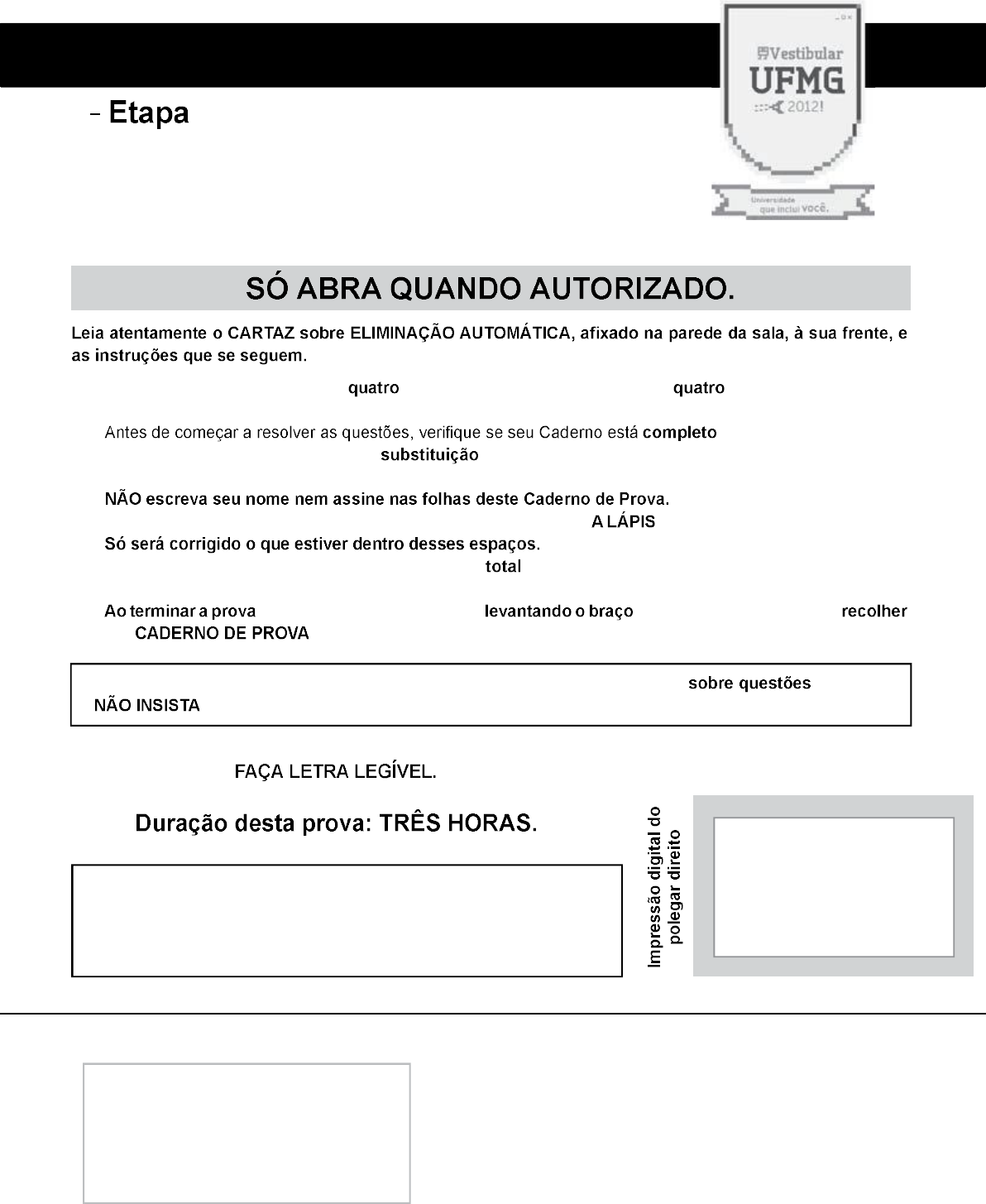 1 - Este Caderno de Prova contém questões, que ocupam um total de páginas, numeradas de 3 a 6. . Caso haja algum problema, solicite a deste Caderno. 2 - Esta prova vale 80 pontos – ou seja, 20 pontos por questão. 3 - 4 - Leia cuidadosamente cada questão proposta e escreva a resposta, , nos espaços correspondentes. NÃO há, porém, obrigatoriedade de preenchimento desses espaços. 5 - Não escreva nos espaços reservados à correção. 6 - , chame a atenção do Aplicador, . Ele, então, irá até você para seu . COLE AQUI A ETIQUETA U N I V E R S I D A D E F E D E R A L D E M I N A S G E R A I S FILOSOFIA 2a D I G I T A L D I G I T A L D I G I T A L ATENÇÃO: Os Aplicadores NÃO estão autorizados a dar quaisquer explicações de provas. , pois, em pedir-lhes ajuda. ATENÇÃO: Terminada a prova, recolha seus objetos, deixe a sala e, em seguida, o prédio. A partir do momento em que sair da sala e até estar fora do prédio, continuam válidas as proibições ao uso de aparelhos eletrônicos e celulares, bem como não lhe é mais permitido o uso dos sanitários. 3 a Leia este trecho: Os deuses de fato existem e é evidente o conhecimento que temos deles; já a imagem que deles faz a maioria das pessoas, essa não existe: as pessoas não costumam preservar a noção que têm dos deuses. Ímpio não é quem rejeita os deuses em que a maioria crê, mas sim quem atribui aos deuses os falsos juízos dessa maioria. Com efeito, os juízos do povo a respeito dos deuses não se baseiam em noções inatas, mas em opiniões falsas. Daí a crença de que eles causam os maiores malefícios aos maus e os maiores benefícios aos bons. Irmanados pelas suas próprias virtudes, eles só aceitam a convivência com os seus semelhantes e consideram estranho tudo que seja diferente deles. EPICURO. Carta sobre a felicidade (a Meneceu). Trad. de A. Lorencini e E. del Carratore. São Paulo: Editora da UNESP, 2002. p. 25-27. Com base na leitura desse trecho e considerando outros elementos contidos na obra citada, _____________________________________________________________________________ _____________________________________________________________________________ _____________________________________________________________________________ _____________________________________________________________________________ _____________________________________________________________________________ _____________________________________________________________________________ _____________________________________________________________________________ _____________________________________________________________________________ _____________________________________________________________________________ _____________________________________________________________________________ 4 a Leia este trecho: Eis por que, talvez, daí nós não concluamos mal se dissermos que a Física, a Astronomia, a Medicina, e todas as outras ciências dependentes da consideração das coisas compostas são muito duvidosas e incertas; mas que a Aritmética, a Geometria, e as outras ciências desta natureza, que não tratam senão de coisas muito simples e muito gerais, sem cuidarem muito em se elas existem ou não na natureza, contêm alguma coisa de certo e indubitável. Pois, quer eu esteja acordado, quer esteja dormindo, dois mais três formarão sempre o número cinco e o quadrado nunca terá mais do que quatro lados; e não parece possível que verdades tão patentes possam ser suspeitas de alguma falsidade ou incerteza. DESCARTES. Meditações, Meditação Primeira. Trad. de J. Guinsburg e Bento Prado Júnior. São Paulo: Editora Abril Cultural, 1983. p. 87. (Os Pensadores) que, à primeira vista, resistem à sua resolução de se desfazer de todas as antigas convicções, submetendo-as ao preceito metódico de tomar por falso tudo o que não seja absolutamente indubitável. Por meio de uma suposição, entretanto, Descartes será capaz de colocar em dúvida também as verdades matemáticas. essa suposição. _____________________________________________________________________________ _____________________________________________________________________________ tal suposição é necessária para se estender a dúvida ao conhecimento matemático. _____________________________________________________________________________ _____________________________________________________________________________ _____________________________________________________________________________ _____________________________________________________________________________ _____________________________________________________________________________ _____________________________________________________________________________ _____________________________________________________________________________ 5 a Leia este trecho: e o nascimento, mas simultaneamente os introduziram em um mundo. Eles assumem na educação a responsabilidade, ao mesmo tempo, pela vida e desenvolvimento da criança e pela continuidade do mundo. ARENDT, Hannah. A crise na educação. In: Entre o passado e o futuro. Trad. de Mauro W. Barbosa. São Paulo: Editora Perspectiva, 2000. p. 235. responsabilidade. , segundo a autora, os homens modernos não têm sido capazes de assumir integralmente essa dupla responsabilidade posta pela educação. _____________________________________________________________________________ _____________________________________________________________________________ _____________________________________________________________________________ _____________________________________________________________________________ _____________________________________________________________________________ _____________________________________________________________________________ _____________________________________________________________________________ _____________________________________________________________________________ ______________