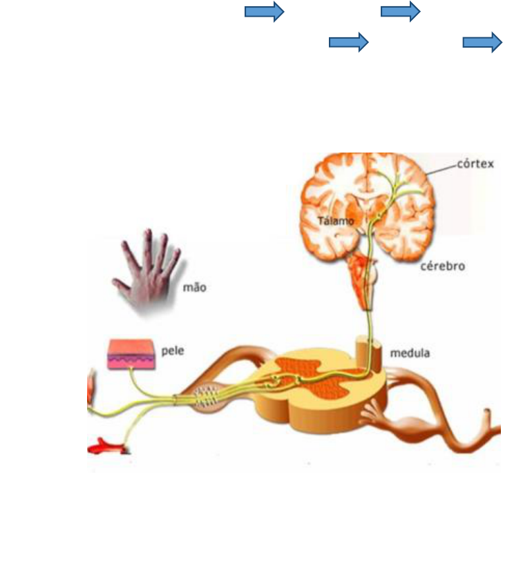 Fisiologia da Dor Organização do Sistema Sensorial . Sinais ambientais do meio externo Via Aferente Processador SNC . Detectação do sinal por receptores específicos Via Eferente Promover respostas comportamentais e ajustes homeostáticos essenciais à sobrevivência X Via eferente = Resposta a dor / Via aferente = receptores específicos Elementos Essenciais ao Processamento da Informação Sensorial Somestesia: Sensações Somáticas X é a capacidade que homens e animais têm de receber informações sobre as diferentes partes do seu corpo. Tato/ Pressão/ Temperatura/ Dor Tipos de Dor . Fisiológica – Choque elétrico, dor mais rápida . Patológico – Doença, dor mais lenta, por mais tempo Postura do Profissional da Saúde em Relação a Dor . Dor como sintoma para investigação semiológica . Promoção de medidas para alívio eficaz da dor NOCICEPÇÃO VS DOR Nocicepção é uma sensação (como a visual, auditiva, gustativa, etc – INTERPRETAÇÃO DA DOR) e dor é a percepção desta sensação (sentimento – experiência de outros sistemas). A nocicepção pode não ser percebida se a atenção estiver voltada para outro problema. Na guerra, um ferimento doloroso pode não doer, já que a atenção (importante componente da percepção) está voltada para o inimigo. X A nocicepçao é a percepção do que é nocivo ao corpo, do que pode nos machucar. É o sistema que identifica as ameças do corpo Impulso doloroso é recebido pelos nociceptores e transfromado em portencial de ação CONDUÇÃO Impulso é conduzido até a coluna posterior da medula espinhal PERCEPÇÃO No CDME o impulso é modulado antes de chegar a níveis superiores do SNC Impulso é integrado e percebido como dor Modulação da Dor . Modulação Negativa Sistema opióide interno/ Teoria do portão da dor (a própria medula pode modular a dor) . Modulação Positiva Glutamato (neurotransmissores excitatórios)/ Sistemas de amplificação/ Plasticidade neural X Noroceptores são neurônios ligados as terminações nervosas DETECTAÇÃO DE SINAIS CLASSIFICAÇÃO FISIOLÓGICA DOS RECEPTORES SENSORIAIS QUIMIORRECEPTORES - Detectam estímulos químicos: PALADAR, OLFATO, GLICOSE, O2, ETC. TERMORRECEPTORES - Detectam estímulos de natureza térmica: FRIO E CALOR. MECANORRECEPTORES - Respondem à estímulos mecânicos: TATO , PRESSÃO, VIBRAÇÃO, AUDIÇÃO. FOTORRECEPTORES - (CONES E BASTONETES) – VISÃO. OSMORRECEPTORES – DETECTAM A OSMOLARIDADE DO PLASMA. TIPOS DE NOCICEPTORES ( Para sentir dor) MECANORRECEPTORES – terminações nervosas das fibras A𝛿. TERMORRECEPTORES – terminações nervosas das fibras A𝛿; sensíveis a estímulos térmicos (>45ºC ou <5ºC); POLIMODAIS – terminações nervosas das fibras C (MAIORIA); sensíveis a estímulos térmicos, mecânicos e químicos. NOCICEPTORES SILENTES – ativados só na presença de sensibilização química. CARACTERÍSTICAS DOS NOCICEPTORES TERMINAÇÕES NERVOSAS LIVRES – fibras A𝛿 (delta) e C (fibras rápidas - mielinizadas - e fibras lentas - amielinizadas). ALTO LIMIAR – podem ser modulados positivo ou negativamente. ESTIMULADOS POR VÁRIAS MODALIDADES – polimodais em variedade de estímulos Podem ter diferente canais ionônicos para os noroceptores LIMIAR DO NOCICEPTOR ALODINIA E HIPERALGESIA X Alodinia – Dor provocada por um estímulo que normalmente não é doloroso (diminuem o limiar da dor) e a Hiperalgia – Dor provado por um estímulo que normalmente é doloroso como estímulos mecânicos ou térmicos. X Alodinia – Os noroceptores diminuem o seu limiar da dor MODULADORES POSITIVOS DA DOR ATIVAÇÃO DIRETA DE NOCICEPTORES E DESPOLARIZAÇÃO - Serotonina (excit. ou inibit.)/ Bradicinina/ Ácidos (ocorre a diminuição do limiar) REDUZEM O LIMIAR DE EXCITABILIDADE DOS NOCICEPTORE FACILITANDO A TRANSMISSÃO DO SINAL - PGE2/ Interleucinas/ Leucotrienos Regulação da Hiperalgia X Regulação com fármacos (Glicocorticóides – atua na via da fosfolipase e AINES - cox) Ativação dos nociceptores X Abaixando o limiar da dor INIBIÇÃO DE NOCICEPTORES Modulação Positiva Protaglandinas/ Leucotrienos/Bradicinina/ Ácidos Modulação Negativa Opióides/ Endógenos/ Canabióides INTENSIDADE DA DOR PAPEL DA MEDUL A ESPINHAL NA DOR . Transmitir a sensação dolorosa para o tálamo . Modular a transmissão da dor (portão da dor- interneurônios na medula que podem inibir a dor ou projetar) . Fornecer uma resposta efetora a dor (reflexos medulares- arco reflexo) Transmissão da dor PROJEÇÃO SUPRA-ESPINHAL DA DOR Componentes da Dor LOCALIZAÇÃO (percepção) RÁPIDA (fibras alfa)/ Sistema neoespinotalâmico. AFETIVO MOTIVACIONAL (LENTA) Sistema paleoespinotalâmico. Sistema espinorreticular. MODULAÇÃO ESPINHAL DA DOR . Neutransmissores Exitatórios MEDICAMENTO Quetamina (anestésico) pode conversar com um receptor (NMDA), inativando o receptor de conectar com glutamato, inibindo a trasmissão da dor. PRINCIPAL MECANISMO DE AÇÃO: BLOQUEIO DO RECEPTOR NMDA GLUTAMATO Dor crônica é muita resposta de um receptor, como NMDA. Resposta exacerbada, podendo ter maiores quantidade de receptores. Consegue ativar vários receptores juntos, MET é metabotrópico que estimulado pode levar a liberação de cálcio intracelular, ativando a PKC, óxidonitrosintase. DOR CRÔNICA – SENSIBILIDADE A GLUTAMATO, tendo mais expressão de NMDA no corpo. Feed-Back positivo na dor X Via de sinalização nova SENSIBILIZAÇÃO CENTRAL X Medicamentos nessa via interferem o aumento de cálcio, diminuindo a dor, aumentando o limiar da dor. ALTERAÇÕES ESTRUTURAIS E FUNCIONAIS QUE LEVAM AO AUMENTO DA TRANSMISSÃO DA DOR Plasticidade Neural . Aumento do número de receptores NMDA para o glutamato . Inserção de receptores AMPA em sinapses silientes . Aumento de receptores metabotrópicos . Aumento de expressão de PTNK – sinalizam para os eventos acontecerem (FOTO ACIMA) MODULAÇÃO INIBITÓRIA DA DOR Sistema Opióide Endógeno ELEMENTO PRÉ-SINÁ