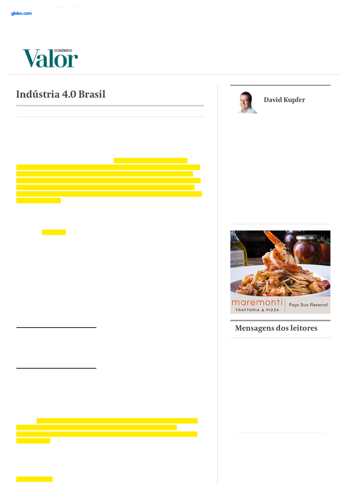 Para surfar nessa onda é preciso partir do diagnóstico de que boa parte da indústria ainda está no estágio 2.0 08/08/2016 às 05h00 Indústria 4.0 Brasil De alguns anos para cá vem ganhando crescente visibilidade conceitos como "Manufatura Avançada" e "Indústria 4.0". O conceito de Manufatura Avançada entrou em evidência após ancorar um plano estratégico publicado pelo governo americano (A National Strategic Plan for Advanced Manufacturing, Executive Office of the President and National Science and Technology Council, fevereiro de 2012). Já Indústria 4.0, como prefere denominar o governo alemão, ganhou vida como uma iniciativa conjunta do Ministério de Economia e Energia com empresas líderes, universidades e centros de pesquisa do país quando também em 2012 lançou as bases de um ousado programa de reconversão tecnológica da indústria germânica com essa marca (The Vision: Industrie 4.0, Federal Ministry for Economic Affairs and Energy, 2012). Ambos os termos traduzem visões da indústria em um futuro próximo no qual fábricas inteligentes usam tecnologias de informação e comunicação para digitalizar os processos industriais em direção a níveis inimagináveis de eficiência, qualidade e "customização". Manufatura Avançada ou Indústriaqualidade 4.0 nada mais são do que um elenco de técnicas que dependem do uso coordenado de informação, automação, computação, software, sensoriamento e conexão em rede. Conjugadas, essas técnicas proporcionam inovações em robótica e eletrônica embarcada, que propiciam um super-barateamento da automação flexível; em manufatura aditiva, que estende as fronteiras de descentralização e fragmentação da produção; e, ainda, em computação em nuvem, internet das coisas, big data e interfaceamento, que alargam os horizontes dos experimentos de inteligência artificial. O resultado é um salto evolutivo nas formas de organização da produção, em que se aprofunda sobremaneira a capacidade de interação M2M (máquina-máquina) sem a intervenção humana. No Brasil, o debate sobre a Indústria 4.0 ainda é muito tímido, restrito a alguns seminários aqui e ali e a umas poucas iniciativas de governo ou associações de classe, o que em si já é revelador da pequena prioridade que vem sendo conferida ao tema no país. Mais grave, nesse estreito espaço de debates muitas vezes predomina um enfoque no qual a manufatura avançada é vista como uma tecnologia disruptiva, algo como o vetor de uma nova Revolução Industrial como foram, a seus respectivos tempos, a máquina a vapor na 1ª, a energia elétrica e a química na 2ª ou os semicondutores e a informática na 3ª Revolução Industrial. No entanto, não há razão para se acreditar que esse seja o entendimento mais correto. A Indústria 4.0 é muito mais um elenco de inovações incrementais que decorrem da incorporação e, principalmente, da integração de tecnologias já disponíveis ou emergentes e que, portanto, já fazem parte do estado da arte. Assim, seus desafios estão muito mais no plano da escalagem e massificação do uso do que no desenvolvimento inovativo propriamente dito. Por isso, a melhor analogia para abordar a Indústria 4.0 é com o que nos anos 1980 se chamou de pós-fordismo, toyotismo, produção enxuta ou qualidade total. São tecnologias organizacionais que não dizem respeito aoqualidade que se produz e sim a forma como se produz Como tal embora os fóruns de Por David Kupfer David Kupfer é professor do Instituto de Economia da Universidade Federal do Rio de Janeiro (UFRJ), coordenador do Grupo de Indústria e Competitividade (GIC-IE/UFRJ) e membro do Conselho Superior de Economia da Fiesp. Doutor em economia da indústria e tecnologia pela UFRJ, Kupfer é autor de artigos sobre inovação, competitividade e concorrência na indústria brasileira, além de coautor do livro “Made in Brazil” e organizador de “Economia Industrial: Fundamentos Teóricos e Práticas no Brasil”. Fale com David Kupfer David Kupfer Mensagens dos leitores Trump O cerco judicial aos auxiliares de Trump abre uma brecha que pode colocar em perigo o mandato do presidente dos Estados Unidos. Uma vitória dos democratas, nas eleições de novembro, permitiria o início de um processo de impeachment após a posse da nova legislatura em janeiro de 2019. 27/08/2018 às 05h00 - Luiz Roberto da Costa Jr - Desespero O eleitor fluminense está numa situação de quase desespero diante dos nomes apresentados para a disputa do governo estadual. Por maiores que sejam as recomendações estimulando-o a estudar com atenção o histórico de cada candidato, a fim g1 ge gshow vídeos que se produz e, sim, a forma como se produz. Como tal, embora os fóruns de debate sejam frequentemente dominados pela ênfase no lado da produção dessas inovações, a Indústria 4.0 é, fundamentalmente, uma questão ligada à difusão dessas novas técnicas, que dizer, algo que está do lado do uso da tecnologia. Sendo essa a chave analítica, é importante ter claro que as oportunidades abertas pelos preceitos da Indústria 4.0 são transversais, abarcando todo o tecido produtivo e não somente as indústrias de ponta (de alta tecnologia). Não é a toa que atividades tradicionais como a indústria têxtil ou mesmo a agricultura têm sido tão impactadas pela introdução desses preceitos. No entanto, se o caráter transversal dessa nova onda acena com múltiplas oportunidades, o desafio brasileiro para surfá-la precisa ser enfrentado a partir do diagnóstico de que boa parte da indústria nacional ainda está no estágio 2.0, tendo conseguido incorporar as técnicas relacionadas à produção enxuta de 30 anos atrás mas apresentando importantes defasagens em tecnologias de informação e comunicação, que caracterizam o estágio 3.0. Significa isso que será necessário, mais uma vez, queimar etapas, resultado que dificilmente será alcançado sem uma extensa construção 