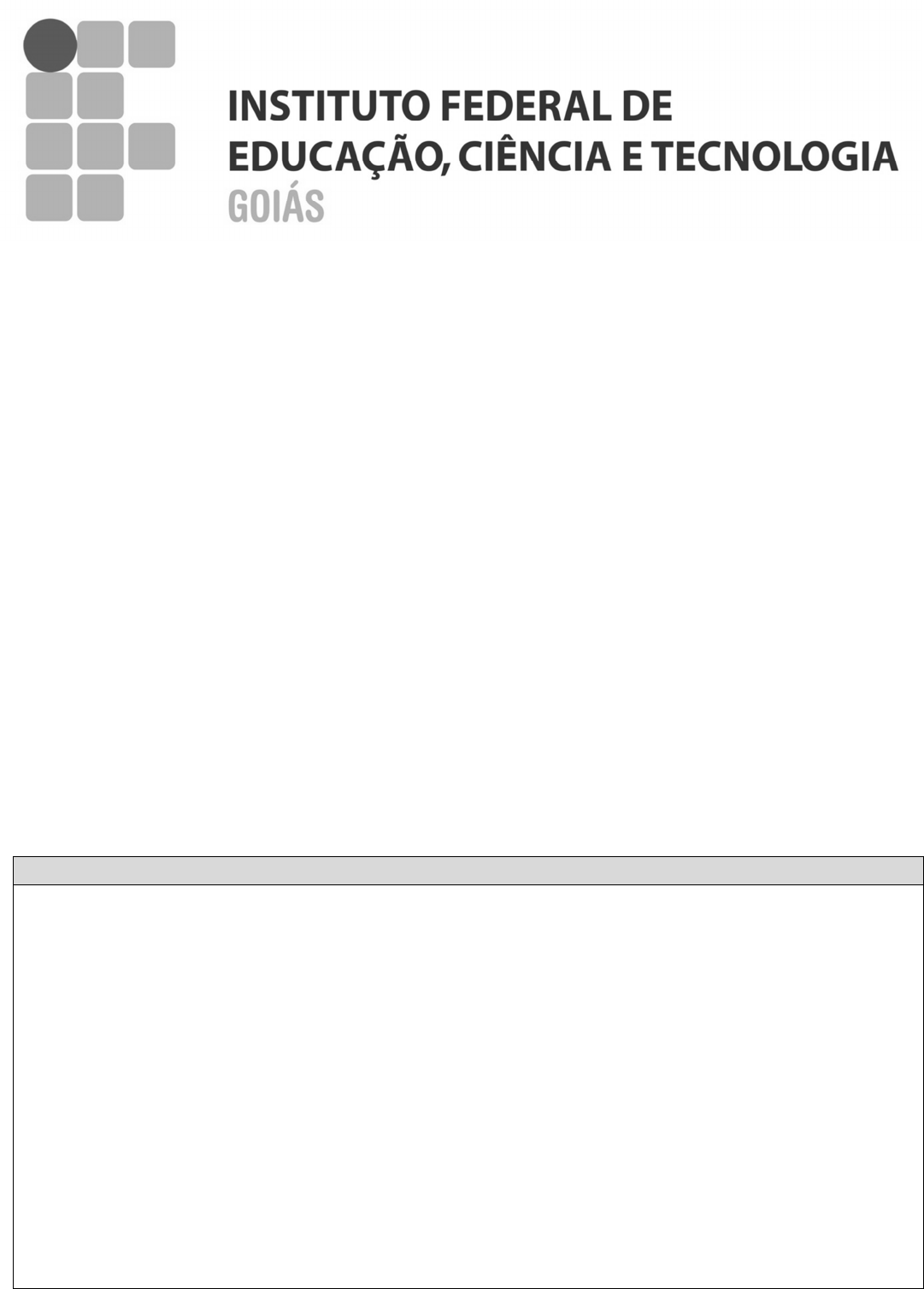 VESTIBULAR 2015/1 CADERNO DE PROVAS LEIA COM ATENÇÃO AS INSTRUÇÕES A SEGUIR: • Verifique se este Caderno de Provas contém 64 (sessenta e quatro) questões objetivas e se estas estão devidamente ordenadas (01 a 64). Para cada questão, há uma proposição e cinco alternativas (a, b, c, d, e e). Caso este caderno esteja incompleto ou tenha imperfeições gráficas, comunique ao fiscal para que sejam tomadas as devidas providências. • As respostas das questões objetivas deverão ser transferidas para o Cartão Resposta. Lembre-se de que seu Cartão Resposta é nominal e insubstituível. Portanto, evite rasuras, emendas ou dobraduras e utilize somente caneta esferográfica de tinta preta ou azul para seu preenchimento. • Ao passar as alternativas escolhidas para o Cartão Resposta, observe bem o número da questão e a alternativa correspondente à resposta escolhida. Somente uma alternativa deverá ser marcada como sendo a resposta correta de acordo com a respectiva proposição. Atenção: não haverá pontuação para questões sem resposta ou com dupla marcação. • No Cartão Resposta, preencha todo o espaço correspondente à alternativa escolhida conforme indicação no próprio cartão, tendo o cuidado de não ultrapassar os limites e nem fazer borrões. • Assine o Cartão Resposta no local indicado, não ultrapassando os limites demarcados. • É proibido utilizar, durante a realização das provas, qualquer aparelho eletrônico (bip, telefone celular, relógio, walkman, discman, mp3, Ipod, agenda eletrônica, calculadora, notebook, palmtop, receptor, gravador ou outros equipamentos similares). Também não será permitido consulta a livros, revistas, folhetos e anotações. • A duração das provas é de 05 (cinco) horas, já incluído o tempo destinado à identificação do candidato, ao preenchimento do Cartão Resposta e à transcrição da Redação para a Folha de Resposta da Redação. • Os três últimos candidatos só poderão deixar a sala juntos e após assinarem a ata de realização das provas. INSTITUTO FEDERAL DE EDUCAÇÃO, CIÊNCIA E TECNOLOGIA DE GOIÁS VESTIBULAR 2015/1 INSTITUTO FEDERAL DE EDUCAÇÃO, CIÊNCIA E TECNOLOGIA DE GOIÁS VESTIBULAR 2015/1 1 LÍNGUA PORTUGUESA E LITERATURA BRASILEIRA Leia o texto 01 e responda às questões 01 e 02. Texto 01 Oração do Milho Cora Coralina Senhor, nada valho. Sou a planta humilde dos quintais pequenos e das lavouras pobres. Meu grão, perdido por acaso, nasce e cresce na terra descuidada. Ponho folhas e haste, e, se me ajudardes, Senhor, mesmo planta de acaso, solitária, dou espigas e devolvo em muitos grãos o grão perdido inicial, salvo por milagre, que a terra fecundou. Sou a planta primária da lavoura. Não me pertence a hierarquia tradicional do trigo, de mim não se faz o pão alvo universal. O justo não me consagrou Pão de Vida nem lugar me foi dado nos altares. Sou apenas o alimento forte e substancial dos que trabalham a terra, alimento de rústicos e animais de jugo. Quando os deuses da Hélade corriam pelos bosques, coroados de rosas e de espigas, e os hebreus iam em longas caravanas buscar na terra do Egito o trigo dos faraós, quando Rute respigava cantando nas searas de Booz e Jesus abençoava os trigais maduros, eu era apenas o bró nativo das tabas ameríndias. Fui o angu pesado e constante do escravo na exaustão do eito. Sou a broa grosseira e modesta do pequeno sitiante. Sou a farinha econômica do proprietário, sou a polenta do imigrante e a amiga dos que começam a vida em terra estranha. Alimento de porcos e do triste mu de carga, o que me planta não levanta comércio, nem avantaja dinheiro. Sou apenas a fartura generosa e despreocupada dos paióis. Sou o cocho abastecido donde rumina o gado. Sou o canto festivo dos galos na glória do dia que amanhece. Sou o cacarejo alegre das poedeiras à volta dos ninhos. Sou a pobreza vegetal agradecida a vós, Senhor, que me fizestes necessário e humilde. Sou o milho! Disponível em: <www.plataforma.paraapoesia.nom.br/esther_ensaios.htm> Acesso em: 07 Nov. 2014. QUESTÃO 01 Observe os seguintes versos do poema: “Meu grão, perdido por acaso, nasce e cresce na terra descuidada”. O trecho do verso que está entre vírgulas apresenta a mesma função sintática registrada em a) “Ó noite, ó minha nega acesa de letreiros”. b) “Eu sou de três jeitos: alegre, triste e mofina”. c) “Vem, morena, ouvir comigo esta cantiga”. d) “Senhor, nada valho”. e) “Ouça-me bem, amor preste atenção, o mundo é um moinho”. QUESTÃO 02 Cora Coralina faz da poesia o seu instrumento de denúncia das dificuldades vividas. Sobre os versos: “O justo não me consagrou Pão de Vida nem lugar me foi dado nos altares”, é correto afirmar que a) Cora usa o “Pão da Vida” como símbolo de sua postura humilde face aos dissabores enfrentados após seu retorno à cidade de Goiás Velho, de onde havia fugido para se casar. b) o trigo, alimento nobre e do qual se faz o pão, representa os bons momentos vividos pela poeta ao longo de sua vida e remete aos momentos de fartura e abundância. c) os termos “O justo”, “Pão da Vida” e “altares” reforçam a distância física e espiritual entre aqueles tidos como “trigos” e “milhos” da sociedade. d) o Pão da Vida representa o alimento nobre, servido à mesa daqueles mais abastados e provenientes das altas classes sociais, em oposição à broa, alimento rústico do sitiante. e) os termos “O justo” e “Pão da Vida” não representam a experiência religiosa na vida da poeta. Considere o texto 02 e responda às questões 03 e 04. Texto 02 Disponível em: <www.50emais.com.br>. Acesso em: 01 Nov. 2014. INSTITUTO FEDERAL DE EDUCAÇÃO, CIÊNCIA E TECNOLOGIA DE GOIÁS VESTIBULAR 2015/1 2 QUESTÃO 03 No primeiro e segundo quadrinhos verifica-se o uso repetido da palavra “que”. Observe o trecho sublinhado e assinale a alternativa correta em relação ao uso do pri