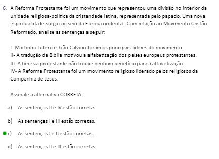 21:31 24 VOLTAR Questão 6 O protestantismo se desenvolveu com bastante força na cidade de Genebra, sob o comando de João Calvino. O calvinismo acab...