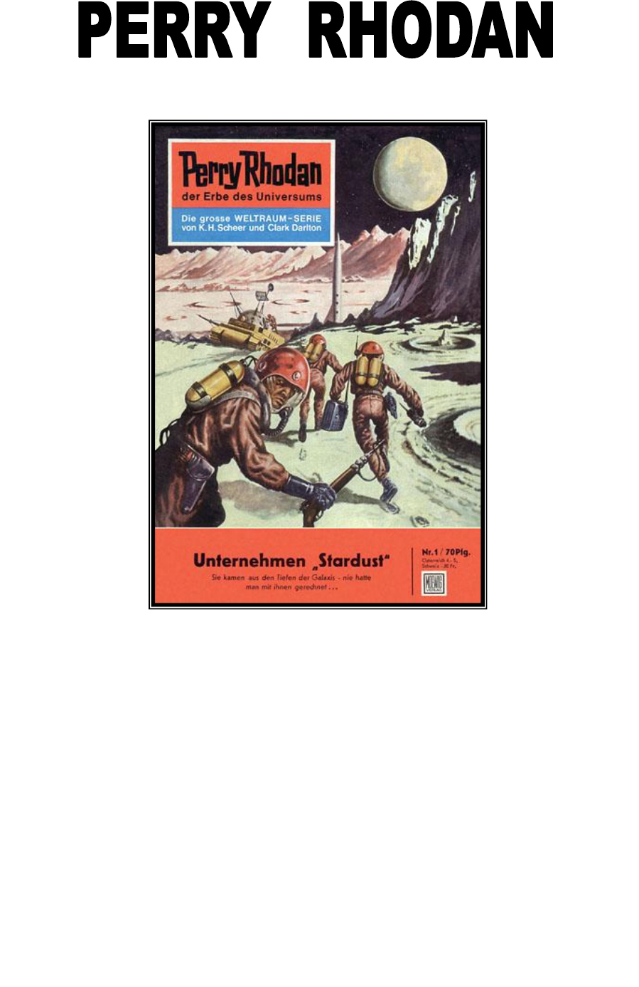 (P-001) Missão Stardust Autor K. H. Scheer Digitalização Vitório Revisão Arlindo_San � O major Perry Rhodan, comandante da espaçonave Stardust, descobriu muito mais do que se supunha pudesse existir na Lua — ele veio a ser o primeiro homem a entrar em contato com outra raça. Os arcônidas, provenientes de uma estrela distante e possuidores de um nível tão elevado de conhecimentos científicos e filosóficos que, perto deles, a Humanidade ainda estava centenas de milhares de anos atrasada. Mas estes alienígenas, enormemente poderosos, recusavam-se a cooperar com os terrestres a menos que Perry Rhodan saísse vencedor do teste mais difícil a que um ser humano jamais se submetera... = = = = = = = = = = Personagens Principais = = = = = = = = = = Major Perry Rhodan — Comandante da nave Stardust. Capitão Reginald Bell — Engenheiro eletrônico da Stardust. Capitão Clark G. Fletcher — Astrônomo da Stardust. Tenente-médico Eric Manoli — Médico de bordo da Stardust. General Lesley Pounder — Chefe da Força Espacial dos Estados Unidos. Dr. Fleet — Médico-chefe da Força Espacial dos Estados Unidos. Allan D. Mercant — Chefe do Conselho Internacional de defesa. Crest — Cientista-chefe da expedição organizada por uma raça desconhecida. Thora — Comandante da nave dos arcônidas. Professor Lehmann — Diretor da Academia de Tecnologia Espacial da Califórnia e pai espiritual da Stardust. Aconselhamos o leitor a começar o livro pela segunda parte, onde iniciam propriamente as aventuras espaciais de Perry Rhodan. Na primeira parte só há uma viagem detalhada à Lua, inteiramente fictícia. PRIMEIRA PARTE A Partida I No prédio principal da Central de Nevada Fields, que abrigava o centro nervoso eletrônico da base espacial, reinava a atividade febril e aparentemente inútil que caracteriza os preparativos finais da partida de uma espaçonave. A única finalidade de todas as operações, dos avisos transmitidos pelos alto-falantes e dos cálculos detalhados era controlar mais uma vez os resultados que de há muito tinham sido apurados. Os engenheiros que formavam a equipe responsável pela parte eletrônica da nave verificaram os inúmeros circuitos do computador astro-eletrônico, cuja finalidade consistia em proceder a eventuais correções de curso. Realizaram, também, uma revisão no dispositivo automático B, um robô especial incumbido do controle da decolagem e da separação dos estágios e, ainda, do comando remoto. O computador eletrônico C, que era o robô coordenador dos ecos de radar recebidos, e ainda a estação de comando das câmaras especiais teleguiadas do dispositivo de infralocalização, apresentava, como já se esperava, funcionamento perfeito. Os últimos cálculos de verificação, realizados através de computadores eletrônicos, estavam exatos até a décima casa decimal. O engenheiro-chefe, responsável pela manutenção, comunicou que os dois dispositivos automáticos principais — dispositivos eletrônicos da decolagem e do controle remoto — estavam em perfeitas condições de funcionamento. Fez-se tudo aquilo que já tinha sido feito em várias decolagens anteriores, numa rotina altamente especializada. Só uma pequena nuança de nervosismo poderia ter revelado a um observador experimentado que desta vez não se tratava do lançamento de uma espaçonave qualquer. Os soldados, fortemente armados, que se encontravam na entrada norte do prédio principal, prestaram continência com um gesto displicente. O general Lesley Pounder, comandante da Base Aérea de Nevada Fields e chefe do Departamento de Pesquisas Espaciais, não fazia muita questão de que em oportunidades como esta a etiqueta militar fosse estritamente observada. Ficava satisfeito em saber que os homens estavam bem atentos nos seus postos. Como havia sido planejado, o general Pounder entrou na sala principal do comando à meia-noite e quinze em ponto. Estava acompanhado do chefe do Estado Maior, o coronel Maurice e do diretor científico do projeto, o professor F. Lehmann, que se tornara famoso principalmente como diretor da Academia de Tecnologia Espacial da Califórnia. A chegada dos personagens principais não causou a menor interrupção nas atividades que se desenvolviam no interior da sala. O general tinha chegado; era só isso. Lesley Pounder, um homem quadrado no aspecto e no caráter, famoso entre os colaboradores, e difamado em Washington pela intransigência com que insistia no cumprimento das suas exigências, aproximou-se da enorme tela de controle. As imagens, que na sala de imprensa apareciam pouco nítidas, deslizavam, aqui, em tamanho natural na tela ligeiramente abaulada. Pounder apoiou as mãos no encosto da poltrona giratória e permaneceu imóvel por alguns instantes. O professor Lehmann segurou os óculos sem aro com um gesto nervoso. Alguma coisa parecia arder dentro dele. Na sua opinião, havia coisas muito mais importantes para fazer do que voltar a inspecionar, em companhia do comandante das operações, coisas de importância secundária que já tinham sido controladas. Lançou um olhar de súplica ao chefe do Estado-Maior. O coronel Maurice ergueu os ombros de modo quase imperceptível. Tinham que aguardar. Ao que parecia, Pounder ainda tinha algumas perguntas a fazer, embora estivesse mais bem informado que muitos dos membros da sua equipe de cientistas. — Isto é belo! De uma beleza empolgante! — disse Pounder em voz baixa, enquanto olhava para a tela. — Alguma coisa dentro de mim vive perguntando se não estamos indo longe demais. Os peritos do Departamento de Navegação Espacial continuam a achar que é rematada loucura arriscar o lançamento da Terra. Não é apenas a resistência do ar que temos de vencer. Além disso, devemos atingir a velocidade que resultaria, automaticamente, de um lançamento a partir da plataforma espacial. São exatamente 7,08 quilômetros por segundo, ou seja, 25.400 quilômetros por hora. — É a veloc