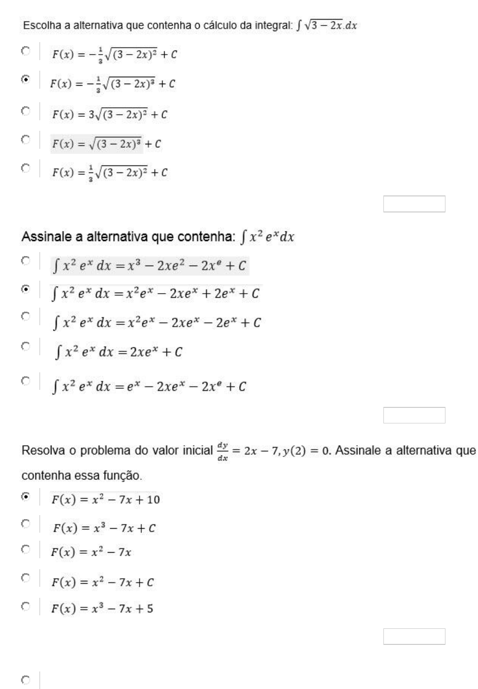PERGUNTA 1 a. b. c. d. e. 0,175 pontos PERGUNTA 2 a. b. c. d. e. 0,175 pontos PERGUNTA 3 a. b. c. d. e. 0,175 pontos PERGUNTA 4 Escolha a alternativa que contenha a área abaixo da curva f(x) = x² + 6x, no intervalo [1,4]: a. 22/3 unidades de medida. b. 66 unidades de medida. c. 58 unidades de medida. d. 12 unidades de medida e. 26,4 unidades de medida.