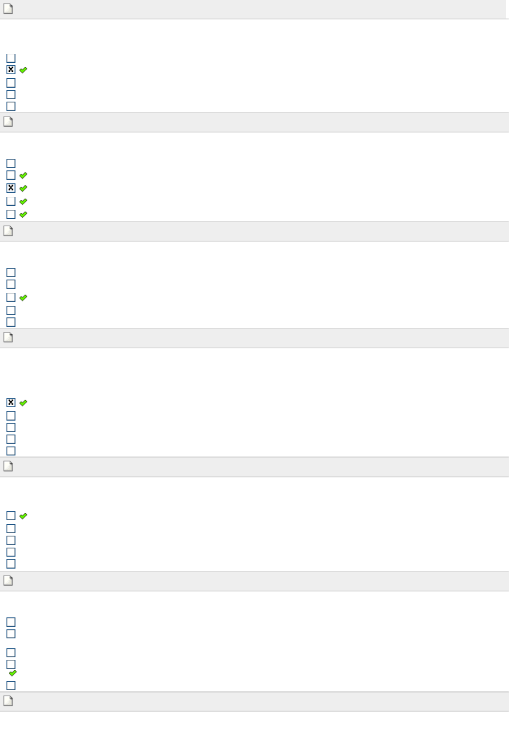 AVALIANDO APRENDIZADO ADMINISTRAÇÃO ESTRATÉGICA AULA 06 1a Questão As estratégias funcionais reforçam a estratégia competitiva da empresa e definem as atividades e processos que criam condições para a empresa conquistar os benefícios da sua posição competitiva. Marque abaixo qual opção NÂO faz parte das estratégias funcionais. Produção e Operações Controle Marketing Finanças Recursos Humanos 2a Questão Quando a estratégia estabelecida tem foco na entrega de valor, isso significa (assinale a opção INCORRETA): d) Que acredita que seu cliente só valoriza o preço. b) Que seus esforços estão em atender às necessidades do cliente. c) Que há interesse em entender, satisfazer e superar as expectativas do cliente, mostrando seus diferenciais diante do mercado. e) Que entende que a estratégia voltada para a entrega de valor exige ações de marketing que mostrem esse valor para o seu cliente. a) Que ela está priorizando seu cliente e o que ele valoriza. 3a Questão Os objetivos e estratégias funcionais deverão ser utilizados pelos responsáveis de cada setor da empresa para formular suas ações, e assim, atingir: Visão Missão os objetivos gerais. Valores Missão, visão e valores 4a Questão Um grande Banco brasileiro acaba de lançar um pacote de produtos financeiros para atender a jovens de alta renda. Para as campanhas internas de orientação à equipe de vendas e atendimento, o público-alvo é descrito da seguinte forma: ¿ idade entre 25 e 39 anos, classes A1 e A2, profissionais de nível superior; ¿ residentes em regiões metropolitanas do Norte/Nordeste; ¿ procuram por status e prestígio social. As três bases de segmentação do mercado consumidor segmentado, são respectivamente: Demográfico, geográfico e benefícios procurados. Econômico, geográfico e comportamental. Geográfico, benefícios procurados e demográficos. Demográfico, regional e comportamental. Estatístico, espacial e psicológico. 5a Questão Dentre as estratégias funcionais existentes, em qual delas pode ser definida como um processo integrado para alcançar vantagem competitiva através de valor acrescido, além do serviço ao cliente? Logística Produção Finanças Recursos Humanos Marketing 6a Questão Dos cinco itens elencados, identifique qual deles está diretamente ligado às estratégias funcionais de produção. Determinação de mercados apropriados para a oferta de produtos de uma nova linha adotada pela empresa. Decisões de terceirizar ou não a administração dos sistemas de informação, uma vez que as mudanças tecnológicas nesta área são frequentes e a ausência de um sistema bem projetado pode afetar a área de produção. Decisões sobre como melhor captar os recursos financeiros que serão empregados na nova linha de montagem do produto líder de mercado. Definições relativas ao aumento do volume de unidades a serem produzidas no último trimestre do ano e o número de profissionais necessários para a referida ampliação. Implantação de um programa de aperfeiçoamento e avaliação do desempenho profissional das equipes de produção. 7a Questão Quando se fala em estratégia empresarial é importante considerar estratégia de cada setor da empresa, quando se trata do setor de Marketing, deve ser considerado os ¿4Ps¿ Produto, preço, praça e promoção. Para tanto devemos considerar as alianças como mecanismo estratégico, assim a aliança logística (distribuição conjunta) diz respeito a: Praça. Promoção. Diferenciação. Preço. Produto. 8a Questão As decisões da estratégia de produção estão relacionadas ao planejamento da utilização da capacidade instalada, a estrutura e controle dos custos de produção e a qualidade dos bens/serviços que são ofertados. Deste modo podemos afirmar que os seus conteúdos abrangem as seguintes perspectivas, EXCETO: Perspectiva dos requisitos de mercado Perspectiva dos recursos da produção Perspectiva de baixo para cima (bottom-up) Perspectiva de cima para baixo (top-down) Perspectiva de inovação 1a Questão Quais das estratégias de negócios a seguir são estratégias estabelecidas para as áreas da organização que irão contribuir para o alcance das estratégias estabelecidas para o negócio? Competição Diferenciação Baixo custo Racionalização Funcionais 2a Questão A cadeia de comando é um princípio clássico de administração, baseado na unidade de comando segundo o qual cada subordinado se reporta apenas a um único superior hierárquico. Considerando a gerência de marketing, que unidades de trabalho estariam subordinados a ela? Atendimento online, vendas, publicidade, produção Relações públicas, vendas, publicidade, pesquisa de mercado Publicidade, pesquisa de mercado, assessoria de imprensa, operações Pesquisa de mercado, produção, vendas, publicidade Vendas, relações públicas, atendimento online e pesquisa de mercado 3a Questão Considerando os aspectos relativos às estratégias funcionais, classifique as afirmativas abaixo como verdadeiras ou falsas e assinale a opção correta: I - As estratégias devem estar em consonância com as estratégias gerais da empresa. II - Os objetivos e estratégias funcionais são comuns a todos os setores da empresa. III - Ao se atingir os objetivos funcionais, atingem-se os objetivos gerais. IV - As estratégias funcionais são mais abrangentes que as estratégias gerais. Somente as afirmativas I e II estão corretas Somente as afirmativas I e III estão corretas Somente as afirmativas II e III estão corretas Somente as afirmativas III e IV estão corretas Somente as afirmativas II e IV estão corretas 4a Questão Na formulação das estratégias funcionais, deve-se ter atenção às estratégias de marketing, que irão direcionar a empresa aos mercados-alvo em busca dos resultados de receitas e lucros a serem alcançados. Para compor estas estratégias, que teoria é utilizada como ponto para definir o mix de marketi