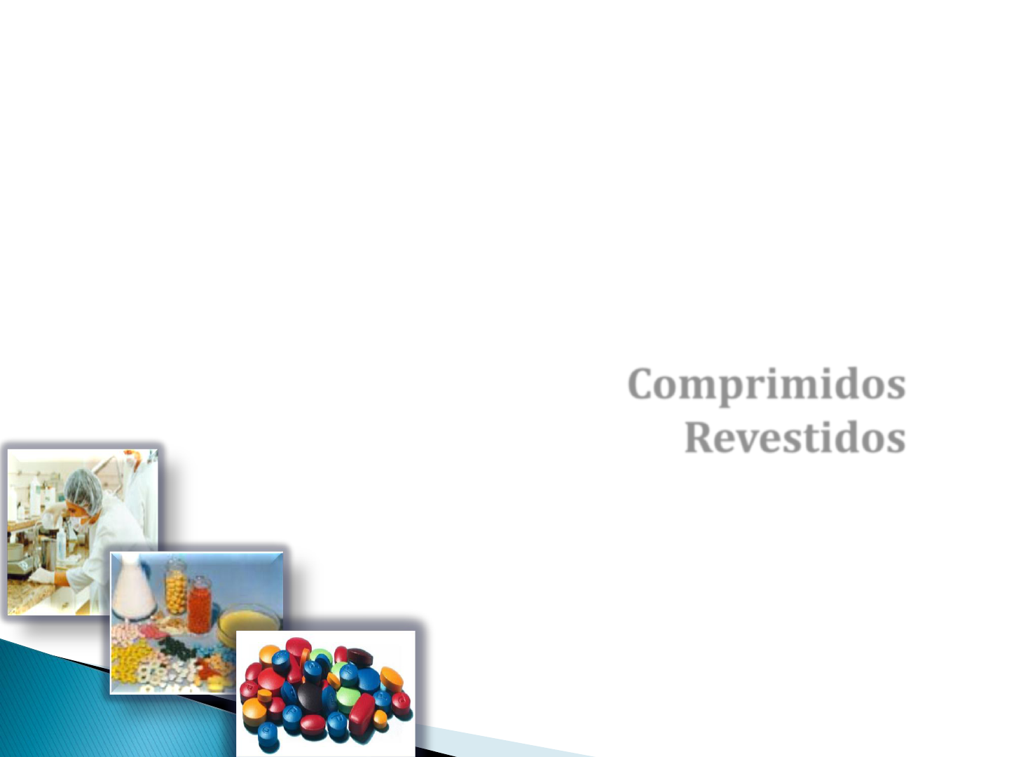 * * Universidade Federal da Paraíba Centro de Ciências da Saúde Departamento de Ciências Farmacêuticas Prof. Ma. Silvana Jales 2018 Comprimidos Revestidos * * São comprimidos que têm a superfície recoberta por uma ou várias camadas de substâncias diversas, tais como: resinas naturais ou sintéticas, gomas, açucares, substâncias plastificantes, polióis, ceras, corantes permitidos, etc. * * II. Objetivos do revestimento Mascarar sabores ou odores desagradáveis e cor; Evitar a propriedade emética de determinados IFA.; Permitir resistência a ação do suco gástrico; Prevenir algumas incompatibilidades; Permitir eficaz proteção e conservação do IFA; Impedir a formação de pós e melhorar o escoamento nas máquinas de acondicionamento; Incorporar outro fármaco ou adjuvante; Melhorar o aspecto – Marketing. * * 1. Propriedades dos comprimidos; 2. Processo de revestimento (equipamento, parâmetros, automatização do processo); 3. Composição do revestimento. * * 1. Propriedades dos comprimidos características físicas resistência Forma esférica * * 2. Processo de revestimento Equipamento a. Turbina de revestimento tradicional; b. Turbina de revestimento perfurada; c. Leito fluidizado. * * 2. Processo de revestimento Equipamento a. Revestimento tradicional * * Revestimentos tradicionais 2. Processo de revestimento * * Turbina “Glatt” com o sistema de introdução de ar imerso 2. Processo de revestimento * * Sistema com tubo de imersão 2. Processo de revestimento * * Turbina de revestimento perfurada 2. Processo de revestimento * * Sistema “Hi-Coater” 2. Processo de revestimento * * Diagrama de uma turbina “Driacoater” 2. Processo de revestimento * * 2. Processo de revestimento * * . Leito fluidizado 2. Processo de revestimento * * Diagrama de um leito fluidizado 2. Processo de revestimento * * Sistemas para aplicação de soluções (Aspersores) I- Diagrama simplificado de um bico de aspersão sem ar, a pressão elevada. II- Diagrama simplificado de um bico de aspersão com ar, a pressão baixa. 2. Processo de revestimento * * DRAGEIFICAÇÃO OU DRAGEAMENTO Aparelhagem # Turbinas ( velocidade, ângulo [0 a 45°], aquecimento e ar). Local # Sala lavável, iluminação, temperatura e umidade. * * Aparelhagem: Turbinas especiais (aço inoxidável, vidro ou cobre) Turbinas – ângulo 25° e velocidade de 30 voltas/min. * * NÚCLEO: Comprimidos destinados ao drageamento Requisitos: Forma e tamanho Resistência Quantidade Peso * * . Impermeabilidade ou isolamento (se necessário) Sub-revestimento Alisamento e arredondamento Acabamento e coloração Polimento * * 1. Isolamento Para os comprimidos que têm componentes que podem absorver umidade, ou seja, serem adversamente afetados pela umidade, coloca-se uma camada impermeável, com um material como verniz, antes da aplicação do sub-revestimento. O verniz é aplicado em forma de solução (em geral, alcoólica), sendo suavemente despejado sobre as drágeas. Ar quente é introduzido na drageadeira durante o processo de revestimento para acelerar a secagem e evitar que haja aderência comprimido/comprimido. * * 2. Sub-revestimento (Enchimento) Os comprimidos recebem cerca de 3 a 5 sub-revestimentos com xarope de açúcar, com a finalidade de tornar o comprimido arredondado e unir o revestimento de açúcar a superfície do comprimido. Ao aplicar o sub-revestimento, geralmente se adiciona um xarope espesso que contém gelatina ou polivinilpirrolidona (PVP). * * 2. Sub-revestimento (Enchimento) Quando os comprimidos estão parcialmente secos, são pulverizados com um pó fino, que normalmente é composto por uma mistura de açúcar e amido, podendo também conter talco, acácia ou carbonato de cálcio. Aplica-se ar quente aos comprimidos que estão rolando e quando estão secos, repete-se o processo de sub-revestimento até que atinjam o tamanho e a forma desejados. * * 3. Alisamento e arredondamento São aplicadas 5 a dez camadas adicionais com um xarope bastante espesso, com a finalidade de completar o arredondamento e alisar os revestimentos. Aplica-se ar quente para ajudar na secagem. * * 4. Acabamento e coloração Para obter o alisamento e a cor final apropriada, são aplicados vários revestimentos de um xarope diluído contendo o corante desejado. 5. Polimento Os comprimidos revestidos podem ser polidos em drageadeiras especiais em forma de tambor, com tecido aplicado sobre uma estrutura de metal ou em drageadeiras revestidas por lona (impregnadas com cera). * * Conferir às drágeas, brilho e revestí-las de fina película impermeável que protegerá as últimas camadas açucaradas da umidade do ar. É conseguida através de ceras ou parafinas. Turbina de polimento revestido com telas de lona * * * * Vantagens: Protege a droga dos efeitos do ar e umidade. Mascara o sabor e o odor degradáveis. Melhora a aparência dos comprimidos. Desvantagens: Tempo e habilidade requeridas para o processo. Aumento do tamanho e peso do comprimido (50%). * * * * * * Substâncias filmogênicas Solventes (aquoso ou orgânico) Aparelhagem Local * * O processo de revestimento com película, que coloca sobre o comprimido um revestimento fino e liso, com um material que se assemelha ao plástico, foi desenvolvido para produzir comprimidos revestidos essencialmente com mesmos peso, forma, e tamanho que os originais. *São muito mais resistentes à destruição por abrasão que os revestidos com açúcar, e podem ser coloridos para que se tornem atraentes e distintos. * * As soluções para revestimentos pelicular podem ser aquosas ou não. Não-aquosas: Formador de película (acetoftalato); substância de liga (polietilenoglicol); plastificante (óleo de mamona); tensoativos (derivados do polioxietileno sorbitano); opacificantes (dióxido de titânio) e corantes; edulcorantes (sacarina), flavorizantes e aromas (baunilha); agente de brilho (cera de abelha) e solvente volátil. * * Aquosas: dispersões coloidais à base de água p