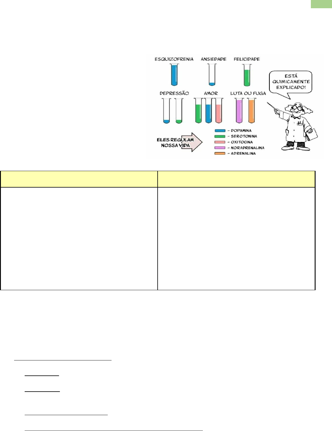 �� (Adaptado) Transtornos de humor: Antidepressivos Conceito: Os antidepressivos ou timoanalépticos são drogas capazes de elevar o humor. O humor ou timia era definido como: O conjunto de disposições afetivas e instintivas que determinam a tonalidade fundamental da atividade psíquica, capaz de oscilar entre os dois pólos compreendidos entre euforia expansiva e depressão dolorosa. Antidepressivos Psicoestimulantes Em Psiquiatria, a depressão consiste em um transtorno de humor e representa uma síndrome com sinais e sintomas bem definidos. Os transtornos de humor caracterizam-se por uma alteração fixa do humor que influencia profundamente o pensamento e o comportamento. Na doença depressiva, observa-se um rebaixamento persistente do humor, ao contrário do que ocorre na mania, que se caracteriza por sua elevação (euforia) duradoura ou grande irritabilidade (disforia) Os psicoestimulantes, a exemplo das anfetaminas, são capazes de provocar apenas euforia superficial e temporária, agindo mais sobre a vigilância que sobre o humor Apesar dos psicoestimulantes poderem aliviar os sintomas da depressão de leve ou moderada intensidade, não existem evidencias de que possam melhorar de forma duradoura a depressão maior. Diagnostico de depressão: O manual de diagnóstico e estatística dos transtornos mentais da associação americana de Psiquiatria situa a depressão nas categorias transtorno bipolar e transtorno depressivo, estando inclusos no transtorno depressivo a depressao maior com episódios únicos e recorrentes e as distimias (mal humor peculiar e ate mesmo melancolia- depressão leve , crônica de pelo menos dois anos de duração). O transtorno bipolar abrange: Subtipo I- quando há a presença de pelo menos um episodio de mania, podendo ocorrer ou não depressão. Subtipo II- quando ocorrem hipomanias com ou sem depressão Episódios mistos—presença concomitante de depressão e mania ou alternância rápida de ambas, com duração mínima de 1 semana. Transtornos ciclotimicos-flutuações rápidas entre hipomania e depressão leve, intercalada por períodos breves de normalidade. Transtornos de humor secundários a doenças medicas, como as tireoidianas, ao uso de medicamentos(antihipertensivos, propanolol, corticosteroides...) ou ainda ao uso e abuso de drogas. As manias e as hipomanias (manias leves) correspondem a períodos de alteração anormal e continua do humor com euforia ou irritabilidade que duram pelo menos 7 e 4 dias, respectivamente e estão associados a pelo menos três outros sintomas como, aumento exagerado da autoestima, diminuição da necessidade de dormir, hiperatividade, etc. Classificação da depressão segundo os sintomas: Depressão ansiosa Depressão anergica ou apática Depressão atípica—o paciente não da indícios de que esta depressivo Depressão sazonal- Típico em paises em que o inverno é muito violento Depresso psicótica- ex: depressão pos parto. OBS: Os critérios para um episodio de depressão maior unipolar são idênticos aos do episodio depressivo bipolar, exceto que nesse último, o paciente deve ter tido um ou mais episódios de mania durante a vida. Hipóteses biológicas para a depressão: A) Monoaminergicas: A descoberta de que os antidepressivos triciclicos inibem a recaptação da noradrenalina (NA), serotonina (5-HT) e até mesmo dopamina, bem como a descoberta de que os IMAO inibem a enzima monoamina oxidase (MAO) = ambos os mecanismos aumentando a disponibilidade sináptica dessas monoaminas de volta ao normal em certas áreas do cérebro, vieram corroborar a hipótese de que Os neurotransmissores podem estar diminuídos nas sinapses em locais específicos do cérebro durante um episódio depressivo. Várias outras observações haviam conduzido a essa hipótese, como a constatação, por exemplo, de que a RESERPINA (anti-hipertensivo), que produz depleção de nora e de serotonima cerebrais, causa depressão no homem e, por outro lado, a observação de que a ANFETAMINA, que provoca liberação de NA, esta associada a elevações transitórias no humor. Tais hipóteses sugerem até mesmo tentativas de aproveitar-se do perfil metabólico da depressão na previsão da resposta terapêutica a antidepressivos específicos. � Depressões ditas noradrenérgicas (depressões inibidas) -> antidepressivos mais seletivos quanto a inibição da recaptação de NA (Nortriptilina, reboxetina) Depressões ditas serotoninérgicas (depressões ansiosas) -> aconselhados os bloqueadores seletivos da recaptação de serotonina ( fluoxetina, sertralina). � ATENÇÃO: A primeira amina a ser colocada como substância do bom humor foi a serotonina. O Prozac é a fluoxetina, um fármaco parcialmente seletivo que aumenta os níveis de serotonina, impedindo a sua recaptação. O paciente com tendência suicida não pode fazer tratamento com esta droga, pois ele toma coragem. B) Sobre alteração de receptores: A disparidade no tempo entre a inibição da recaptação dos neurotransmissores (horas) e a eficácia antidepressiva dessas drogas (semanas) torna a teoria monoaminergica uma explicação insuficiente. Outra explicação mais convincente e provavelmente complementar pode estar na observação de que: O número e a sensibilidade dos receptores beta-adrenérgicos pos sinápticos centrais, estariam diminuídos com o uso crônico de praticamente todos os antidepressivos. OBS: alguns autores observaram o mesmo fenômeno quanto aos receptores alfa 2 pré-sinápticos. Tais modificações dos receptores coincidem no tempo com a melhora clínica da depressão. A deficiência das monoaminas, seria portanto explicada pela hipersensibilidade dos receptores monoaminergicos, a qual, por um mecanismo de feedback, diminuiria a síntese e a liberação dos neurotransmissores. Assim, a depressão poderia resultar de uma disfunção do numero e da sensibilidade dos receptores, provavelmente, determinada geneticamente. (cromossomo 11). OB