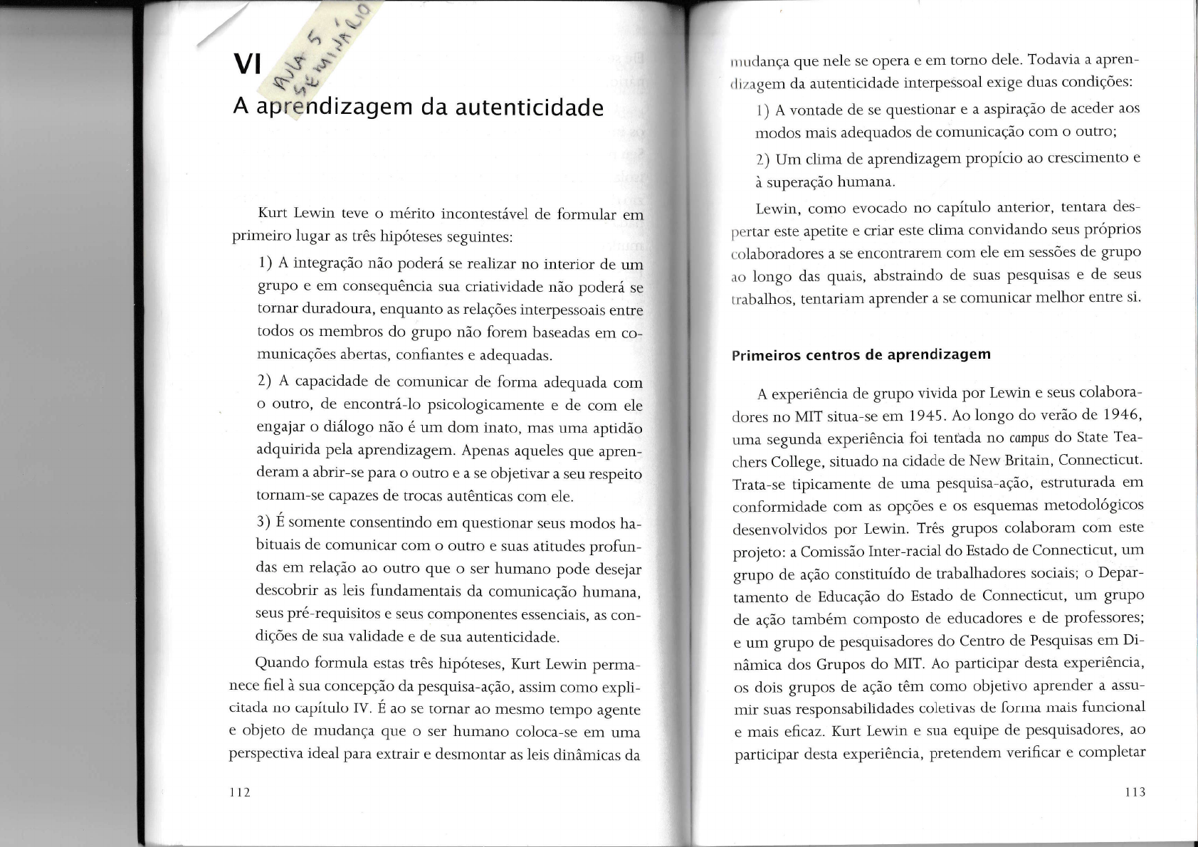 A experiência de grupo vivid.a por Lewin e seus colabora-