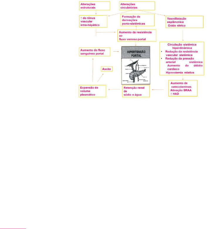 Diagnóstico Diferencial de Ascite Definição É o acúmulo de líquido livre na cavidade peritoneal, causado por diversas etiologias, sendo um volume maior do que aquele presente para lubrificar as alças intestinais (100 ml). É uma manifestação clínica de várias patologias. É um difícil diagnóstico diferencial. Etiologia As quatro principais causas de ascite são: Sem acometimento peritoneal: relacionada a hipertensão portal: Cirrose hepática – é a principal causa de todas Insuficiência cardíaca congestiva Hepatite alcoólica aguda Hepatite viral fulminante ou subaguda Síndrome de Budd-Chiari Doença hepática veno oclusiva Pericardite constrictiva Obstrução da veia cava inferior Com comprometimento peritoneal Peritonite tuberculosa Metástases (carcinomatose peritoneal) Doenças fúngicas (blastomicose) Parasitárias (estrongiloidíase) Vasculites (lupus eritematoso sistêmico) Gastroenterite eosinofílica Principais tipos de ascite Ascite por cirrose hepática Fisiopatologia: As alterações estruturais do fígado: que são os nódulos de regeneração, comprimem os espaços porta, aumentando o tônus intravascular hepático, que causa aumento da resistência ao fluxo sanguíneo que entra no fígado, levando a hipertensão portal. Alterações circulatórias: com o processo de fibrose, há uma redução de fluxo para o fígado, induzindo a liberação de substâncias vasodilatadoras, que vão para a circulação sistêmica, causando uma vasodilatação periférica com hipotensão arterial. Com isso, há ativação dos mecanismos contra-reguladores composto pelas catecolaminas, SRAA, que aumenta a produção de Aldosterona, aumentando a volemia desnecessariamente, com extravasamento do líquido para fora dos vasos que estão mais dilatados, que são os do abdome. Ascite Neoplásica Se caracteriza por uma ascite, em geral, de grande volume, sendo seu líquido característico por: Alta concentração de proteínas (>3 mg/dl) As concentrações de colesterol e LDH são maiores no LA que no plasma Baixa celularidade pela grande dispersão de células no grande volume de líquido ascético A imunocitoquímica permite diagnosticar o tipo de tumor. Ascite tuberculosa Acometimento peritoneal decorrente de uma infecção pelo BK. Característica do líquido ascético: Concentração de proteína no líquido ascítico habitualmente > 3,0mg/dl Contagem celular com predomínio de mononucleares Obs.: Geralmente, o exame citológico com coloração de Ziehl-Nielsen para pesquisa de BARR é negativo. A cultura do líquido costuma ser positiva quando for colhido mais de 5 litros de líquido ascitico. Síndrome de Budd-Chiari (Obstrução pós-sinusoidal ao fluxo sanguíneo supra-hepático) É a obstrução das veias hepáticas. Síndrome comum pela ICC. Características do líquido ascético GASA Se houver capilarização: GASA <1,1 Se não houver capilarização: GASA >1,1 USG com veias supra-hepáticas obstruídas O quadro clínico é acompanhado pelos sintomas cardíacos de ICC. Ascite pancreática Ocorre por ruptura do ducto pancreático ou de um pseudo cisto pancreático Elevado teor de amilase e lipase; Alta concentração de proteínas Associada a clínica de pancreatite, história de alcoolismo. Decorrente de uma pancreatite aguda ou crônica. Ascite biliar Pode acontecer por trauma e pós-operatório e procedimentos diagnósticos que causam lesão da árvore biliar. Característica do líquido amniótico: Esverdeado Com alto teor de bilirrubinas Ascite quilosa Ascite decorrente de grande concentração de quilomícrons e triglicerídeos. De etiologia neoplásica digestiva ou por obstrução de vasos linfáticos. Também pode ser causada por cirrose avançada, que causa uma ruptura dos linfáticos, liberando os quilomícrons. Hidrotórax hepático É a ascite que evolui para o tórax do paciente, ou seja, é um derrame pleural em cirróticos sem doença pleuro-pulmonar ou cardíaca. O peritônio e o diafragma possui pontos de comunicação; quando houver ascite de grande volume, o líquido passa por esses pertuitos pelo aumento da pressão, causando um derrame pleural pelo líquido ascitico. Classificação De pequeno volume: 200-300 mL Difícil diagnóstico Exame físico com baixa sensibilidade USG é o método de imagem mais adequado, já que é sensível a volumes maiores que 100 mL. De grande volume: Diagnóstico História clínica: História de hepatite prévia História de alcoolismo História de pancreatite História de manuseio das vias biliares Exame físico Inspeção: Abdômen globoso em ortostatismo com abaulamento dos flancos na posição supina Macicez a percussão de flancos em posição supina. Sinal do piparote: positivo quando volume for maior que 5 litros Exame da macicez móvel Semicírculos de Skoda Ginecomastia USG abdominal É sensível até mesmo a ascites de pequenos volumes. Auxílio no diagnóstico etiológico Indica se há uma hepatopatia Fígado cirrótico Metástases hepáticas ou peritoneais Neoplasias Trombose venosa Cistos GASA (gradiente de albumina soro ascite) É o exame feito para diferenciar uma ascite peritoneal de uma que não tenha comprometimento peritoneal. Consiste na dosagem de albumina no soro, comparada a albumina da ascite. Com comprometimento peritoneal: Relação menor que 1,1 Sem comprometimento peritoneal: relação maior que 1,1. Obs.: Quando a quantidade de hemácias ultrapassar 50000 hemáceas/mm3, é considerada ascite hemorrágica. Indicada para diagnóstico de envolvimento peritoneal. O líquido ascítico é colhido através de paracentese abdominal. É um cálculo simples e bem específico. Além da dosagem de alguma no líquido peritoneal, o GASA também é útil para: Contagem de células totais e diferenciais Leucócitos Hemácias Citopatológico Amilase DHL ADA – importante para peritonite tuberculosa. Glicemia Lipídios Cultura do líquido Tuberculose: paucibacilar. Necessária várias semanas para se obter r