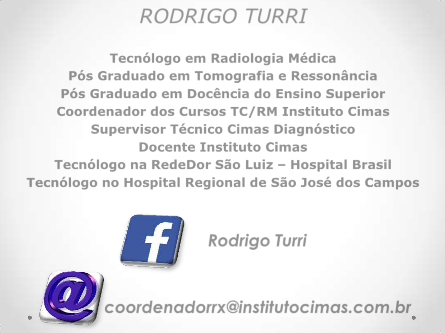 Tecnólogo em Radiologia Médica Pós Graduado em Tomografia e Ressonância Pós Graduado em Docência do Ensino Superior Coordenador dos Cursos TC/RM Instituto Cimas Supervisor Técnico Cimas Diagnóstico Docente Instituto Cimas Tecnólogo na RedeDor São Luiz – Hospital Brasil Tecnólogo no Hospital Regional de São José dos Campos coordenadorrx@institutocimas.com.br Rodrigo Turri RODRIGO TURRI Meios de Contraste Professor Rodrigo Turri coordenadorrx@institutocimas.com.br FELISBERTO Marcelo. Guia Prático de Radiologia: exames especializados. São Paulo: Iátria, 2009 KENNETH L. Bontrager; JOHN P. Lampignano. Tratado de posicionamento radiográfico e anatomia associada. São Paulo: Elsevier, 2010 – Sétima Edição Referências Bibliográficas LEAL Robson, et al. Posicionamento em Exames Contrastados. Rio de Janeiro: Primeira Edição BIASOLI A. Junior. Técnicas Radiográficas. São Paulo: Primeira Edição As imagens anexas neste material são tiradas das referências acima supracitadas, google imagens, sites, blogs de radiologia e banco de imagens da unicamp. SUGESTÕES DE PESQUISA – ARTIGOS CIENTÍFICOS www.periodicos.capes.gov.br www.endnot.com www.scielo.org 1929: Reinaldo dos Santos realiza uma aortografia com punção translombar. História dos Meios de Contraste 1933: Descobertos novos meios de contraste. 1950: Estudos descobrem meios de contraste do grupo amina, sendo de menor toxidade evoluindo para os meios de contrastes utilizados até hoje. 1953: Seldinger progrediu estudos com a utilização de contraste com um cateter pela árvore arterial, apresentando uma grande evolução e podendo chegar em regiões do nosso corpo que antes não haviam chego. 1980: Foi realizado a primeira angiografia digital com a utilização de contraste. Apesar da grande evolução, com a redução da mortalidade e morbilidade, ainda haviam complicações para realização de exames com contraste. A nefro toxidade e a reação alérgica são os dois principais fenômenos indesejáveis quando são utilizados os contraste a base de iodo e bário. 1986: Lindenthal introduziu uma mistura de bismuto, chumbo e bário em uma mão amputada realizando assim a primeira angiografia. 1986: Egas Moniz, médico português, realizou a primeira punção carotídea, o que permitiu posteriormente o estudo de doenças da circulação cerebral. Substância geralmente líquida injetada ou ingerida pelo paciente para bloquear Raios-X. Frequentemente são usados durante exames de imagens para destacar partes específicas do corpo com o realce de estruturas, disponibilizam maiores informações diagnósticas. Podem ser usados em raio-X (exames contrastados), tomografia computadorizada e ressonância magnética. Definição Permite uma diferenciação entre estruturas vizinhas que possuem densidade similar, sendo que devemos obter condições que justifiquem a sua utilização e as principais são: Boas Características: Baixa toxicidade Fácil administração, sem modificação química Fácil eliminação Fornecer contraste adequado ABSORÇÃO Positivos e Radiopacos: Quando presentes em um órgão absorvem mais radiação que as estruturas vizinhas. Os meios de contraste positivos tem peso atômico elevado determinando alta absorção dos raios-X, estes meios de contraste são basicamente de dois grupos: Iodados e baritados, são eles: Sulfato de bário e iodo. Classificação Negativos e Radio transparentes: Permitem passagem de ar e de gases que permitem passagem de RX, sendo assim mais facilmente servido assim como contraste negativo. Os meios de contrastes negativos tem baixo peso anatômico, com mínima absorção dos raios-X, são eles: ar atmosférico, gás carbônico e oxigênio. Hoje em dia pouco utilizados. COMPOSIÇÃO: Iodado: são os que contém iodo como elemento radiopaco, maior viscosidade, osmolaridade e mais pesado, utilizados em raios-X e tomografia computadorizada. Não iodado: são os que não contém iodo, mas outros átomos que são elementos químicos, utilizados em raios-X e ressonância magnética (Sulfato de Bário e Gadolínio). SOLUBILIDADE: Hidrossolúvel: são aqueles que dissolvem em água. Lipossolúvel: são os que dissolvem em lipídios (gorduras). Isossoluvéis: estes não dissolvem nem na água e nem em gordura. NATUREZA QUÍMICA: Orgânicos: aqueles que contém carbono em suas moléculas Exemplo: Iodo. Inorgânicos: aqueles que não contém carbono em suas moléculas Exemplo: Sulfato de Bário. ESTRUTURA MOLECULAR Anel Benzênico: Carregador I: Componente Radiodenso COOH: Ligação Salina R1/R2/R3: Toxidade, viscosidade e via de eliminação. MONÔMERO DÍMERO 3 ÁTOMOS DE IODO 6 ÁTOMOS DE IODO OSMOLARIDADE Função direta do número de partículas em solução Maior número de partículas = Maior osmolaridade BAIXA OSMOLARIDADE (1.600 – 2.100 mOsm) ALTA OSMOLARIDADE (600 – 1.000 mOsm) ISOMOLAR (290 mOsm) IONICIDADE Capacidade de uma molécula dissociar quando em solução produzindo partículas osmóticas ativas. CONTRASTES IÔNICOS CONTRASTES NÃO IÔNICOS Dissociam-se em solução produzindo partículas com poder osmótico Não dissociam-se e solução DISSOCIAÇÃO 1. Via Oral: Quando o meio de contraste é ingerido pela boca, também conhecido como uso enteral, considerada a forma mais natural de uso de medicamentos, podendo gerar efeitos sistêmicos e locais. Exemplo: Esofagograma Vias de Administração tecnologiaradiologica.com ADMINISTRAÇÃO VIA ORAL Vantagens: - Mais seguro - Mais conveniente - Mais econômico Desvantagens: - Irritação da mucosa gástrica - Interferência na digestão - Dificuldade de deglutir momentosaudeufpel.blogspot.com.br 2. Endovenosa: ministrado pela corrente sanguínea, diretamente em uma veia. Exemplo: Urografia Excretora radiologia.blog.br ADMINISTRAÇÃO VIA ENDOVENOSA Vantagens: - Resposta imediata - Pode receber grande dose de medicação em fluxo contínuo - Controle da dose Desvantagens: - Necessita de material esterelizado 