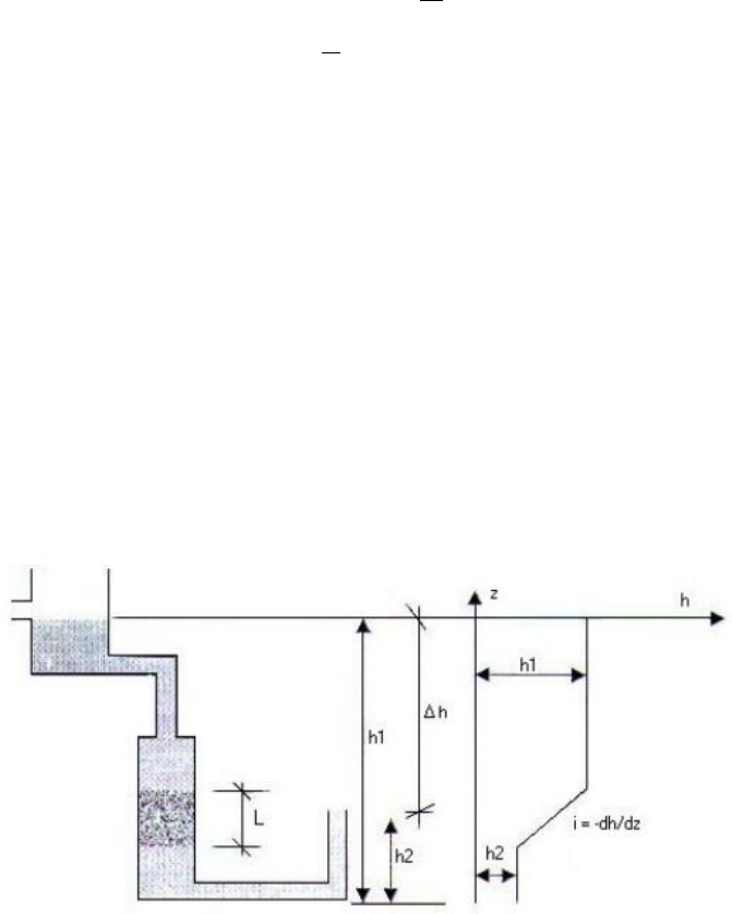 P E R C O L A Q A O DE Á G U A O FLUXO LAMINAR E A LEI DE DARCY No curso de solos (Sousa Pinto, 2000), estudam-se duas hipóteses de percolação de água em meios porosos. São elas: Estrutura rígida do solo sem carregamento de partículas durante o fluxo; Fluxo laminar (lei de Darcy); Para que haja a movimentação de água entre dois pontos, é necessário que haja uma diferença de carga entre esses pontos, (ΔH = ), sendo H representada pela equação: Em que é a carga altimétrica, e a carga piezométrica. O estudo dos fenômenos de fluxo de água em solos se apóia em três pilares: conservação da energia (Bernoulli), permeabilidade dos solos (Lei de Darcy) e conservação da massa. Permeabilidade: é a propriedade que o solo apresenta de permitir o escoamento da água através dele, sendo o grau de permeabilidade expresso numericamente pelo “coeficiente de permeabilidade”. Importância: O estudo da percolação de água no solo, ou seja, a permeabilidade, é importante porque intervêm num grande número de problemas práticos, tais como drenagem, rebaixamento do nível d’água, cálculo de vazões, análise de recalques, estudo de estabilidade, etc. A determinação do coeficiente de permeabilidade é feita tendo em vista a lei experimental de Darcy (proposta em 1856 por esse engenheiro francês). Darcy realizou um experimento com um arranjo similar ao mostrado na Figura 1 para estudar as propriedades do fluxo de água através de uma camada de filtro de areia: Este experimento deu origem a uma lei que correlaciona a taxa de perda de energia da água (gradiente hidráulico) no solo com a sua velocidade de escoamento (Lei de Darcy). Os níveis de água h1 e h2 são mantidos constantes e o fluxo de água ocorre no sentido descendente através do corpo-de-prova. Medindo o valor da taxa de fluxo que passa através da amostra (vazão de água) q, para vários comprimentos de amostra (L) e de diferença de potencial (∆h), Darcy descobriu que a vazão “q” era proporcional à razão L ∆h (ou gradiente hidráulico da água, i). VALIDADE DA LEI DE DARCY A lei de Darcy é válida para um escoamento “laminar”, tal como é possível e deve ser considerado o escoamento na maioria dos solos naturais. Um escoamento se define como laminar quando as trajetórias das partículas d’água não se cortam; em caso contrário, denomina-se turbulento. COEFICIENTE DE PERMEABILIDADE O valor de k é comumente expresso como um produto de um número por uma potência negativa de 10. Exemplo: k = 1,3 x 10-8 cm/seg, valor este, aliás, característico de solos considerados como impermeáveis para todos os problemas práticos. Na Figura 2 apresentamos, segundo A. Casagrande e R. E. Fadum, os intervalos de variação de k para os diferentes tipos de solos e na Tabela 1.1, segundo Casagrande. REVISÃO DO CONCEITO DE REDE DE FLUXO E DO SEU TRAÇADO CONCEITO DE REDE DE FLUXO O trajeto que a água segue através de um meio saturado é designado por linha de fluxo. Essas linhas de fluxo não podem se cruzar por ser um regime laminar. O lugar geométrico dos pontos com igual carga total é uma equipotencial, ou linha equipotencial. Alguns pontos da fração da carga total já terão sido consumidas. Neste caso, observa-se que a água percola da esquerda para a direita em função da diferença de carga total existente. Observa-se que as 11 linhas equipotenciais são perpendiculares às 4 linhas de fluxo, formando elementos aproximadamente quadrados. A rede é formada por 5 canais de fluxo (nf = 5) e por 12 quedas equipotenciais (nq = 12). Nota-se que os canais de fluxo possuem espessuras variáveis, pois a seção disponível para passagem de água por baixo da estaca prancha é menor do que a seção pela qual a água penetra no terreno. Logo, a velocidade será variável ao longo do canal de fluxo. Quando o canal se estreita, sendo constante a vazão, a velocidade será maior, gerando um gradiente hidráulico maior (Lei de Darcy). Consequentemente, sendo constante a perda de potencial de uma linha equipotencial para outra, o espaçamento entre as equipotenciais deve diminuir. Sendo assim, a relação entre as linhas de fluxo e equipotenciais se mantém constante. A partir do traçado da rede de fluxo pode-se calcular a vazão percolada. Assim: Isolando um elemento da rede de fluxo, como aquele mostrado na Figura 1.15, o qual é formado por linhas de fluxo distanciadas entre si de “b” no plano do desenho e de uma unidade de comprimento no sentido normal do papel. Propriedades básicas de uma rede de fluxo As linhas de fluxo e as linhas equipotenciais são perpendiculares entre si, isto é, sua interseção ocorre a 90º; A vazão em cada canal de fluxo é constante e igual para todos os canais; As linhas de fluxo não se interceptam, pois não é possível ocorrerem duas velocidades diferentes para a mesma partícula de água em escoamento; As linhas equipotenciais não se interceptam, pois não é possível se ter duas cargas totais para um mesmo ponto; A perda de carga entre duas equipotenciais consecutivas quaisquer é constante. A EQUAÇÃO DE LAPLACE E SUA SOLUÇÃO HETEROGENEIDADES Na prática, a ocorrência de solos homogêneos é inexistente. Em um mesmo solo é possível encontrar diferentes permeabilidades em camadas de solos. Dessa forma, nem sempre é possível idealizar um solo único. Nesses casos tem-se percolação de água através de meios heterogêneos, ou seja, as propriedades do material variam de ponto para ponto. Para o traçado de uma rede de fluxo num meio heterogêneo permanecem válidas as condições estabelecidas para o fluxo em meio homogêneo, devendo-se acrescentar as condições de transferência das linhas de fluxo de um meio para o outro. Quando a água flui através de uma fronteira entre dois solos de permeabilidades diferentes, as linhas de fluxo mudam de direção. Essa variação na direção ocorre segundo ângulos de interseção inversamente prop
