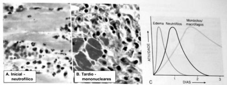 Questões Inflamação 1. As afirmações A e B a seguir, assim como a figura, descrevem de forma geral as inflamações agudas e crônicas, respectivamente: A. “A resposta inflamatória aguda evolui a partir de uma fase vascular iniciada pelas células residentes no tecido imediatamente após o dano”. B. “Na inflamação crônica, em geral ocasionada por persistência do estímulo tóxico, o processo inflamatório se mantém e sofre alterações qualitativas”. Liste outras duas diferenças entre esses dois processos (diferentes das especificadas acima) ________________________________________________________________________________________________________________________________________________________________________________________________________________________________________________________________________________________________________________________________________________________________________________________________________________________________________________________________________________________________________________________________________________________________________________________________________________________________________________________________________________________________________________________________ 2. Discorra sobre a seguinte afirmação “Na inflamação aguda predominam os fenômenos exsudativos e na crônica os fenômenos produtivos”. ________________________________________________________________________________________________________________________________________________________________________________________________________________________________________________________________________________________________________________________________________________________________________________________________________________________________________________________________________________________________________________________________________________________________________________________________________________________________________________________________________________________________________________________________ 3. O primeiro objetivo de uma resposta imunológica consiste em proteger o corpo contra lesão tecidual ou invasão por material estranho, e a resposta imediata consiste num processo inflamatório, no qual observam-se eventos vasculares e celulares que permitem a chegada das células de defesa ao local da lesão. Determine a seqüência temporal dos eventos citados. a) fagocitose, marginação, diapedese, rolamento b) aumento da permeabilidade vascular, adesão e rolamento c) vasodilatação, aumento de permeabilidade, diapedese e fagocitose d) rolamento, fagocitose e aumento de permeabilidade vascular e) diapedese, rolamento e vasodilatação. 4. A inflamação granulomatosa é um padrão distinto de inflamação crônica. Brevemente, um granuloma, como apresentado na figura abaixo, é um esforço celular para conter um agente agressor de difícil erradicação. Fonte: anatpat.unicamp.br Analise as proposições acerca da formação dessa estrutura: I. Constitui-se de um agregado microscópico de macrófagos que são transformados em células epitelióides que se fundem para formar as células gigantes. II. Constitui-se por infiltrado linfoplasmocitário, circundado por uma cápsula de fibrose, podendo apresentar necrose tipo caseosa em seu interior. III. Constitui-se no substrato morfológico de algumas doenças infecciosas (como tuberculose e paracoccidioidomicose) ou de corpo estranho, os quais podem ser identificados no granuloma. 5. Paciente feminino de 40 anos apresenta tosse crônica com febre e perda de peso. Radiografia de tórax revela múltiplos nódulos, alguns dos quais apresentam cavitação em lobos superiores do pulmão. Exame de escarro demonstra presença de bacilos álcool-ácido resistentes. O tipo celular mais importante no desenvolvimento dessa lesão é: Fibroblastos Macrófagos Mastócitos Neutrófilos Plaquetas 6. Um foco de inflamação aguda se desenvolve em partes moles de paciente masculino diabético que apresenta ulceração em membro inferior esquerdo. Há dor, edema e rubor. Determine o mediador que tem maior importância na quimiotaxia de neutrófilos para esse local. Determine a função dos demais mediadores. a) Histamina b) Prostaglandina c) Fator de Hageman d) Bradicinina e) C5a