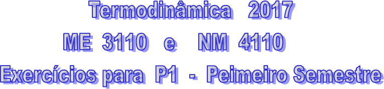 1 Professor Coordenador: Gilberto Ieno Professores da disciplina: Alfredo Alvim Cleber William Gomes Gilberto Ieno Hugo Lagreca Isabela Batista José Luis Alves de Lima Mauricio Trielli Reynaldo Rossetti Rodrigo Bernardello Silvia Velázquez 2 1 - Propriedades Termodinâmicas Teoria Definir sucintamente as propriedades termodinâmicas: energia interna, volume específico, entalpia e entropia e título. Definir os estados: sub- resfriado, líquido saturado, mistura, vapor saturado e vapor superaquecido. Distribuir aos alunos as tabelas de vapor saturado e de vapor superaquecido. Desenhar o diagrama txs, mostrando a sua relação com as tabelas de vapor. Indicar a fórmula para o cálculo das propriedades termodinâmicas de uma mistura de líquido e de vapor, ambos no estado saturado. Definir calor específico e calor latente, e mostrar que o Δh da tabela representa o calor latente de vaporização. Indicar a fórmula para o cálculo da entalpia na saída de uma bomba. Mostrar que a entalpia da água no estado líquido sub-resfriado, tem a entalpia ( kcal/kg) aproximadamente igual à sua temperatura na escala Celsius. Exercícios Ex. 1.1 - O vapor de água no estado superaquecido encontra-se na pressão p1 = 30 ata e passa por uma turbina sem atrito e sem troca de calor. Na saída a pressão é p2 = 0,1 ata e o título do vapor é x2 = 85,83%. Pede-se: 1) Calcular a a temperatura e a entalpia do vapor na entrada da turbina. 2) - Sabendo que o vapor que sai da turbina passa por uma condensação total até o estado líquido saturado, perdendo 5.860.000 kcal/h, calcular a massa de água no estado líquido que sai da turbina em uma hora. Ex. 1.2 - Um quilograma água no estado liquido saturado entra em uma válvula de expansão e passa por ela com entalpia constante. A pressão na entrada da válvula é de 2,4 ata e na saída é de 0,5 ata. Calcular o título e o volume específico da mistura ( líquido + vapor ) na saída da válvula. Representar o processo de expansão no diagrama t,s. h = cte 1 2 T s 3 Ex. 1.3 - Uma massa de 10 kg de água no estado de líquido saturado sujeita à pressão p0 = 40 ata, passa por uma válvula de expansão isoentálpica e sai na pressão p1 = 20 ata. Em seguida passa por uma turbina sem sofrer atrito e nem troca de calor e sai dela na pressão p2 = 1 ata. Pede-se: 1 - Representar as transformações no diagrama t,s. 2 - Calcular o título na saída de cada transformação. 3 - Calcular o volume total da massa que sai da máquina. Ex. 1.4 - Esta questão deverá ser resolvida sem o uso de tabelas, utilizando somente com os dados fornecidos pelo enunciado. Um quilograma de uma mistura de líquido e vapor de água encontra-se na temperatura de 142,90C e sua entropia vale 1,1573 kcal/kg.K . Sabendo que a entropia do líquido saturado na mesma temperatura é 0,4424 kcal/kg.K e que o calor latente de vaporização, nesta temperatura, é de 509,6 kcal/Kg, calcular o título da mistura. Ex. 1.5 - A figura abaixo representa duas quantidades de água em temperaturas diferentes, adicionadas em um recipiente, resultando uma mistura homogênea. O processo foi feito sem a perda de calor para o ambiente. Considerar: ca = 1,0 kcal/kg.K e calcular: 1 - Temperatura final da mistura. 2 - Variação de entropia que ocorre no sistema completo desde o início até o final do processo. Ex. 1.6 - Uma substância líquida com a massa de 50 kg recebe 7200 kcal de uma fonte externa e sofre uma variação de temperatura de 00C para 120 0C, e nesse estado ele se torna líquido saturado. Utilizar nesta questão a definição de entropia, considerando a ausência de atrito, pede-se: 1 - Sabendo que na temperatura de 00C este líquido apresenta a entropia nula, calcular a sua entropia, por unidade massa, no estado líquido saturado. 30 kg 10 kg 200C 20 kg 800C 4 2 - Calcular a entropia, por unidade de massa da substância com 80% de título, sabendo que com 40% de título, sua entropia vale 0,9343 kcal/kg.K. Sabe-se que para a vaporização total da massa de 50 kg em um processo de pressão constante são necessárias 28.000 kcal. Ex. 1.7 - Uma pedra de gelo na temperatura de 00C é jogada dentro de uma jarra contendo 1,3 kg de água na temperatura de 180C. Resultou uma única quantidade de água no estado líquido a 00C. Dados: Ca = 1,0 kcal/kg.K Cg = 80 kcal/kg Calcular: 1 - Massa da pedra de gelo. 2 - Variação total de entropia até o final do processo, quando a mistura atinge a temperatura de 00C 3 - Depois de algum tempo a mistura recebe calor do ambiente a 180C, entrando em equilíbrio térmico com este. Calcular a variação de entropia que ocorreu somente na massa de gelo, até o final deste processo. Ex. 1.8 - Uma substância líquida de calor específico c =1,2 kcal/kg0C, recebe 2400 kcal de uma fonte externa e sofre uma variação de temperatura de 00C para 40 0C. Sabendo que na temperatura de 00C este líquido apresenta a entropia nula, medida em ( kcal/kg.k ) calcular a sua entropia a 400C. Utilizar nesta questão a definição de entropia, considerando a ausência de atrito. 1,3 kg 180C Gelo 0 0 C 5 Ex. 1.9 - O cilindro da figura contém 10 kg de uma mistura de líquido e vapor de água, ocupando o volume total inicial de 0,087m3. O peso da carga sobre o pistão é G1 = 400 kgf sendo a área do pistão Ap = 100 cm 2. Uma parte da carga é lentamente retirada, provocando o movimento ascendente do pistão, sem atrito e sem troca de calor, restando no final, somente 200 kgf. Sabendo que a pressão atmosférica local é 1,0 kgf/cm2, calcular: 1 - Título da mistura no estado inicial. 2 - Título da mistura no estado final. Ex. 1.10 - Um quilograma de líquido saturado na pressão de 10 ata , definido como estado 0, sofre as seguintes transformações: 1 - Passa por uma válvula de expansão ( entalpia constante ) e sai dela na pressão de 5,0 ata. ( estado 1 ) 2 - Em seguida, passa por um bocal de expansão com entropia constante, até a pressão de 3,0 ata. ( estado 2 ) 3 - P