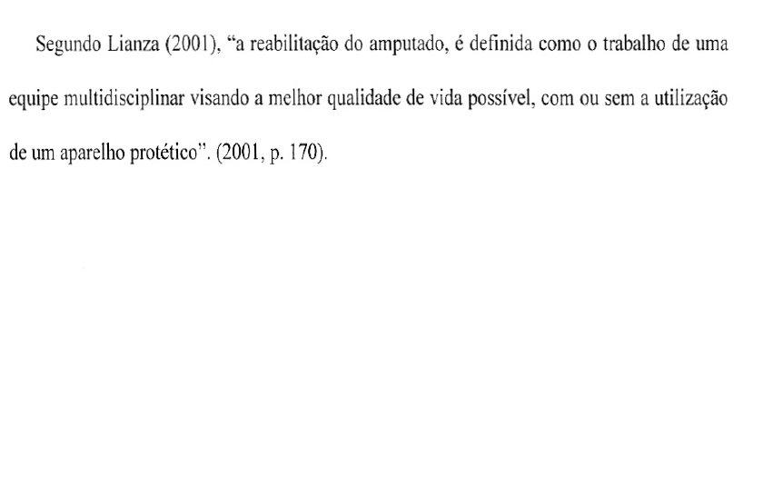edimparcial A amputação é um procedimento cirúrgiI, na maioria das vezes cirúrgica, parcial ou total de um membro (CAR INTRODUÇÃO A amputação é um procedimento cirúrgico bastante antigo. Consiste na retirada, na maioria das vezes cirúrgica, parcial ou total de um membro (CARVALHO, 2003). mA h Etiologias das amputações de MMII (membros inferiores), podemos mencionar aquelas relacionadas a processos vasculares, neuropáticos, traumáticos, tumorais, infecciosos e congênitos. das amputações é quase tão Existem vários tipos de amputação de membros inferiores, como a amputação Interfalangeana, a amputação metetarsofalangeana, a transmetatarsiana, a amputação De Lisfranc (ocorre a desarticulação dos metatarsos com os cubóides e cuneiformes), amputação De Chopart (ocorre a desarticulação entre os naviculares e cubóides com o tálus e o calcâneo), amputação de Pirogoff (ocorre uma artrodese entre a tíbia e o calcâneo), amputação transtibial, a desarticulação de joelho, a amputação transfemural e a desarticulação do quadril ( CARVALHO, 1999 Os pacientes são acompanhados por uma equipe composta de Assistente Social, Fisiatra, Fisioterapeuta, Ortopedista, ENFEMEIRO, Pedagogo, Psicólogo e Terapeuta Ocupacional. Conta com recursos de órteses e próteses prescritas de acordo com as necessidades de cada paciente. A atuação da equipe é muito importante na assistência à pessoa que sofrerá amputação, no sentido de mantê-la informada de todos os procedimentos, assim como mostrar que ela é essencial nesse processo, potencializando a recuperação De maneira geral, a amputação é vivida pelo paciente como um momento de desorganização, tanto em relação à concretude, à marcha, à funcionalidade perdida, quanto aos valores individuais e sociais. É neste contexto que a equipe multidisciplinar deve atuar, oportunizando uma melhor qualidade de vida a esse indivíduo. Fisioterapia atua na pré e na pós-protetização, proporcionando para o sujeito amputado melhora na força muscular de membros superiores e inferiores, reeducação da marcha e melhora da postura corporal, além de prevenir deformidades. Já a Enfermagem tem o papel de orientar a estes usuários amputados, sobre a importância de ter uma alimentação saudável, já que, muitas vezes, a amputação ocorre devido ao diabete mellitus, realiza curativos de feridas, promove e incentiva o autocuidado através de orientações, além de prevenir úlceras de pressão. A contribuição da Psicologia dá-se na motivação dos pacientes amputados, restabelecendo sua auto-estima. Para tanto, durante o processo de pré-protetização, atua na tentativa de mudar as percepções negativas e na pós-protetização, estimula a retomarem a sua rotina com segurança e bem-estar, auxiliando na aceitação de si. vista disso, é de suma importância a atuação de uma equipe multidisciplinar frente a um paciente amputado, buscando uma melhoria na qualidade de vida, promovendo a inclusão social dos sujeitos e de seus familiares. Além disso, cabe acrescentar que o indivíduo tem uma necessidade extrema de ser escutado, onde a equipe deve estar habilitada para lhe proporcionar esse momento de reflexão, possibilitando a diminuição de seu sofrimento e a retomada de sua vida cotidiana. antiga O fisioterapeuta desempenha um papel fundamental e indispensável na reabilitação, e o inicio precoce do tratamento apropriado poderá influenciar os resultados eventuais do processo reabilitatório e busca tornar o indivíduo o mais independente possível, favorecendo a realização de atividades de vida diária, com o uso ou não da prótese. quanto a história da Os recursos fisioterapêuticos mais usados para este tipo de amputação incluem a cinesioterapia, massoterapia, enfaixamento do coto, eletrotermofototerapia e hidroterapia. do homem. Foi a cirurgia mais utili O objetivo principal da reabilitação do amputado é melhorar a qualidade de vida, o que está associado com mobilidade. Mobilidade depende de fatores pessoais e clínicos, sociais, e físicos, incluindo força, equilíbrio, condições do coto de amputação, habilidade para levantar, andar e sentar. O processo de reabilitação pode ser dividido em 2 fases distintas. A fase pré-protética deve ter início assim que possível e envolve cuidados com o coto, fortalecimento, alongamento e mobilidade com auxiliares de marcha. Na fase protética, a habilidade para vestir e andar com prótese é treinada e se possível, o amputado deve ser treinado em diferentes terrenos.1 Pelo exposto, observamos que a reabilitação do paciente com amputação depende de múltiplos fatores e para conseguir mensurá-los, são utilizadas avaliações funcionais que definem as capacidades residuais dos pacientes e potenciais ganhos com o tratamento e com a protetização. zada cônico, sem preocupação com a n Prótese: Componente artificial que tem por finalidade suprir necessidades e funções de indivíduos sequelados por amputações, traumáticas ou não . ão haver soluçãa época. TIPOS DE PRÓTESES o traz consig Exoesquelética (convencional): Componentes: As produzidas com componentes plásticos são geralmente utilizadas para confecção de próteses de banho e geriártricas. o a idéia de mutilação e der ENDOESQUELÉTICA (MODULARES): Essas próteses oferecem ampla linha de opções para uma protetização eficaz. Este sistema foi lançado em 1969, pela OTTO BOCK. Componentes:, seus componentes podem ser em aço, titânio (metal extremamente leve e resistente), alumínio e fibra de carbono. rota, além de um sentido negativo ligado à incapacidade e deal de um membro (CARVALHO, 2003). Para algumas pessoas, este termo traz consigo a idéi O objetivo da protetização é reabilitar o paciente para que ele possa realizar suas atividades normalmente, reintegrando-se à sociedade, permitindo a sua locomoção através da prótese e melhorando sua qualida