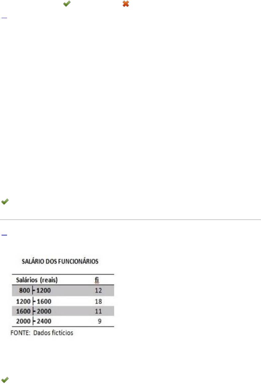 Disciplina: Controle Estatístico do Processo (CGQ09) Avaliação: Avaliação II - Individual FLEX ( Cod.:424405) ( peso.:1,50) Prova: 8813239 Nota da Prova: 8,00 Gabarito da Prova: Resposta Certa Sua Resposta Errada 1. Na Estatística são utilizadas diversas medidas para descrever fenômenos, sendo que algumas são de tendência central e outras de dispersão. Uma medida muito utilizada, principalmente para se comparar medidas, é o coeficiente de variabilidade ou apenas coeficiente de variação. Com relação ao coeficiente de variação, classifique V para as sentenças verdadeiras e F para as falsas: ( ) O coeficiente é um valor decimal e quando multiplicando por 100 chamamos de taxa. No caso do coeficiente de variação, apesar de ser chamado de coeficiente, é apresentado como percentual, então é necessária a multiplicação por 100. ( ) O coeficiente de variação é utilizado principalmente na comparação da variabilidade de dois conjuntos de valores que possuem unidades de medidas distintas. ( ) O coeficiente de variação é uma medida de dispersão cujo objetivo é apresentar a variabilidade da distribuição em termos percentuais. ( ) O coeficiente de variação é uma medida de variabilidade relativa, pois é a relação entre o desvio padrão e a média aritmética, multiplicada por 10. Assinale a alternativa que apresenta a sequência CORRETA: a) F - V - V - V. b) V - V - F - F. c) V - F - V - F. d) V - V - V - F. 2. A tabela a seguir representa o salário dos 50 funcionários da empresa XYZ Ltda. Com base nesses dados, podemos afirmar que a média salarial dos funcionários dessa empresa, em reais, é: a) A média salarial é R$ 1.754,00. b) A média salarial é R$ 1.824,00. c) A média salarial é R$ 1.692,00. d) A média salarial é R$ 1.536,00. 3. Variável é o conjunto de resultados possíveis de um fenômeno, quando são feitas sucessivas medidas. São as características que podem ser observadas (ou medidas) em cada elemento da população. Com relação à classificação de variáveis estatísticas, classifique V para as sentenças verdadeiras e F para as falsas: ( ) A estatura de uma pessoa é uma variável quantitativa contínua. ( ) O peso de uma pessoa é uma variável qualitativa ordinal. ( ) A velocidade de um automóvel é uma variável quantitativa discreta. ( ) A cor de um automóvel é uma variável qualitativa nominal. Assinale a alternativa que apresenta a sequência CORRETA: a) V - F - V - F. b) F - V - V - F. c) V - F - F - V. d) F - F - F - V. 4. Correlação, também chamada de coeficiente de correlação, indica a força e a direção do relacionamento linear entre duas variáveis aleatórias. No uso estatístico geral, correlação refere-se à medida da relação entre duas variáveis, embora correlação não implique causalidade. O coeficiente de correlação de Pearson é o mais conhecido e é obtido dividindo a covariância de duas variáveis pelo produto de seus desvios padrão. Suponha que desejássemos realizar uma investigação sobre a ocorrência de anemia e infecção numa comunidade: um dos itens é poder estimar a concentração de leucócitos no sangue pela medida do hematócrito. Com relação ao gráfico anexo, analise as opções a seguir: I- Correlação linear positiva. II- Correlação linear negativa. III- Não há correlação. Assinale a alternativa CORRETA: a) Somente a opção III está correta. b) As opções I e II estão corretas. c) Somente a opção I está correta. d) As opções II e III estão corretas. 5. Os vendedores João, Paulo e Márcio da empresa DecDec atuam no Estado de Santa Catarina há um ano. As vendas em média e o desvio padrão desses 12 meses estão apresentados a seguir, respectivamente: João: R$ 538.946,00 e 48.465,00. Paulo: R$ 356.542,00 e 38.589,00. Márcio: R$ 245.300,00 e R$ 15.156,00. A partir do coeficiente de variação, qual(is) dos vendedores obteve suas vendas mensais mais homogêneas? a) Márcio. b) Paulo. c) Todos os três: João, Paulo e Márcio. d) João. 6. As cartas de controle ou gráficos de controle são utilizados em pares e sua função básica é acompanhar o desempenho do processo com relação aos produtos manufaturados, ou seja, monitora um parâmetro de distribuição de probabilidade de uma característica para determinar se o parâmetro varia com relação a um valor especificado. Com relação aos tipos de cartas e sua aplicação, classifique V para as sentenças verdadeiras e F para as falsas: ( ) Carta de média e amplitude monitora a variação da média e amplitude, geralmente predomina quando utilizam-se máquinas. ( ) Carta de proporção é utilizada quando se deseja controlar o número total de não conformidades em uma unidade de produto. ( ) Carta de número de defeitos na amostra é utilizada quando a característica da qualidade é representada pela proporção de itens defeituosos. ( ) Carta de valores individuais geralmente se aplica quando o processo de inspeção é automatizado. Assinale a alternativa que apresenta a sequência CORRETA: a) V - F - F - V. b) V - V - F - V. c) V - V - V - F. d) F - V - F - V. 7. A característica de interesse de estudo (variável) pode ser dividida em duas categorias: qualitativas e quantitativas. As variáveis qualitativas apresentam como possíveis realizações uma qualidade (ou atributo) do indivíduo pesquisado. Dentre as variáveis qualitativas, ainda podemos fazer uma distinção entre dois tipos: variável qualitativa categórica ou nominal, e variável qualitativa ordinal. As variáveis quantitativas apresentam, como possíveis realizações, números resultantes de uma contagem ou mensuração. Dentre as variáveis quantitativas, ainda podemos fazer uma distinção entre dois tipos: variáveis quantitativas discretas e variáveis quantitativas contínuas. Sobre o exposto, classifique V para as sentenças verdadeiras e F para as falsas: ( ) O número de leitos em um hospital de uma determinada cid