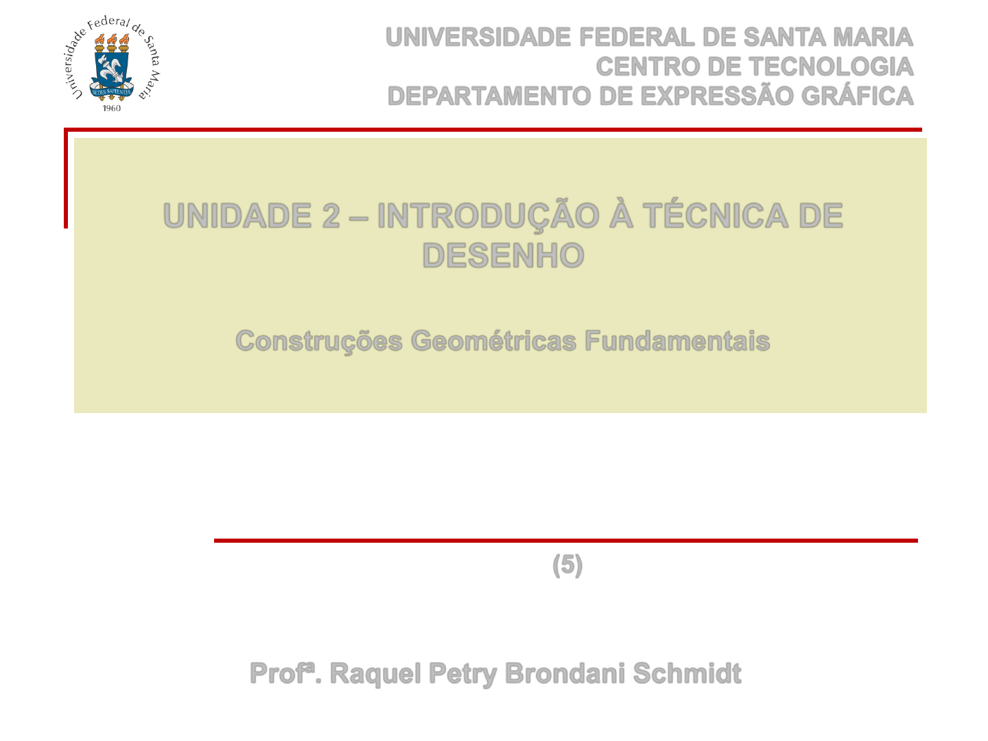 EPG1000 – DESENHO BÁSICO Profª. Raquel Petry Brondani Schmidt UNIVERSIDADE FEDERAL DE SANTA MARIA CENTRO DE TECNOLOGIA DEPARTAMENTO DE EXPRESSÃO GRÁFICA UNIDADE 2 – INTRODUÇÃO À TÉCNICA DE DESENHO Construções Geométricas Fundamentais (5) ÂNGULO É a região do plano formada por duas semi-retas que se interseptam em um ponto comum (vértice) O intrumento utilizado para medições de ângulos é o transferidor A unidade de medida mais utilizada é o grau É designado por três letras: uma no vértice e duas nas extremidades de seus lados: 𝒓𝑽𝒔 ou 𝑨𝑽𝑩 Também pode ser designado por uma letra grega na sua abertura: 𝜶 A medição de ângulos é sempre feita pela sua abertura V: vértice do ângulo Vr e Vs: semi-retas r s V A B CONSTRUÇÕES GEOMÉTRICAS FUNDAMENTAIS CLASSIFICAÇÃO DOS ÂNGULOS QUANTO À GRANDEZA ângulo agudo (<90°) ângulo reto (=90°) ângulo obtuso (>90° e <180°) ângulo raso (=180°) ângulo pleno (=360°) CONSTRUÇÕES GEOMÉTRICAS FUNDAMENTAIS CLASSIFICAÇÃO DOS ÂNGULOS QUANTO À SOMA DE SUAS GRANDEZAS α β α β α β CONSTRUÇÕES GEOMÉTRICAS FUNDAMENTAIS Teorema: “Dois ângulos quaisquer estão entre si como os arcos compreendidos entre seus lados e descritos de seus vértices com o mesmo raio” Transportar ângulos: significa construir um ângulo igual a outro dado V V´ 1. Dado o ângulo α 2. Compasso com raio qualquer R, ponta seca em V, determinar 1 e 2 3. Compasso com mesmo raio R, ponta seca em V’, determinar 1’ em 𝑉′𝐵′ 4. Compasso com raio 12, ponta seca em 1’, determinar 2’ 5. Unir 2’ e V’ para determinar o ângulo transportado α A B OPERAÇÕES GRÁFICAS COM ÂNGULOS Somar ângulos: significa transportar os dois ângulos para o mesmo vértice, um na sequência do outro + V U X = Subtrair ângulos: significa transportar os dois ângulos para o mesmo vértice, um dentro do outro - V U X = A B α C D β A B C D α β OPERAÇÕES GRÁFICAS COM ÂNGULOS Determinar a bissetriz do ângulo: significa determinar a reta que divide um ângulo em duas partes iguais 1° caso – ângulo de vértice (V) acessível V 1. Dado o ângulo 𝛼 2. Compasso com raio qualquer R, ponta seca em V, determinar 1 e 2 3. Compasso com raio qualquer R1, maior que a metade da distância 12, ponta seca em 1, traçar arco (idem no ponto 2), determinar 3 4. Unir 3 e V para determinar a bissetriz do ângulo 𝛼 A B α OPERAÇÕES GRÁFICAS COM ÂNGULOS r s Determinar a bissetriz do ângulo: significa determinar a reta que divide um ângulo em duas partes iguais 2° caso – ângulo de vértice inacessível 1. Dadas as retas r e s 2. Com esquadro, traçar perpendiculares a r e s 3. Marcar distância d qualquer 4. Traçar linhas auxiliares paralelas r’ e s’, distantes d unidades a r e s, respectivamente (equidistantes a r e s) 5. A partir do ponto P, traçar a bissetriz do ângulo formado OPERAÇÕES GRÁFICAS COM ÂNGULOS Dividir um ângulo reto em três partes iguais 1. Dado o ângulo reto 𝛼 2. Compasso com raio qualquer R, ponta seca em V, determinar 1 e 2 3. Compasso com mesmo raio R, ponta seca em 1, determinar 3 4. Compasso com mesmo raio R, ponta seca em 2, determinar 4 5. Unir V e 3, V e 4 para dividir o ângulo reto em três partes iguais a 30° cada V A B OPERAÇÕES GRÁFICAS COM ÂNGULOS Dividir um ângulo agudo (ou obtuso) em três partes iguais s r V 1. Dadas as retas r e s 2. Compasso com raio qualquer R, ponta seca em V, traçar uma circunferência e determinar pontos 1 e 2 3. Traçar a bissetriz do ângulo e determinar o ponto 4 na interseção entre a bissetriz e a circunferência 4. Determinar o ponto 5, sendo 𝑉4 = 45 5. Prolongar r e s e determinar os pontos 6 e 7 na interseção com a circunferência 6. Unir 5 e 6, 5 e 7, determinar os pontos 8 e 9 na circunferência 7. Unir V e 8, V e 9 para dividir o ângulo dado em três partes iguais OPERAÇÕES GRÁFICAS COM ÂNGULOS CIRCUNFERÊNCIA X CÍRCULO 1. Circunferência: linha curva, plana e fechada, em que qualquer um de seus pontos fica à mesma distância de um outro ponto denominado centro (todos os pontos equidistantes do centro). 2. Círculo: porção do plano limitada pela circunferência (superfície plana, área). CONSTRUÇÕES GEOMÉTRICAS FUNDAMENTAIS ELEMENTOS DA CIRCUNFERÊNCIA Raio: distância compreendida entre o centro e a extremidade da circunferência Diâmetro: corda que passa pelo centro da circunferência, também chamado de corda máxima Corda: segmento determinado por dois pontos quaisquer da circunferência Arco: cada uma das partes em que uma circunferência fica dividida por dois de seus pontos Flecha: segmento do raio compreendido entre o arco e a corda perpendicular ao raio Secante: reta que intercepta a circunferência em dois pontos Tangente: linha ou superfície que toca outra linha ou superfície num só ponto CONSTRUÇÕES GEOMÉTRICAS FUNDAMENTAIS POSIÇÕES RELATIVAS DE DUAS CIRCUNFERÊNCIAS Circunferências exteriores Circunferências tangentes exteriores Circunferências secantes Circunferências tangentes interiores Se OO’ > R+r Se OO’ = R+r Se R+r > OO’ > R-r Se OO’ = R-r CONSTRUÇÕES GEOMÉTRICAS FUNDAMENTAIS POSIÇÕES RELATIVAS ENTRE DUAS CIRCUNFERÊNCIAS Circunferências interiores Circunferências concêntricas Se OO’ < R-r Se OO’ = zero CONSTRUÇÕES GEOMÉTRICAS FUNDAMENTAIS Traçar uma circunferência que passe por três pontos dados, não em linha reta 1. Dados os pontos A, B e C não colineares 2. Unir os pontos A, B e C 3. Traçar as mediatrizes dos segmentos 𝐴𝐵 e 𝐵𝐶 4. As mediatrizes se interceptam no ponto O 5. Compasso com raio 𝑂𝐴, 𝑂𝐵 ou 𝑂𝐶 , ponta seca em O, traçar a circunferência A B C CIRCUNFERÊNCIAS Determinar o centro de uma circunferência 1. Dada a circunferência 2. Marcar três pontos quaisquer na circunferência A, B e C 3. Traçar duas cordas 𝐴𝐵 e 𝐵𝐶 4. Traçar as mediatrizes das cordas 5. As mediatrizes se interceptam no pon