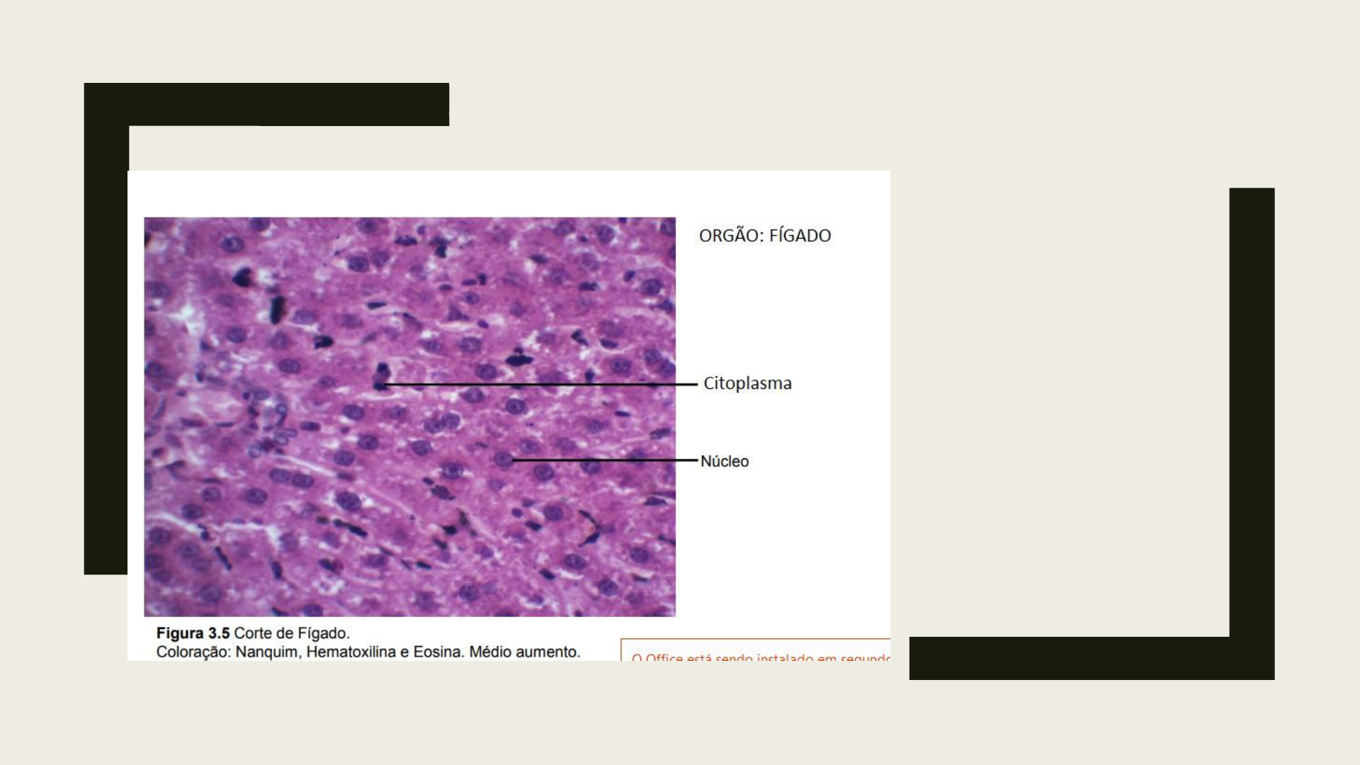 FÍGADO Coloração: hematoxilha e enzimas H.E Corte: Transversal Seta: Núcleo (bolinha roxa) Resto: Citopasma ( Rosa e o branco) ÚTERO APARELHO REPRODUTOR FEMININO APARELHO REPRODUTOR MASCULINO TECIDO EPITELIAL DE REVESTIMENTO ■ Pele fina em aumento de 40x. ■ Em 1, observa-se a camada de queratina ■ 2, o epitélio de revestimento pavimentoso estratificado. ■ A coloração utilizada foi Azul de Toluidina. TECIDO EPITELIAL GLANDULAR TECIDO EPITELIAL GLANDULAR PANCRÊAS TECIDO CONJUNTIVO E ADIPOSO TENDÃO TRAQUEIA TECIDO SANGUÍNEO SOMENTE UMA MANCHA AGLOMERADO DE MANCHA TECIDO CARTILAGINOSO- CARTILAGEM HIAINA. TRAQUEIA EPÍTELIO RESPIRATORIO TECIDO MUSCULAR ESTRIADO ESQUELETICO. TECIDO MUSCULAR LISO