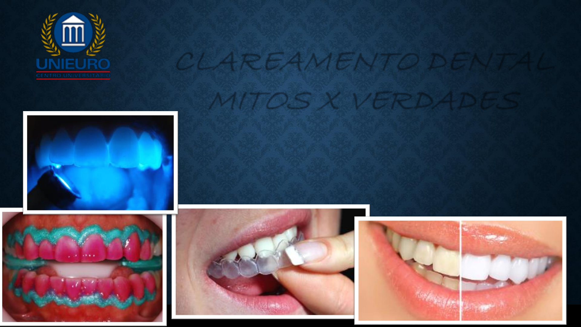 CLAREAMENTO DENTAL MITOS X VERDADES Profª Drª Júlia Olien Sanches Profª Drª Silvia Lustosa Profª Ms. Walkíria Mendes HISTÓRICO ✓ Relatos há 2000 anos; ✓ 1º século d. C., médicos romanos recomendavam a escovação com urina; ✓ 1300 – Barbeiros-Cirurgiões indicavam abrasão do esmalte com limas metálica se aplicação de ácido nítrico; ✓ 1800 – 1900 – 40 a 60 artigos por ano. ✓ Susbtâncias foram testadas para o clareamento dental: cloro, cloreto de alumínio, dióxido de enxofre, hipoclorito de sódio; ✓ 1868 – Dentes Vitais - Ácido oxálico; ✓ 1884 - Peróxido de hidrogênio (antes usado como irrigante/desifectante); ✓ 1989 – 1º relato na literatura sobre clareamento dental caseiro. Costa e Huck, 2006 HISTÓRICO Clareamento Dental = Desafio na Odontologia FATORES DETERMINANTES PARA O SUCESSO 1. Grau de descoloração dental; 2. Etiologia da alteração de cor; 3. Expectativa do paciente; 4. Técnica e agente clareador empregado. CLAREAMENTO DENTAL Dentes são estruturas translúcidas, cuja cor é resultado de manifestações simultâneas de absorção, reflexão e transmissão da luz. Dentina: Baixa translucidez e alta saturação Esmalte: Altamente translúcido, pouco saturado (‘filtro’). O grau de translucidez dos tecidos dentais modifica- se ao longo da vida. A dentina também sofre alterações cromáticas, decorrentes de sua deposição contínua e aumento da mineralização. Baratieri, 2010 CLAREAMENTO DENTAL ✓ MANCHAMENTO MAIS FREQUENTE E MAIS SUPERFICIAL; ✓ ADQUIRIDA DO MEIO APÓS A ERUPÇÃO; ACÚMULO DE PLACA (BACTÉRIAS CROMOGÊNICAS); PRECIPITAÇÃO DE CORANTE NO BIOFILME DENTAL. EXEMPLOS: CAFÉ, CHÁ PRETO, VINHO TINTO, CHIMARRÃO, SHOYU, CIGARRO. MANCHAS EXTRÍNSECASAlteração de Cor CLAREAMENTO DENTAL ✓ Respondem bem a raspagem e profilaxia (jato abrasivo ou ultrassom). ✓ O dentista não resolve o problema sem a colaboração do paciente para modificar seus hábitos. MANCHAS EXTRÍNSECASAlteração de Cor CLAREAMENTO DENTAL Pigmentos de subprodutos do tabaco Pigmentações por bacterias cromogênicas da placa bacteriana Restaurações manchadas Torres et al, 2004 MANCHAS EXTRÍNSECASAlteração de Cor CLAREAMENTO DENTAL ✓OCORREM MUDANÇAS NA COMPOSIÇÃO E ESPESSURA DOS TECIDOS DUROS (DESENVOLVIMENTO DO DENTE); FISIOLÓGICA (IDADE); FLUOROSE DENTÁRIA; HIPOPLASIA DO ESMALTE; INGESTÃO EXCESSIVA DE TETRACICLINA; TRAUMATISMO. MANCHAS INTRÍNSECASAlteração de Cor CLAREAMENTO DENTAL ✓ FISIOLÓGICA (IDADE): espessura da dentina aumenta. ✓ FLUOROSE DENTÁRIA: alteração durante a formação e calcificação do esmalte. ✓ HIPOPLASIA DO ESMALTE: formação incompleta ou defeituosa da matriz de esmalte. ✓ INGESTÃO EXCESSIVA DE TETRACICLINA: moléculas de tetraciclina são incorporadas durante a calcificação. ✓ TRAUMATISMO DENTAL: extravasamento de sangue para o interior dos túbulos dentinários. MANCHAS INTRÍNSECASAlteração de Cor CLAREAMENTO DENTAL Grau I Grau II Torres et al, 2004 FLUOROSE Grau III Grau IV MANCHAS POR TETRACICLINA MANCHAS INTRÍNSECASAlteração de Cor CLAREAMENTO DENTAL Mancha extrínseca Mancha intrínseca ✓ ≠ PROGNÓSTICO X Alteração de Cor CLAREAMENTO DENTAL OS PIGMENTOS QUE FICAM NA DENTINA, GERALMENTE POR SEREM MOLÉCULAS ORGÂNICAS FICAM JUNTO DAS FIBRAS COLÁGENAS E É POR ISSO QUE FICA DIFÍCIL PRA CLAREAR. “Técnica conservativa que emprega agente químico oxidante alterando a pigmentação que causa o escurecimento dental” (Sullieman et al. 2009) CLAREAMENTO DENTAL PIGMENTOS ESCUROS PIGMENTOS CLAROS O2O2 MECANISMPO DE AÇÃO CLAREAMENTO DENTAL Oxigênio + Água Oxidação de compostos orgânicos H2O2 Radicais livres Compostos com anéis de carbono; Compostos de carbono pigmentados – grupos hidroxila sem cor Penetra nos túbulos Dentes Vitais Dentes não vitais (endodonticamente tratado) CLAREAMENTO DENTAL Técnica e agente clareador CLAREAMENTO DENTAL Agentes Clareadores CLAREAMENTO DENTAL –RDC Nº 6 de 6/02/2015 Clareamento Dental – PROCEDIMENTOS INICIAIS EXAME CLÍNICO EXAME RADIOGRÁFICO ANAMNESE DETALHADA Clareamento Dental – PROCEDIMENTOS INICIAIS ✓Etiologia da alteração de cor; ✓Hábitos de higiene e dieta; ✓Hábitos nocivos (ex. fumo); ✓Rotina / colaboração. ANAMNESE DETALHADA Clareamento Dental – PROCEDIMENTOS INICIAIS ✓Vitalidade; ✓Presença de lesões cariosas; ✓Presença de trincas e fissuras; ✓Recessões gengivais e dentina exposta; ✓Alterações de desenvolvimento; ✓Presença de próteses, facetas ou coroas. EXAME CLÍNIC0 Clareamento Dental – PROCEDIMENTOS INICIAIS ✓Exame complementar em muitos casos de dúvidas durante o exame clínico (cárie interproximais, dentes endodonticamente tratados). EXAME RADIOGRÁFICO Anamnese Detalhada Adaptado de Baratieri et al, 2004, por Rehder Neto, 2009 Exame Clínico e Raio X Diagnóstico Etiologia da Alteração da Cor Tratamento e Prognóstico Clareamento Dental – PROCEDIMENTOS INICIAIS MistaConsultório Caseira Supervisionada + CLAREAMENTO DENTAL – DENTES VITAIS Peróxido de hidrogênio Peróxido de carbamida O2 H2O Clareamento Dental - AGENTES Amônia CO2 Ureia *PH=PC/3. Ou seja, se eu tenho um PC 16%, ele vai corresponder mais ou menos a um PH 5,5% Os mais vendidos comercialmente são o PC 16% e o PH 35%. Oxigênio + Água Oxidação de compostos orgânicos H2O2 Radicais livres Compostos com anéis de carbono; Compostos de carbono pigmentados e com ligação dupla – grupos hidroxila sem cor Ponto de Saturação Mohammadi et al., 2011 Clareamento Dental – MECANISMO DE AÇÃO Quantidade ótima do clareamento na qual o clareamento obtido é máximo. O clareamento diminui muito e o agente clareador começa a atuar em outros compostos que apresentam cadeias de carbono, como as proteínas da matriz do esmalte. Neste ponto, a perda de material da matriz do esmalte torna-se muito rápida e é convertido em dióxido de carbono e água, o que leva a um aumento da porosidade 