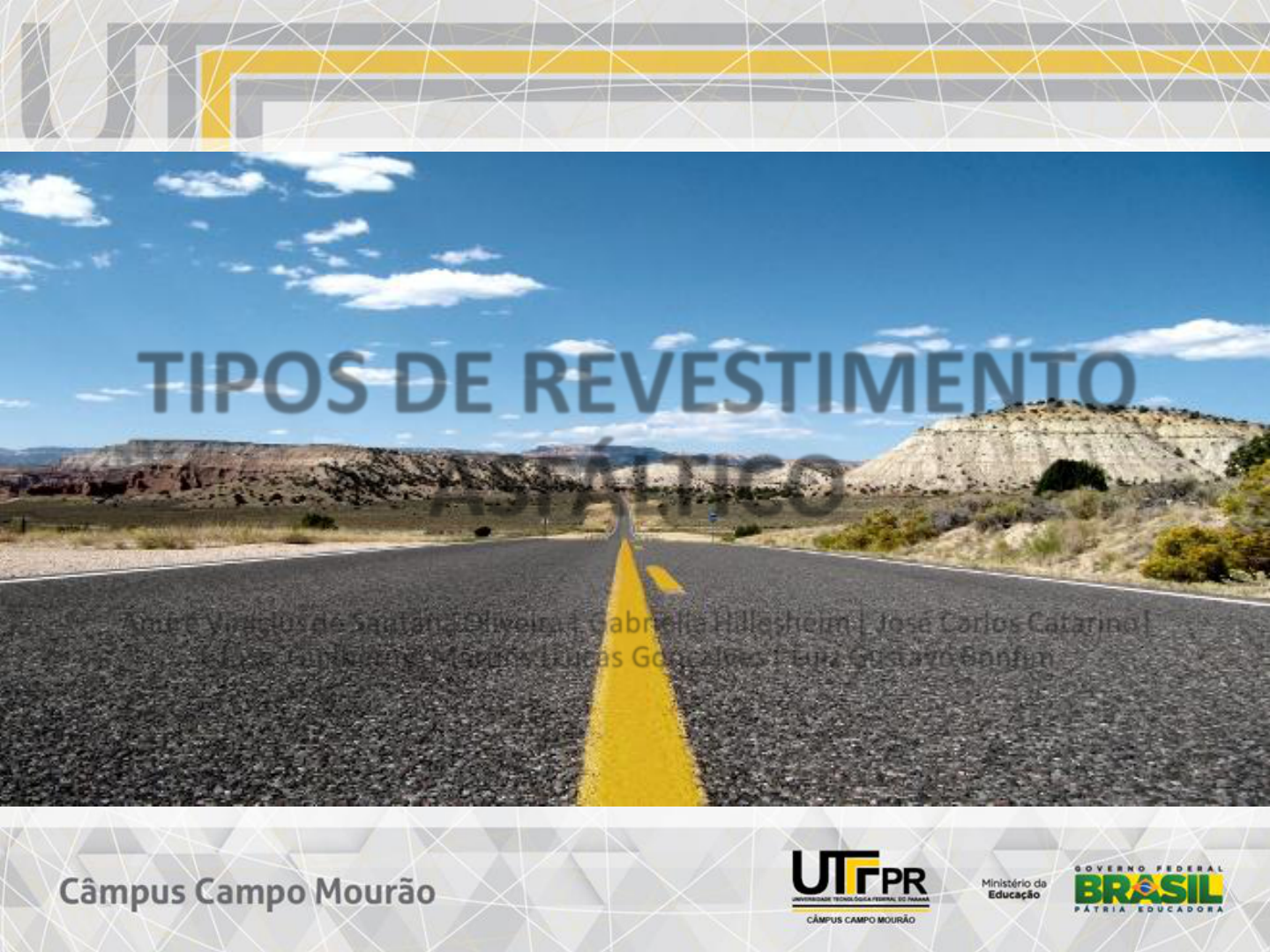 TIPOS DE REVESTIMENTO ASFÁLTICO André Vinícius de Santana Oliveira | Gabriella Hillesheim | José Carlos Catarino| José Guilherme Martins |Lucas Gonçalves | Luiz Gustavo Bonfim Introdução Os pavimentos são estruturas de múltiplas camadas, sendo o revestimento a camada que se destina a receber a carga dos veículos e mais diretamente a ação climática. Portanto, essa camada deve ser tanto quanto possível impermeável e resistente aos esforços de contato pneu-pavimento em movimento, que são variados conforme a carga e a velocidade dos veículos. Nos casos mais comuns, até um determinado volume de tráfego, um revestimento asfáltico de um pavimento novo pode ser composto por um único tipo de mistura asfáltica. Neste caso, a mistura pode se distinguir: Quanto ao local de fabricação, como obtida em usina específica (misturas usinadas) ou preparada na própria pista (tratamentos superficiais); Quanto à temperatura de misturação: misturas a quente (uso de CAP) ou a frio (uso de EAP); As misturas usinadas ainda podem ser separadas, quanto à composição granulométrica, em densas, abertas e descontínuas. Em casos de recomposição da capacidade estrutural ou funcional, é possível o uso de outros tipos de misturas asfálticas que se processam em usinas móveis especiais e que promovem a mistura agregados-ligante imediatamente antes da colocação no pavimento, podendo ser separadas em: • misturas novas relativamente fluidas (lama asfáltica e microrrevestimento); e • misturas recicladas com uso de fresadoras – recicladoras. Tipos de revestimentos asfálticos Os revestimentos asfálticos podem ser: Misturas usinadas: Densas: concreto asfáltico, areia-asfalto, pré-misturado a frio; Descontínuas: SMA, porosa, “gap-graded”. Fabricadas na pista: Tratamentos superficiais por penetração. Microrrevestimentos; Lama asfáltica; Misturas recicladas. MISTURAS USINADAS É a mistura do agregado com o ligante asfáltico, realizada em uma usina fixa e, posteriormente, transportada até o local com o auxílio de caminhões. Chegando no local, a mistura é despejada através de uma máquina vibrocadora e, então, é compactada até atingir o grau de compactação especificado em projeto. Misturas usinadas a quente Essas misturas distinguem-se em vários tipos de acordo com a granulometria e as exigências de características mecânicas. Um dos tipos mais empregados no Brasil é o concreto betuminoso usinado a quente (CBUQ). O que é o CBUQ? O concreto betuminoso é a mistura de agregados de vários tamanhos e cimentos asfálticos, ambos são aquecidos em temperaturas determinadas previamente. Os tipos mais usuais nas misturas a quente são: Graduação densa: os agregados formam um esqueleto mineral com poucos vazios, tendo em vista que os agregados menores preenchem os vazios dos maiores. Graduação aberta: possui agregados quase exclusivamente do mesmo tamanho, de forma a proporcionar um esqueleto mineral com muitos vazios. Graduação descontínua: forma um esqueleto mineral mais resistente à deformação permanente, por possuir uma quantidade dominante de grãos maiores. Aberta Descontínua Densa Concreto asfáltico na faixa B do DNIT – graduação densa SMA na faixa alemã 0/11S – graduação contínua Misturas usinadas densas CONCRETO ASFÁLTICO Mistura mais resistente entre todas, em todos os aspectos. Convencional: CAP e agregados bem graúdos aquecidos. Especiais: Com asfalto modificado com polímero ou com borracha moída de pneu; Com asfalto duro: misturas de módulo elevado. Composição diferenciada do agregado: SMA= “stone matrix agregate”; Camada porosa de atrito (CPA): aberto Misturas usinadas densas AREIA – ASFALTO Em regiões onde não existem agregados pétreos graúdos, utiliza-se como revestimento uma argamassa de areia e ligante que terá menor resistência às deformações permanentes e maior consumo de ligante. Pode ser: a quente (com CAP), que é a melhor, ou a frio (com EAP). Misturas usinadas densas PRÉ-MISTURADAS A FRIO Agregados graúdos, miúdos e de enchimento a temperatura ambiente, misturados com EAP (emulsão asfáltica). PODEM SER Densos – graduação contínua – volume de vazios baixo; Abertos – graduação aberta – volume de vazios alto; Usos: revestimento de ruas e estradas de baixo volume de tráfego, como camada intermediária (com CA/ CBUQ superposto) e em operações de manutenção. Misturas usinadas descontínuas SMA – uso de faixa granulométrica descontínua, porém de mistura densa, e CAP modificado por polímero. CPA – uso de faixa granulométrica aberta e CAP modificado por polímero; alto volume de vazios para proporcionar alta permeabilidade. Descontínua – densa “gap-graded” – faixa granulométrica especial que resulta em textura aberta, que tem sido utilizada com asfalto – borracha. SMA (Stone Matrix Asphalt) Misturas usinadas descontínuas Mistura asfáltica SMA Definição e princípio de funcionamento: Mistura de graduação descontínua, densa, a quente; Grande proporção de agregado graúdo (≥ 70%); Esqueleto mineral responsável pelo contato grão/grão (resistência e dissipação do carregamento); Formação do mástique asfáltico (durabilidade): ligante asfáltico + fíler + finos minerais (fração areia) + fibras. Aplicações da mistura asfáltica SMA Vias com alta freqüência de caminhões; Interseções; Em áreas de carregamento e descarregamento de cargas; Em rampas, pontes, paradas de ônibus, faixas de ônibus; Pistas de aeroporto; Estacionamentos; Portos. Desempenho do SMA Boa estabilidade a elevadas temperaturas; Boa flexibilidade a baixas temperaturas; Elevada resistência ao desgaste; Elevada adesividade entre os agregados minerais e o ligante; Boa resistência a derrapagem devido à macrotextura da superfície de rolamento; Redução do “spray” ou borrifo de água; Redução do nível de ruído. CPA (Camada Porosa de Atrito) Misturas usinadas descontín