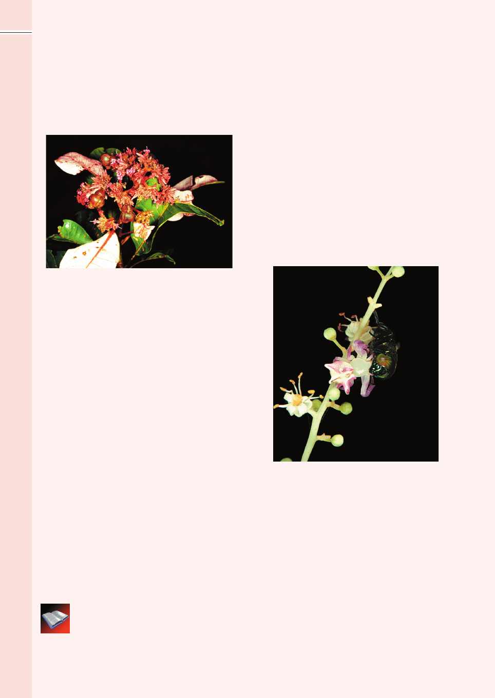 544 Mitchell, J.D. 1990. The Poisonous Anacardiaceae Genera of the World. Advances in Economic Botany, 8:103-129. Mitchell, J.D. & Mori, S.A. 1987. The Cashew and Its Relatives (Anacardium: Anacardiaceae). Memoirs of the New York Botanical Garden, 42:1-76. Mitchell, J.D. & Daly, D.C. 1993. A Revision of Thyrsodium. Brittonia, 45:115-129. A família é representada por 76 gêneros e 600 espécies na flora mundial. Na Reserva são encontrados 5 gêneros e 8 espécies. Introduzidos no local encontram-se a manga (Mangifera indica), o caju (Anacardium occidentale) e o taperebá ou cajá (Spondias mombin ssp. mombin). Anacardiaceae leite, enquanto as espécies de Burseraceae sem pulvínulo possuem resina quase incolor. Quanto às espécies com folhas simples, a dificuldade para identificação da família aumenta, pois a resina não é sempre aparente. Cuidado deve ser tomado com a resina exsudada da casca, que pode ser tóxica. Essa mesma resina pode ser encontrada em quase todas as outras partes da planta. Normalmente o contato com ela desencadeia uma reação alérgica em pessoas sensíveis, e entre os gêneros ocorrentes na Reserva cuja resina causa esse efeito estão Anacardium, Astronium, Campnosperma e os introduzidos Mangifera e Spondias. Na polinização de membros da família estão envolvidos abelhas, mariposas, borboletas Anacardium spruceanum A N A C A R D IA C E A E É caracterizada por ser sempre lenhosa e em alguns casos chegando a atingir porte muito elevado (até 30 m), sendo freqüente a presença de resina ou látex na casca, às vezes não muito aparentes. As folhas são alternas, geralmente compostas e imparipinadas, ou simples. As flores são normalmente pouco vistosas, sendo hermafroditas ou unissexuadas. Elas têm 3 a 7 sépalas, livres ou unidas; 3 a 7 pétalas livres (ou ausentes), um disco geralmente bem desenvolvido, com 3 a 10 estames inseridos no disco. O ovário é súpero com 1 a 5 estiletes e 1 a 5 estigmas, lobados ou inteiros. O fruto é uma drupa, castanha ou sâmara, contendo uma semente. As espécies ocorrentes na Reserva com folhas compostas podem ser confundidas com Burseraceae pela presença de resina em ambas, mas nunca possuem o engrossamento (pulvínulo) típico das espécies de Protium (Burseraceae), o gênero mais comumente encontrado no local. Thyrsodium se destaca pela presença de látex branco e leitoso, chamado popularmente por isso de breu-de- e besouros, e seus frutos podem ser dispersados por animais ou através do vento. Entre os usos da família podemos citar o cultivo para obtenção de frutos comestíveis, como os já citados, ou de sementes para alimentação no caso do caju, na indústria madeireira e também para extração de óleos com aplicações medicinais e industriais. Spondias mombin ssp. mombin Tapirira obtusa. Árvore do dossel. Base do tronco com pequenas sapopemas; resina branca. Lâmina glabra, às vezes pilosa na face superior; veia central proeminente, com pêlos curtos e eretos na face superior; 8-12 pares de veias laterais. Ocasional. Platô e vertente. Norte da América do Sul. Tapirira guianensis. Árvore do dossel. Base do tronco com sapopemas; resina branca a creme. Lâmina glabra na face superior, geralmente com pontuações avermelhadas na face inferior; veia central proeminente, às vezes recoberta com curtos pêlos; 11-15 pares de veias laterais. Freqüente. Todos os ambientes. América Central e América do Sul tropical. Tapirira retusa. Árvore emergente. Base do tronco com sapopemas; resina incolor. Lâmina glabra na face superior; veia central proeminente a plana; 9-11 pares de veias laterais. Rara. Baixio. Equador, Peru e Amazônia Central. Astronium le-cointei. Árvore do dossel. Base do tronco com raiz superficial. Ritidoma escamoso, margem das escamas rígidas e cortantes. Lâmina glabra; veia central proeminente na face superior; 11-14 pares de veias laterais. Rara. Vertente. Amazônia Central. Thyrsodium spruceanum. (Breu- de-leite). Árvore. Base reta ou com pequenas sapopemas; resina branca. Lâmina subglabra a pilosa na face superior, mais intensamente sobre as veias central e laterais; veia central impressa; 11-22 pares de veias laterais. Freqüente. Todos os ambientes, exceto campinarana. Amazônia e Guianas e Mata Atlântica. Folhas compostas.11 152 135 301 129 160 A N A C A R D IA C E A E 545 Folhas simples. Anacardium spruceanum. (Cajú-assú, cajueiro-do-mato). Árvore de dossel. Base do tronco reta; resina incolor. Lâmina glabra na face superior, às vezes com pequenas pontuações vermelhas na inferior; veia central impressa a levemente proeminente na face superior; 13-16 pares de veias laterais, com domáceas nas axilas. Ocasional. Platô e vertente. Norte da América do Sul. Anacardium parvifolium. (Cajuí). Árvore de dossel. Base do tronco reta. Lâmina glabra na face superior, com pontuações avermelhadas na inferior; veia central levemente proeminente a quase plana na base na face superior; 9-16 pares de veias laterais, com domáceas em suas axilas. Ocasional. Vertente. Amazônia brasileira. • Campnosperma gummiferum. Árvore de dossel. Base do tronco com pequenas sapopemas. Lâmina glabra na face superior, com escamas peltadas vermelhas na face inferior; veia central impressa na face superior; 16-20 veias laterais. Rara. Baixio. Amazônia. 236 71 317 546 • Campnosperma gummiferum é confundida muitas vezes com Euphorbiaceae, devido ao aspecto geral da planta e a presença de resina. Observe atentamente a presença de escamas peltadas vermelhas na face inferior da lâmina foliar e a ausência de glândulas. Thyrsodium spruceanum é uma espécie muitas vezes confundida com Burseraceae devido a abundante resina branca, única nas espécies da família ocorrentes na Rerserva, o que lhe dá o nome popular de "Breu- de-leite". Tapirira guianensis tem sapopemas bem desenvolvidas na base do tronco. Campnosperma gummiferum 22 DICA DE CAMPO Tapirira guianensis Thyrsodium spruceanum A 
