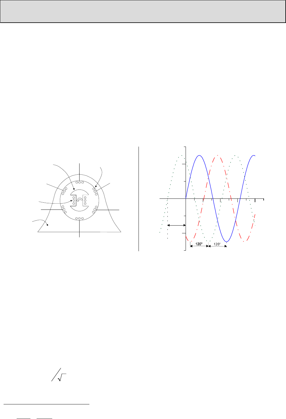 VI CIRCUITOS TRIFÁSICOS A maior parte da geração, transmissão e utilização em alta potência da energia elétrica envolve sistemas polifásicos, ou seja, sistemas nos quais são disponíveis diversas fontes de mesma amplitude com uma diferença de fase entre elas. Por possuir vantagens econômicas e operacionais, o sistema trifásico é o mais difundido. Uma Fonte Trifásica é constituída de três fontes de tensões iguais defasadas 120° uma da outra. As figuras abaixo apresentam o esquema de um gerador trifásico com as tensões produzidas VI.1 Produção da Tensão Trifásica: Alternador Trifásico: N S C C’ A A’ B B’ Estator Enrolamento de Campo Rotor Enrolamento de Induzido 2 4 6 8 wt 120° VAA VBB VCC Supondo o rotor girando no sentido anti-horário com 3600 rpm (f = 60 Hz)1 seu campo magnético corta os rolamentos do induzido, induzindo neles as tensões senoidais ilustrados na figura. Estas tensões atingem seus valores máximos e mínimos com uma distância de 1/3 de um período, ou seja, com uma defasagem de 120°, e isto devido ao deslocamento espacial de 120° dos enrolamentos do induzido. Como resultado, visto que as bobinas são iguais (mesma seção e mesmo número de espiras), o alternador produz 3 tensões de mesmo valor eficaz com uma defasagem de 120 ° entre elas. Normalmente estas tensões são geradas em 13,8 kV. Tem-se portanto: kV2408,13V)240377sen(19500 kV1208,13V)120377sen(19500 kV08,13V)377sen(19500 '' '' '' °∠=⇒°+= °∠=⇒°+= °∠=⇒= CCCC BBBB AAAA Ete Ete Ete & & & pois kV8,13 2 19500 = que é o valor eficaz do módulo da tensão. 1 rpm3600 2 60.120.120 === p fn , onde n = velocidade, f = freqüência e p = número de pólos da máquina. Eletrotécnica Geral – VI. Circuitos Trifásicos © DLSR/JCFC - UNESP/FEG/DEE 2/23 O diagrama fasorial destas tensões é apresentado a seguir. 'BBE& 'CCE& 'AAE&120° 120° 'BBE& 'CCE& 'AAE& 0''' =++ CCBBAA EEE &&& ou Razões que levam a preferência pelo sistema trifásico: 1. permite transmissão de potência de forma mais econômica. 2. Em sistemas trifásicos o módulo do campo girante total é constante, o que não ocorre em outros sistemas polifásicos (todos os sistemas polifásicos com 3×n fases apresentam esta característica, mas com n>1 estes sistemas não são interessantes economicamente). 3. a potência p(t) é constante (no monofásico é pulsante): ∅=++ cosIE3ieieie = p(t) CCCBBBAAA ''' VI.2 Sistemas em Triângulo e Estrela A B C A' B' C' A figura ao lado apresenta de maneira esquemática os três enrolamentos de um gerador trifásico. Os terminais destes enrolamentos são ligados para diminuir o número de linhas necessárias para as conexões em relação às cargas. Desta maneira pode-se ter dois tipos de ligações que são apresentadas nas duas próximas seções. Nomenclatura: • Tensão de linha: é a tensão entre duas linhas. • Tensão de fase: é a tensão no enrolamento ou na impedância de cada ramo. • Corrente de linha: é a corrente na linha que sai do gerador ou a corrente solicitada pela carga. • Corrente de fase: é a corrente no enrolamento do gerador, ou na impedância de cada ramo. VI.2.1 Ligação em ∆∆∆∆ A figura abaixo apresenta o esquema de ligações que deve ser realizado com os três enrolamentos do gerador para que se obtenha uma conexão em ∆. Eletrotécnica Geral – VI. Circuitos Trifásicos © DLSR/JCFC - UNESP/FEG/DEE 3/23 C' C A B C A' B' C' A B' B A' ≡ Quando um gerador tem seus enrolamentos ligados em ∆, as tensões de linha ( CBA EEE &&& ,, ) são iguais as tensões de fase ( CABCAB EEE &&& ,, ) e as correntes de linha ( CBA III &&& ,, ) são diferentes das correntes de fase ( CABCAB III &&& ,, ). A figura abaixo apresenta a nomenclatura utilizada para as tensões e correntes em um circuito em ∆. C B ABI& BCI& CI& BCE& CAI& A A A I& BI& B ABE& CAE& C Em circuitos em ∆ as correntes de linha são iguais as correntes de fase multiplicadas por raiz de três. VI.2.2 Ligação em Y A figura abaixo apresenta o esquema de ligações que deve ser realizado com os três enrolamentos do gerador para que se obtenha uma conexão em Y. N A B C A' B' C' A N C B ≡ Quando um gerador tem seus enrolamentos ligados em Y, as tensões de linha ( CNBNAN EEE &&& ,, ) são diferentes das tensões de fase ( CABCAB EEE &&& ,, ) e as correntes de linha Eletrotécnica Geral – VI. Circuitos Trifásicos © DLSR/JCFC - UNESP/FEG/DEE 4/23 ( CBA III &&& ,, ) são iguais as correntes de fase ( CABCAB III &&& ,, ). A figura abaixo apresenta a nomenclatura utilizada para as tensões e correntes em um circuito em Y. N CI& N BI& AI& NI& NCBA IIII &&&& =++ CNE& BNE& ANE& B A CAE& ABE& BCE& C A figura abaixo mostra as tensões de fase e de linha em um diagrama fasorial adotando ANE& como referência. ANE& BNE& CNE& BCE& CAE& ABE& C B A N Aplicando a lei de Kirchoff para as tensões tem-se: 0=+− BNANAB EEE &&& ou NBANBNANAB EEEEE &&&&& +=−= O diagrama abaixo apresenta o diagrama anterior de outra forma. χ χ ABE& ABE& ANE& NBE& 30°60° BNE& CNE& C B A N Pode-se obter as seguintes relações trigonométricas: ANAB ANAN ExE EEx .3.2 . 2 330cos. == =°= E então: °∠= 30.3 ANAB EE& De maneira análoga tem-se: °∠= 270.3 BNBC EE& °∠= 150.3 CNCA EE& Ou seja, em circuitos em Y as tensões de linha são iguais as tensões de fase multiplicadas por raiz de três. Eletrotécnica Geral – VI. Circuitos Trifásicos © DLSR/JCFC - UNESP/FEG/DEE 5/23 VI.3 Seqüências de Fase: A ordem na qual as tensões ou correntes atingem seus valores máximos é denominada seqüência de fase. Assim, a seqüência ABC indica que a tensão VAA’ atinge seu valor máximo antes da tensão VBB’ e esta antes da tensão VCC’. O mesmo vale para qualquer outra seqüência. A figura abaixo já apresentada no início do capítulo apresenta a seqüência ABC. 2 4 6 8 wt 120° VAA VBB VCC Nos geradores que têm as bobinas conectadas em Y, considerando-se que °∠= 903l& EE 