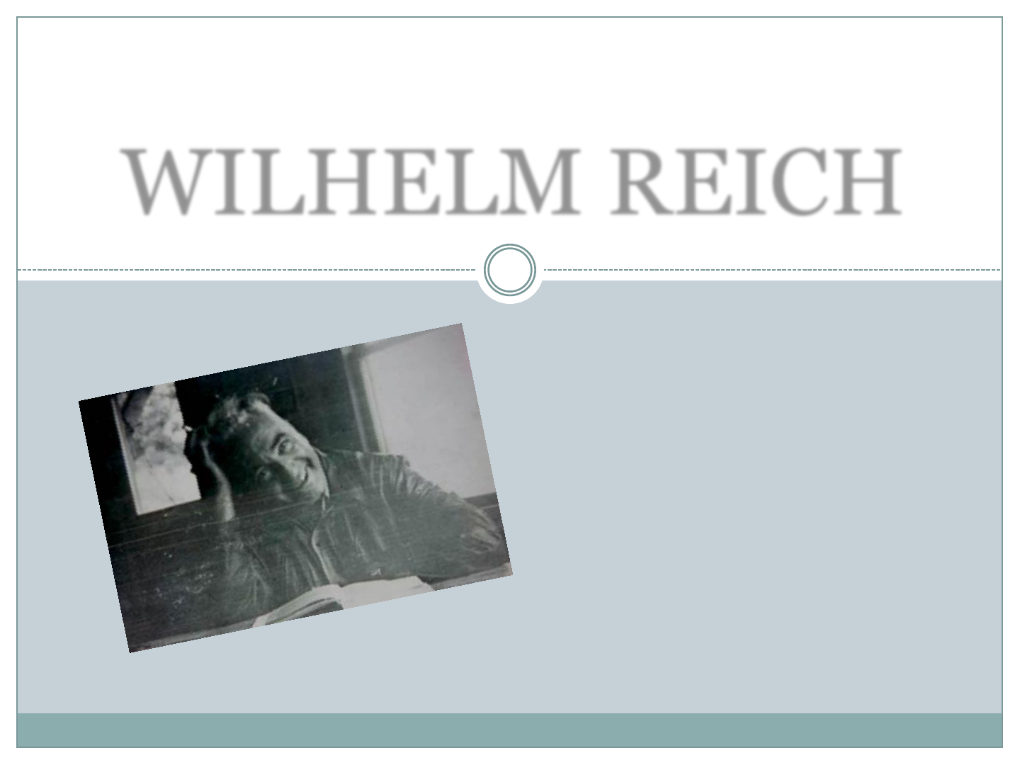 WILHELM REICH “Ninguém é culpado por estar doente, mas tem culpa por não buscar a cura.” HISTÓRIA PESSOAL Nasceu em 24 de março de 1897 na Galícia ; Não tinha um relacionamento saudável com sua família (morte da mãe, pai autoritário); Após a destruição das terras herdadas do seu pai - resultado da guerra, Reich ingressou na escola médica, na Universidade de Viena em 1918. (p. 88); Buscava conciliar as teorias de Marx e Freud; Em 1922, Freud fundou um clínica psicanalítica em Viena, onde Reich foi o primeiro assistente clínico; Em 1927 , Reich procurou fazer análise com Freud, que se recusou a fazer uma exceção à sua política de não tratar membro do círculo psicanalíticos profundos. Desenvolvendo grande conflito entre Reich e Freud; Em 1929, ajudou a fundar as primeiras clínicas de higiene sexual para trabalhadores. Depois de três anos de relativa paz e calma na Noruega, Reich tornou-se alvo de campanha difamatória de um jornal que atacava sua ênfase a base sexual da neurose e seus experimentos de laboratório com bioenergia. Fundou o instituto Organ para manter sua pesquisa orgônica ou energia vital; (p. 90) Reich descobriu que doenças que resultavam de distúrbios do aparelho automático poderiam ser tratadas pelo fluxo normal de energia orgânica do indivíduo; Em 1954, Reich teve ordens judiciais que não permitiam a distribuição de acumuladores de orgon; Morreu em 1957 na prisão federal ATECENDENTES INTELECTUAIS Psicanálise Fundamentou grande parte do trabalho de Reich; Primordialmente baseadas no conceito de caráter e couraça caracterológica, se desenvolveu do conceito psicanalítico da necessidade do ego de defender-se contra foças instintivas; Marxismo Reich tentou conciliar a teoria de Freud e Marx; Afirmava que a psicanálise é uma ciência revolucionária, uma vez que completa a crítica marxista da economia burguesa com uma crítica de sua moralidade, baseada na repressão sexual ; Sexualidade Humana 1. Livre distribuição de anticoncepcionais para qualquer pessoa e educação intensiva para o controle da natalidade. 2. Completa abolição das proibições com relação ao aborto. 3. Abolição da distinção legal entre casados e não-casados; liberdade de divórcio. 4. Eliminação de doenças venéreas e prevenção de problemas sexuais através da educação sexual. 5. Treinamento de médicos, professores etc., em todas as questões relevantes da higiene sexual. 6. Tratamento, ao invés de punição, para agressões sexuais. PRINCIPAIS CONCEITOS Caráter De acordo com Reich, o caráter é composto das atitudes habituais de uma pessoa e de seu padrão consistente de respostas para várias situações. Inclui atitudes e valores conscientes, estilo de comportamento (timidez, agressividade e assim por diante) e atitudes físicas (postura, hábitos de manutenção e movimentação do corpo). A Couraça Caracterológica O conceito de couraça caracterológica de Reich inclui a soma total de todas as forças defensivas repressoras organizadas de forma mais ou menos coerente dentro do próprio ego; Assim pensando, Reich afirma que os traços de caráter neuróticos não são a mesma coisa que sintomas neuróticos; A Perda da Couraça Muscular Reich descobriu que cada atitude de caráter tem uma atitude física correspondente e que o caráter do indivíduo é expresso corporalmente sob a forma de rigidez muscular ou couraça muscular; Ele concluiu que a couraça física e a psicológica eram essencialmente a mesma coisa. Caráter Genital Reich adotou-o para exprimir especificamente a pessoa que adquiriu potência orgástica - capacidade de abandonar-se, livre de quaisquer inibições, ao fluxo de energia biológica... (p. 94) Os caráteres genitais não estão aprisionados em suas couraças e defesas psicológica; Renúncia da couraça: Controles Neuróticos Auto - regulação Bioenergia Tensão mecânica Carga bioenergética Descarga bioenergética Relaxamento mecânico “A fórmula do orgasmo” (p. 95) Depois do contato físico, a energia se acumula em ambos os corpos e é por fim descarregada no orgasmo, o qual se constitui essencialmente num fenômeno de descarga da bioenergia. O ato sexual teria a seguinte sequência: 1. Órgãos sexuais enchem-se de fluido - tensão mecânica 2. Resulta uma intensa excitação - carga bioenergética. 3. Excitação sexual descarregada em contrações musculares - descarga bioenergética. 4. Segue-se um relaxamento físico - relaxamento mecânico Energia Orgânica Segundo Reich, a Energia Orgônica teria as seguintes propriedades principais: 1. A Energia Orgônica é livre de massa; não tem inércia nem peso. 2. Está presente em qualquer parte, embora em concentrações diferentes, até mesmo num vácuo. 3. É o meio para a atividade eletromagnética e gravitacional, o substrato da maioria dos fenômenos naturais básicos. 4. A Energia Orgônica está em constante movimento e pode ser observada sob condições apropriadas. 5. Altas concentrações de Energia Orgônica atraem a Energia Orgônica de ambientes menos concentrados (o que contradiz a lei da entropia). 6. A Energia Orgônica forma unidades que se tornam o centro da atividade criativa. Estas incluem células, plantas e animais, e também nuvens, planetas, estrelas e galáxias. (p. 96) Dinâmica Reich definiu crescimento como o processo de dissolução da nossa couraça psicológica e física, tornando-nos, gradualmente, seres humanos mais livres, abertos e capazes de gozar um orgasmo pleno e satisfatório. De acordo com Reich, a Energia Orgônica flui naturalmente por todo o corpo, de cima a baixo, paralela à espinha. Os anéis da couraça formam-se em ângulo reto com este fluxo e operam para rompê-lo A couraça serve para restringir tanto o livre fluxo de energia como a livre expressão de emoções do indivíduo Após a perda de um anel da couraça, o orgon do corpo não começa de imediato a correr livremente. Logo que os primeir